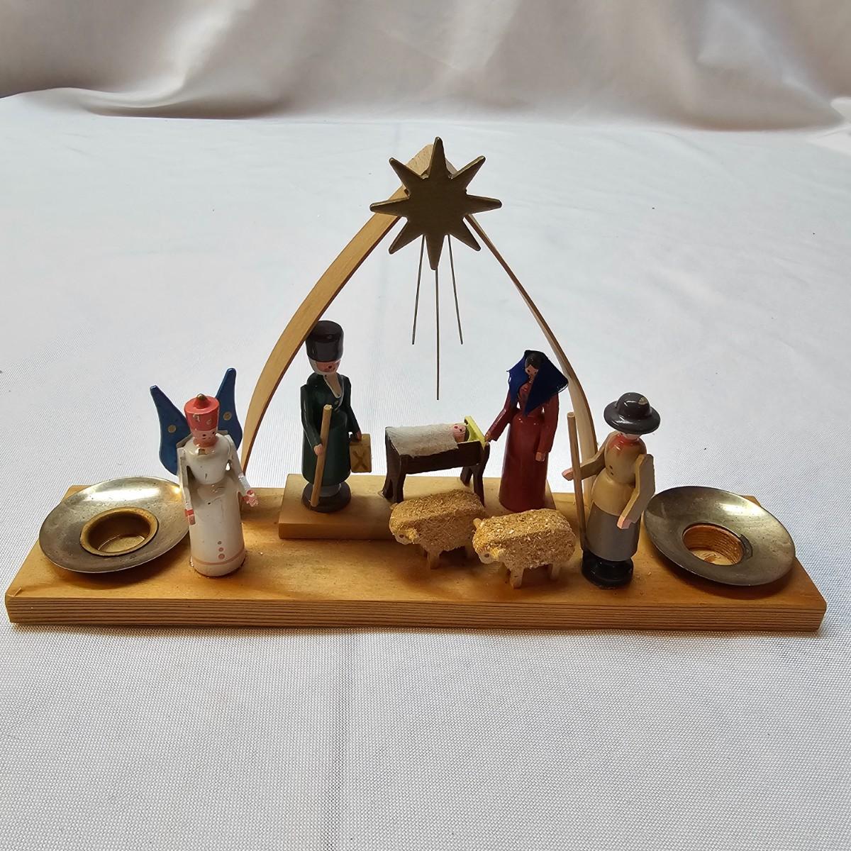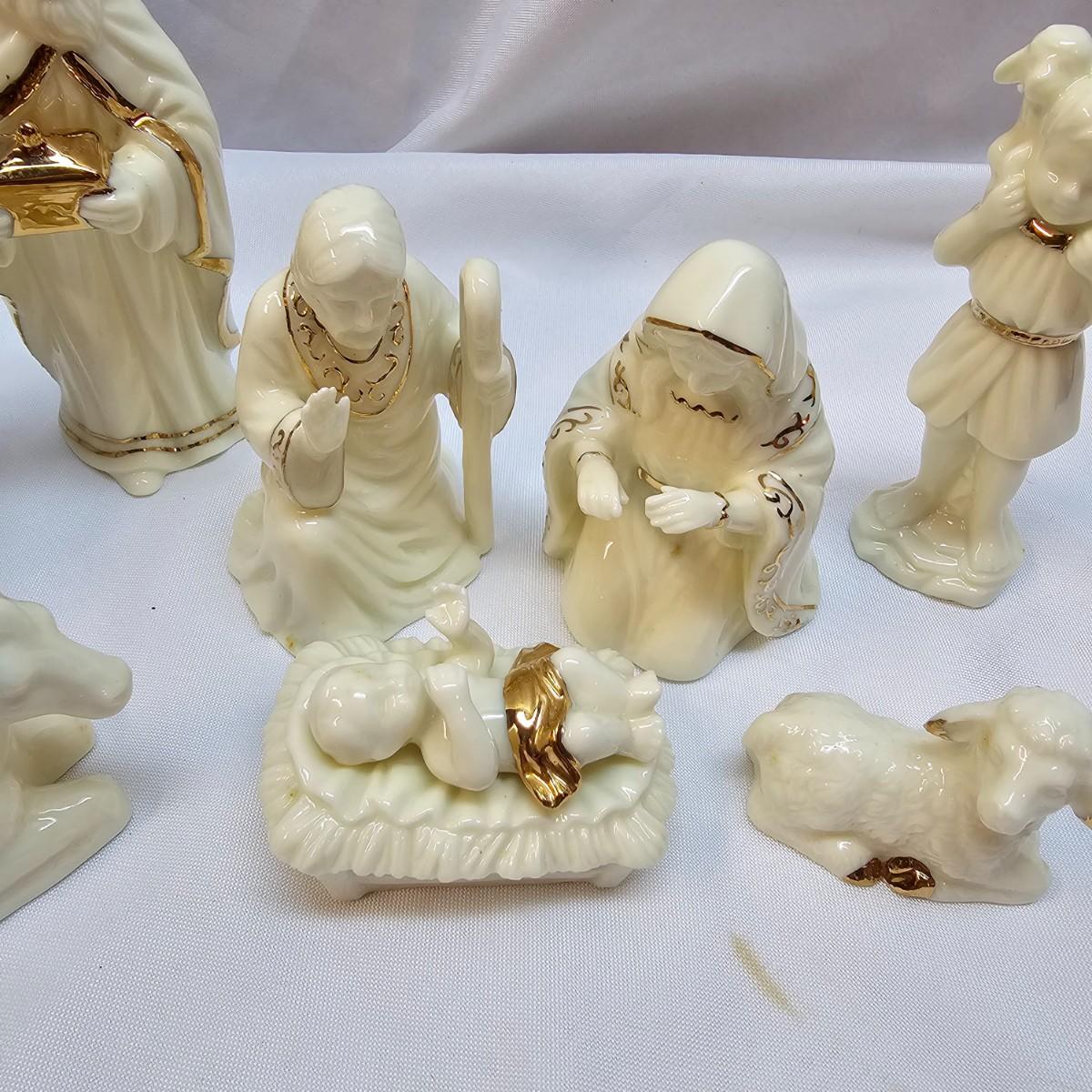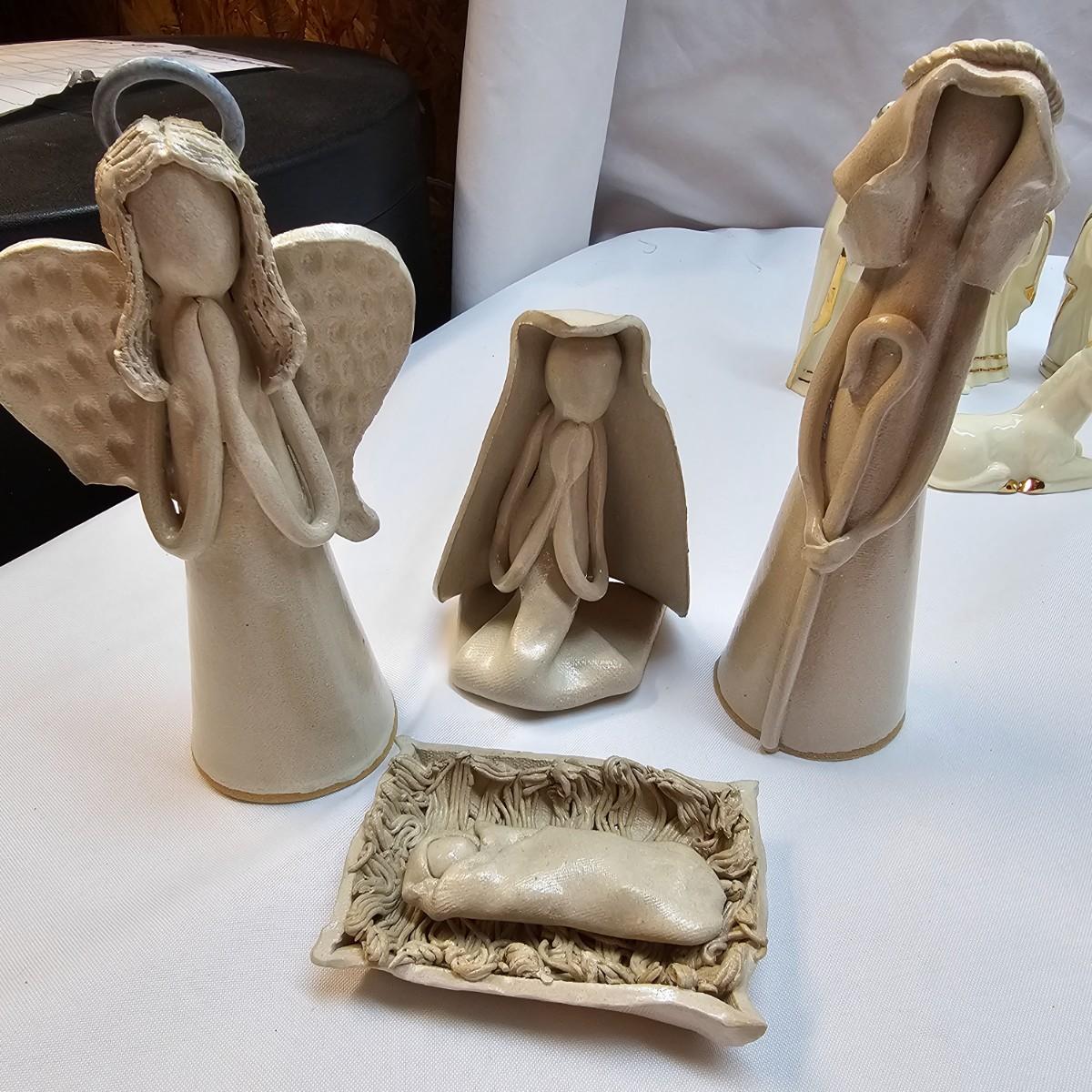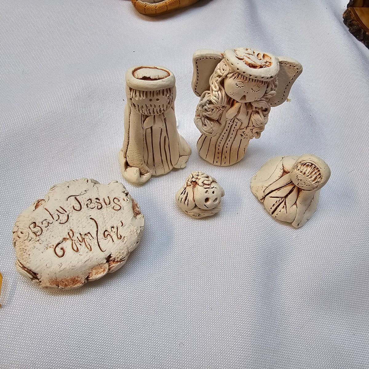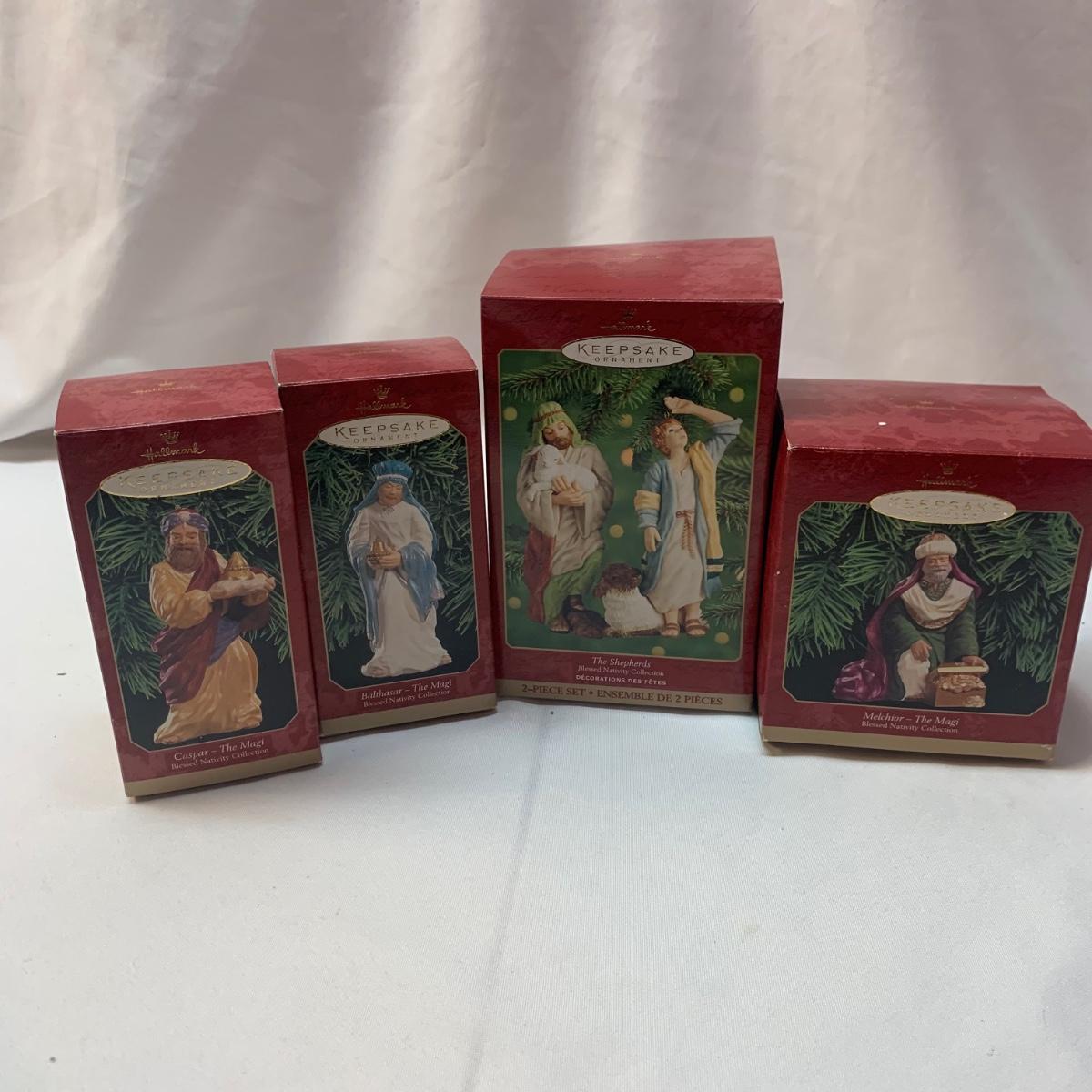Twenty-seven examples of the Nativity. China, wood, porcelain, salt dough, all different sizes and shapes. Items by Hallmark, Willow Tree and others. Many items handmade. Sizes range from just over an inch tall to 9.5" H for the Willow Tree Demdaco Joseph. See photos for details. Shipping available.