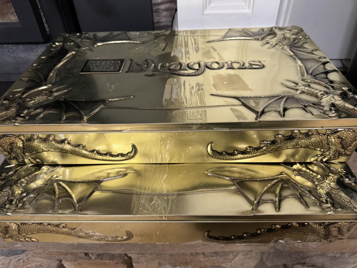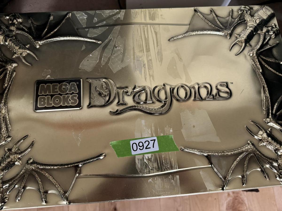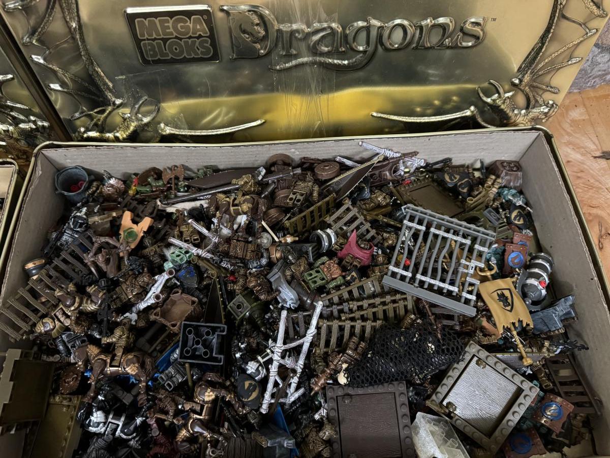 MEGA Blocks Dragons - Two Large Tin Sets (Each 20”Lx12”Wx3”D)
