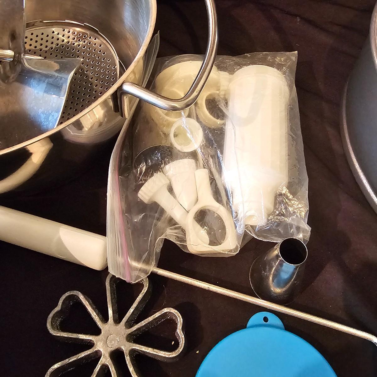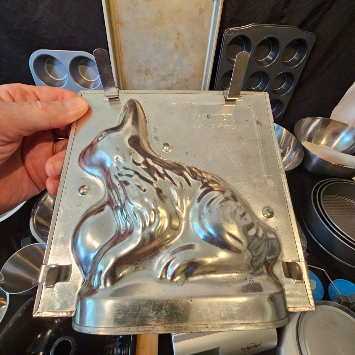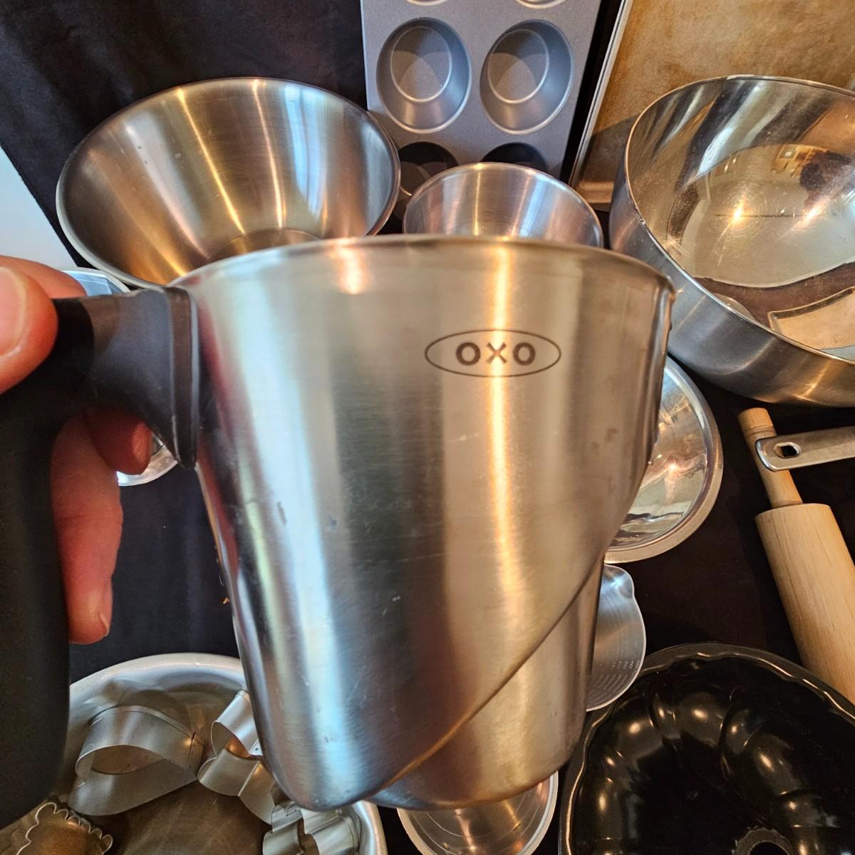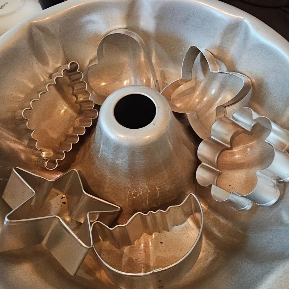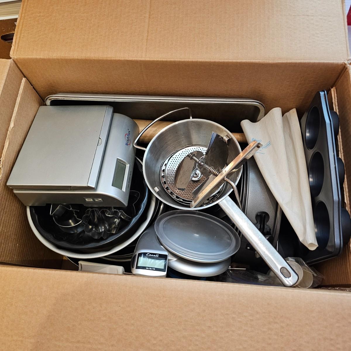 Large collection of mostly stainless bowls, measuring cups, Baking trays and more. Items by Wilton, Ikea, Escali, others. Largest round bowl is. 14"D x 6.5"H. Wilson tray is 11" x 17". Large spring pan is 10.5" D x 3"H. Large bundt pan is 10"D x 3.5"H. Rolling pin is 10". Two scales are battery powered but untested. See photos for details. Local pickup only.