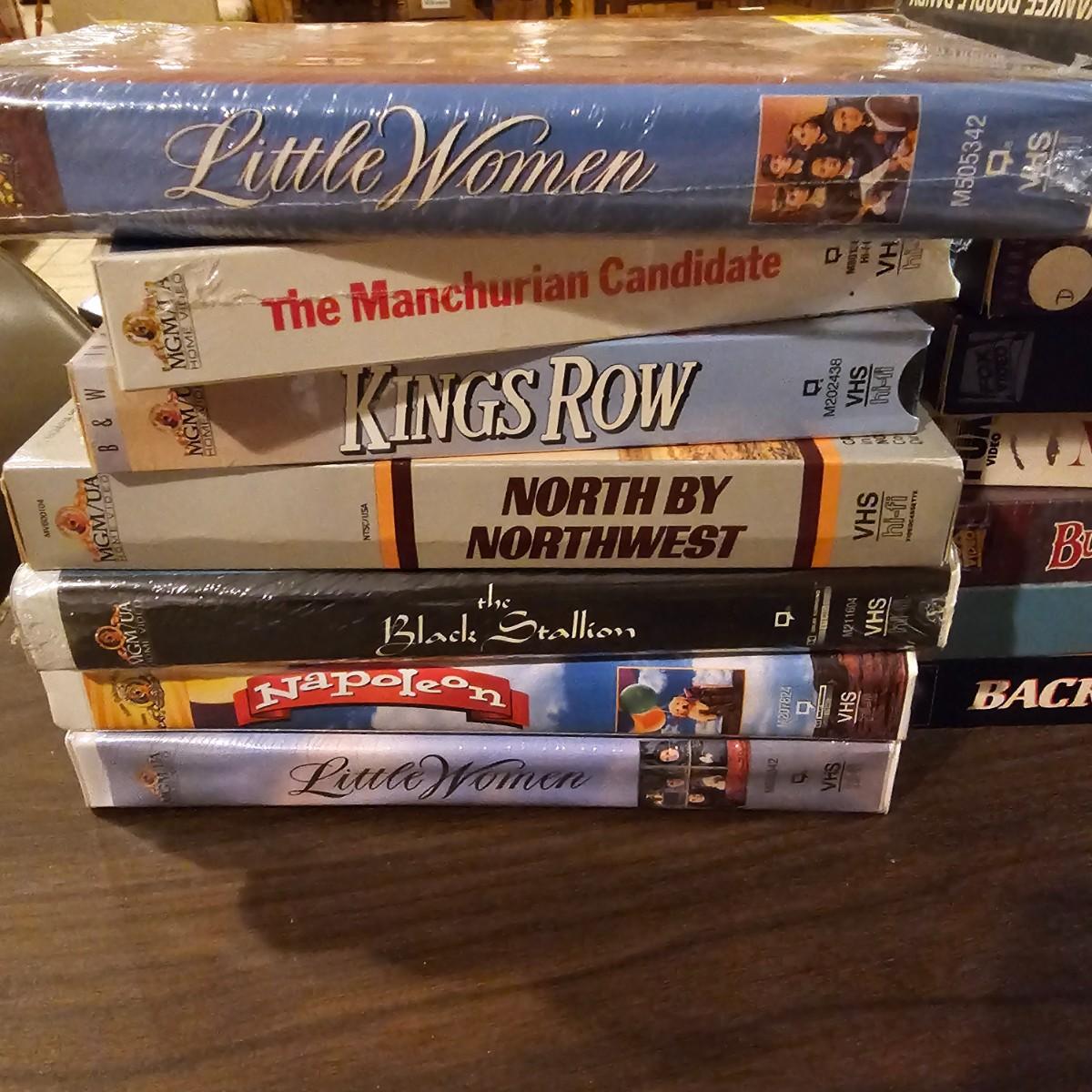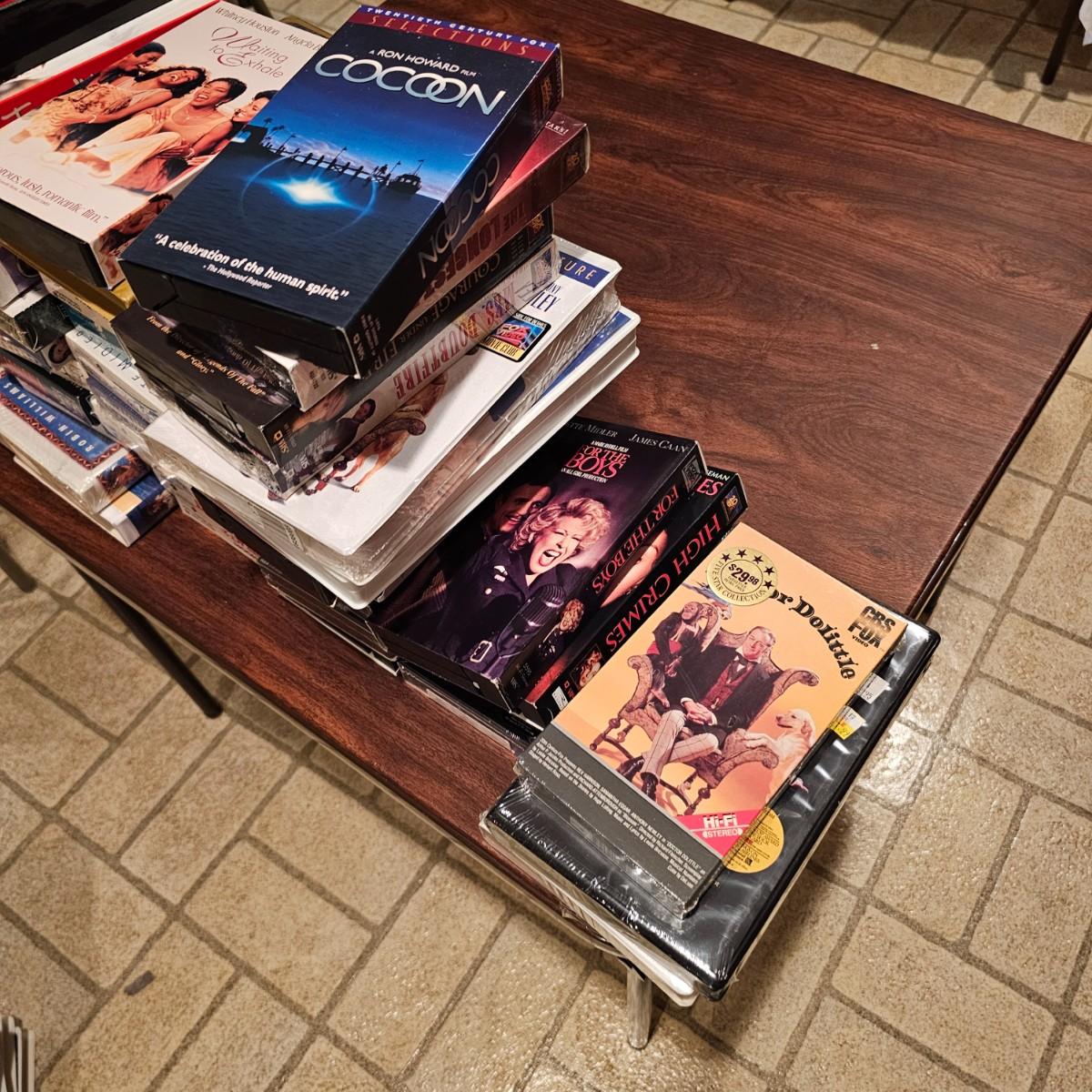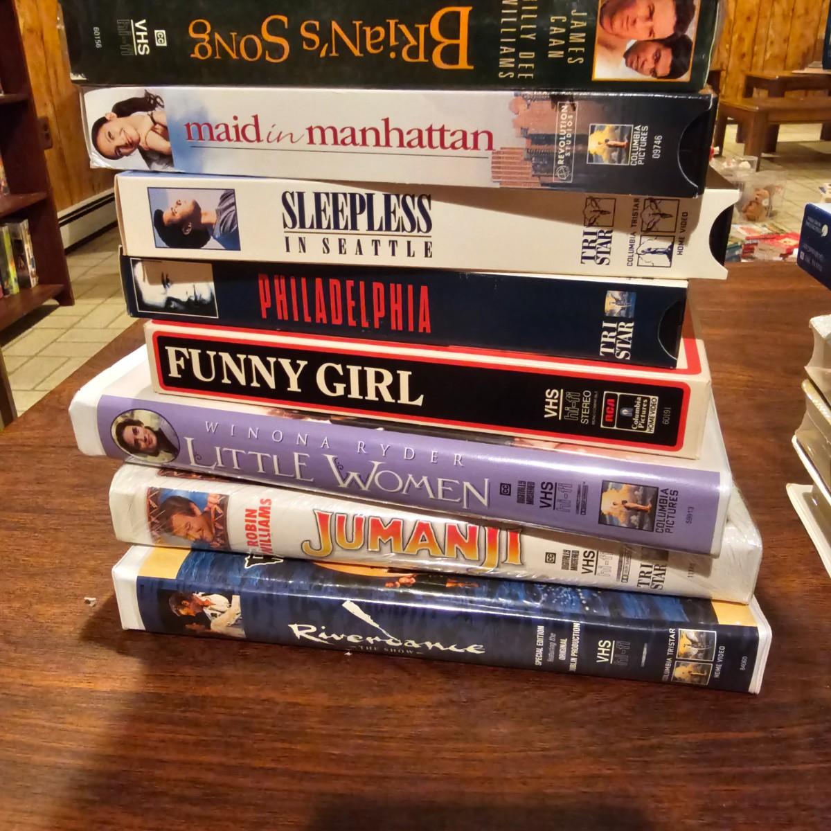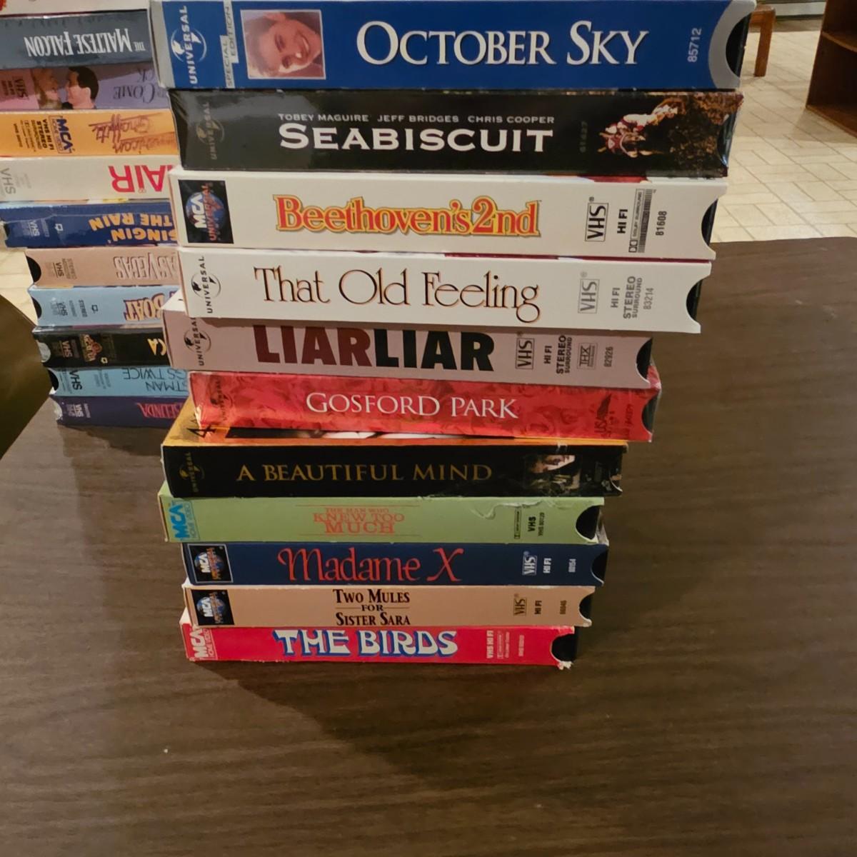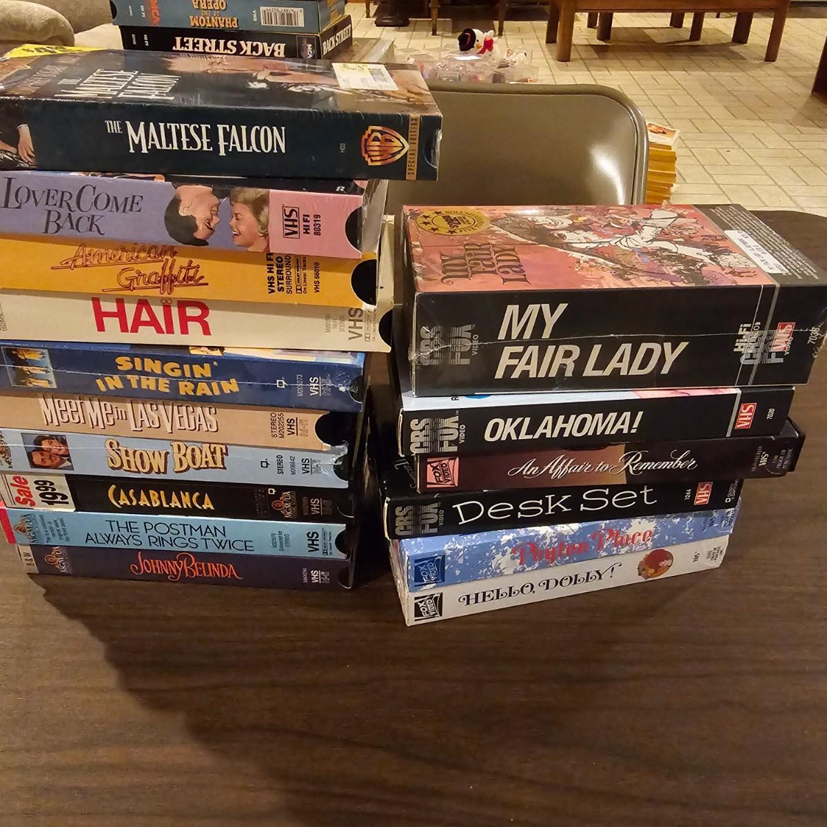 Videos, videos, videos! Over 375 VHS tapes, some still new in package. Westerns, comedy, suspense, holiday, classics and more. Many tapes are in original packages. Twelve boxes of fun and enjoyment for all. See photos for details. Local pickup only.