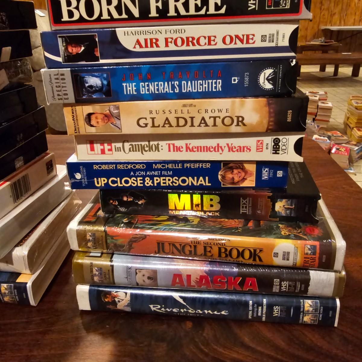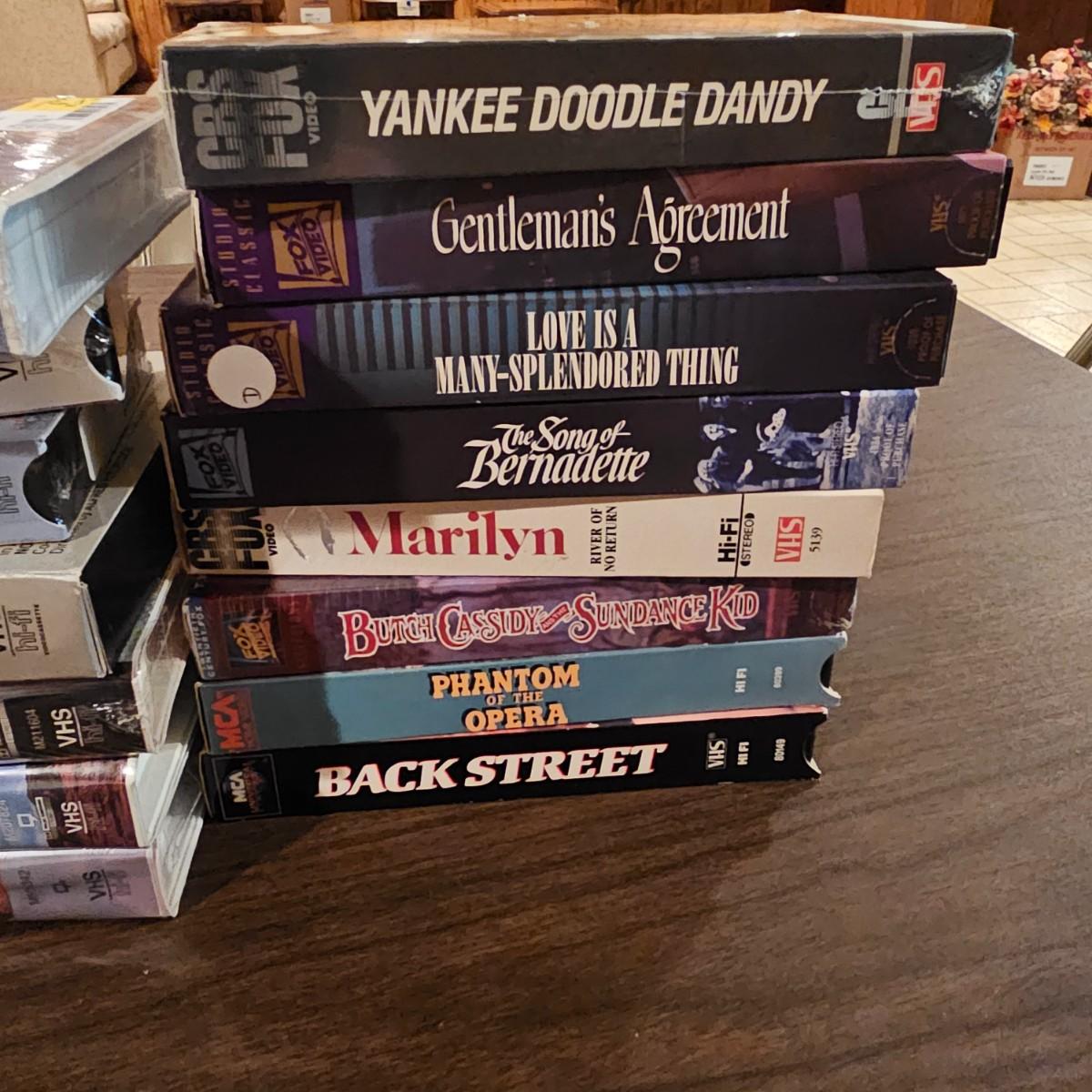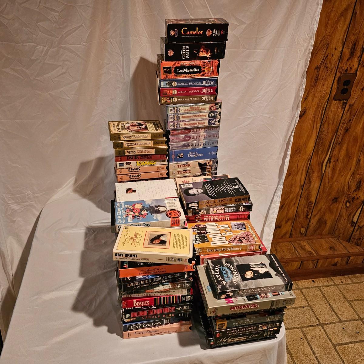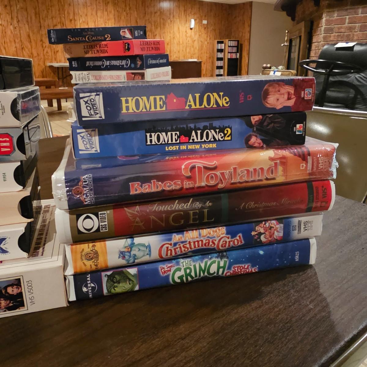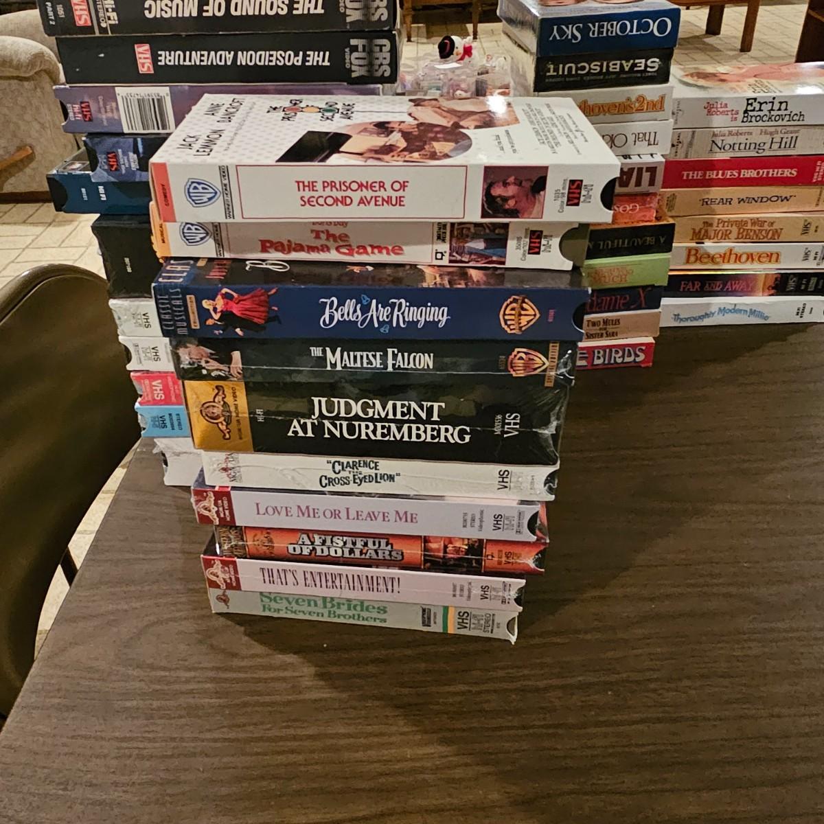 Videos, videos, videos! Over 375 VHS tapes, some still new in package. Westerns, comedy, suspense, holiday, classics and more. Many tapes are in original packages. Twelve boxes of fun and enjoyment for all. See photos for details. Local pickup only.