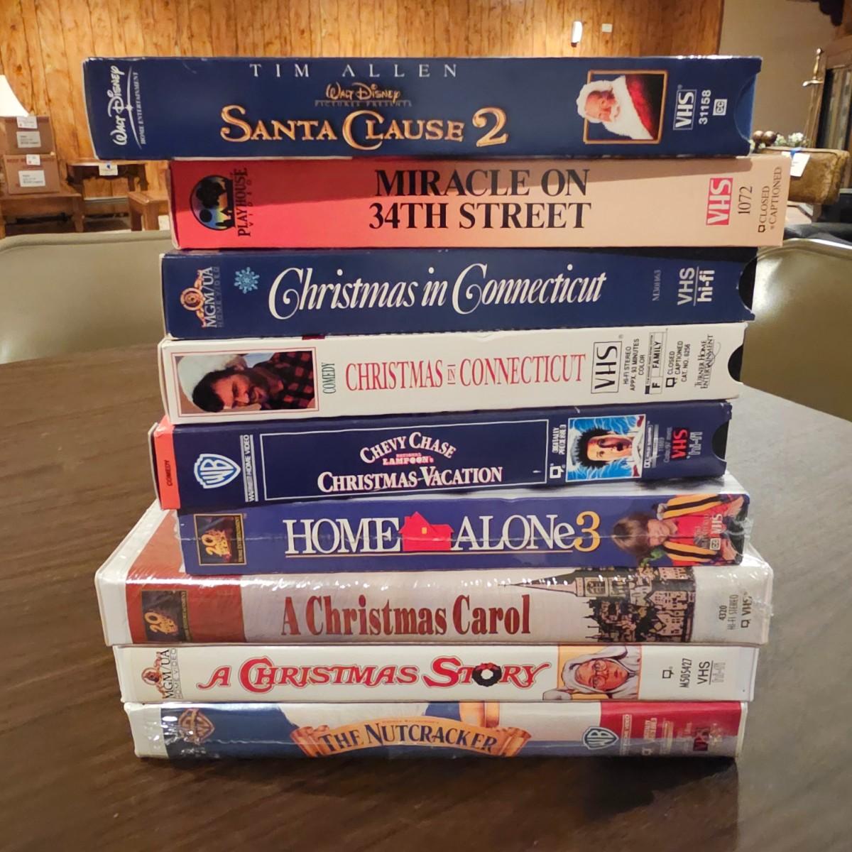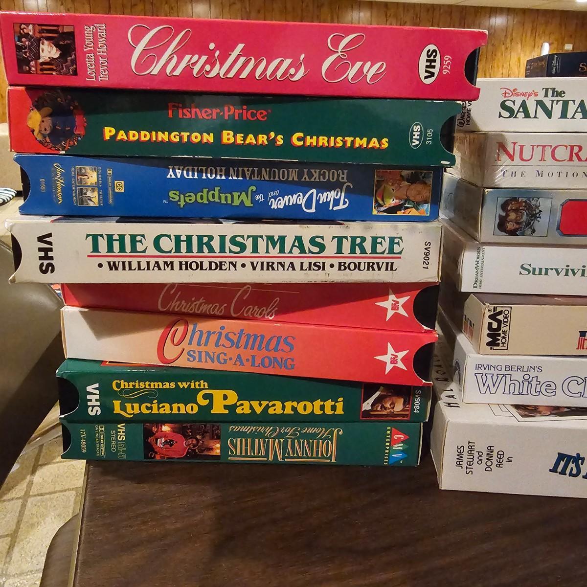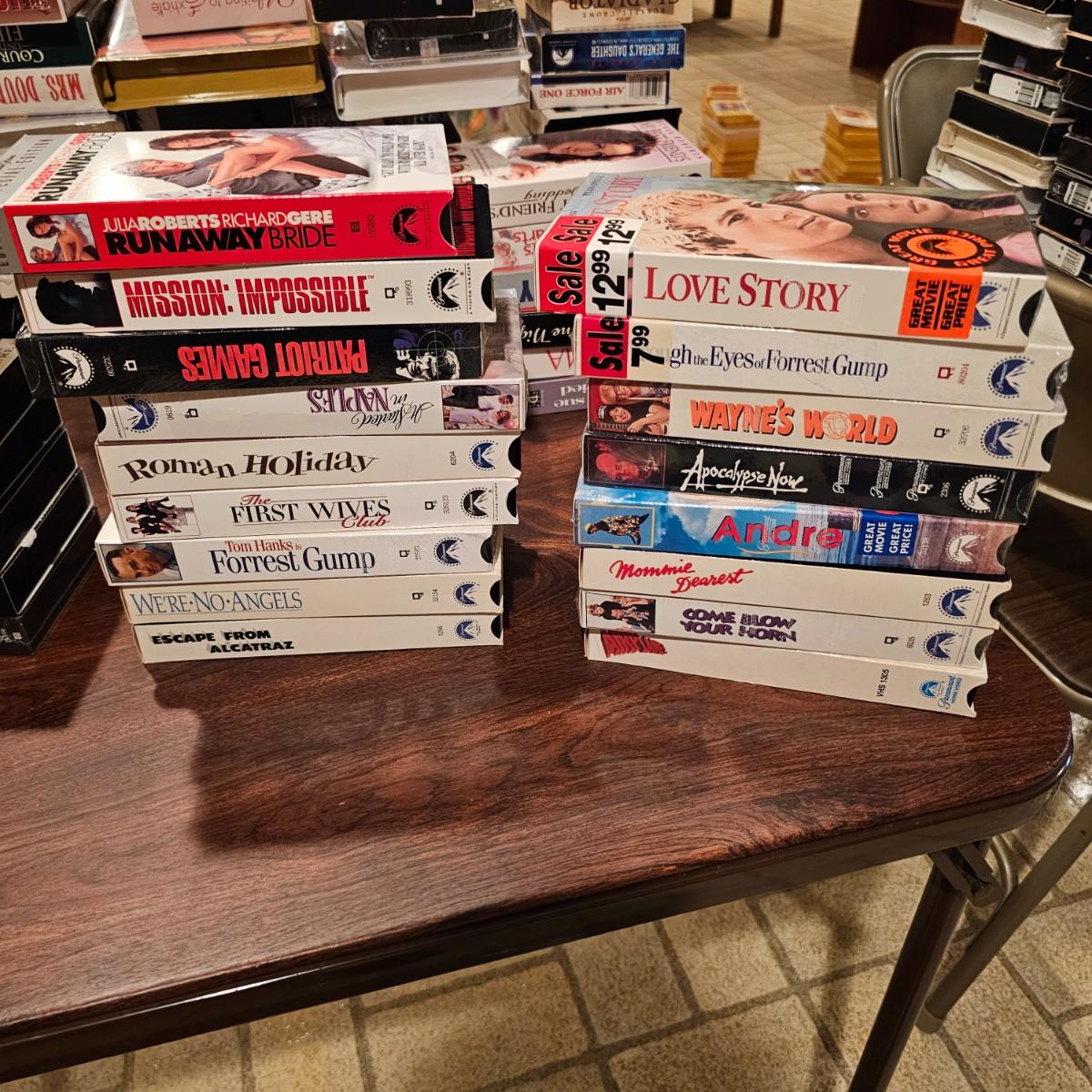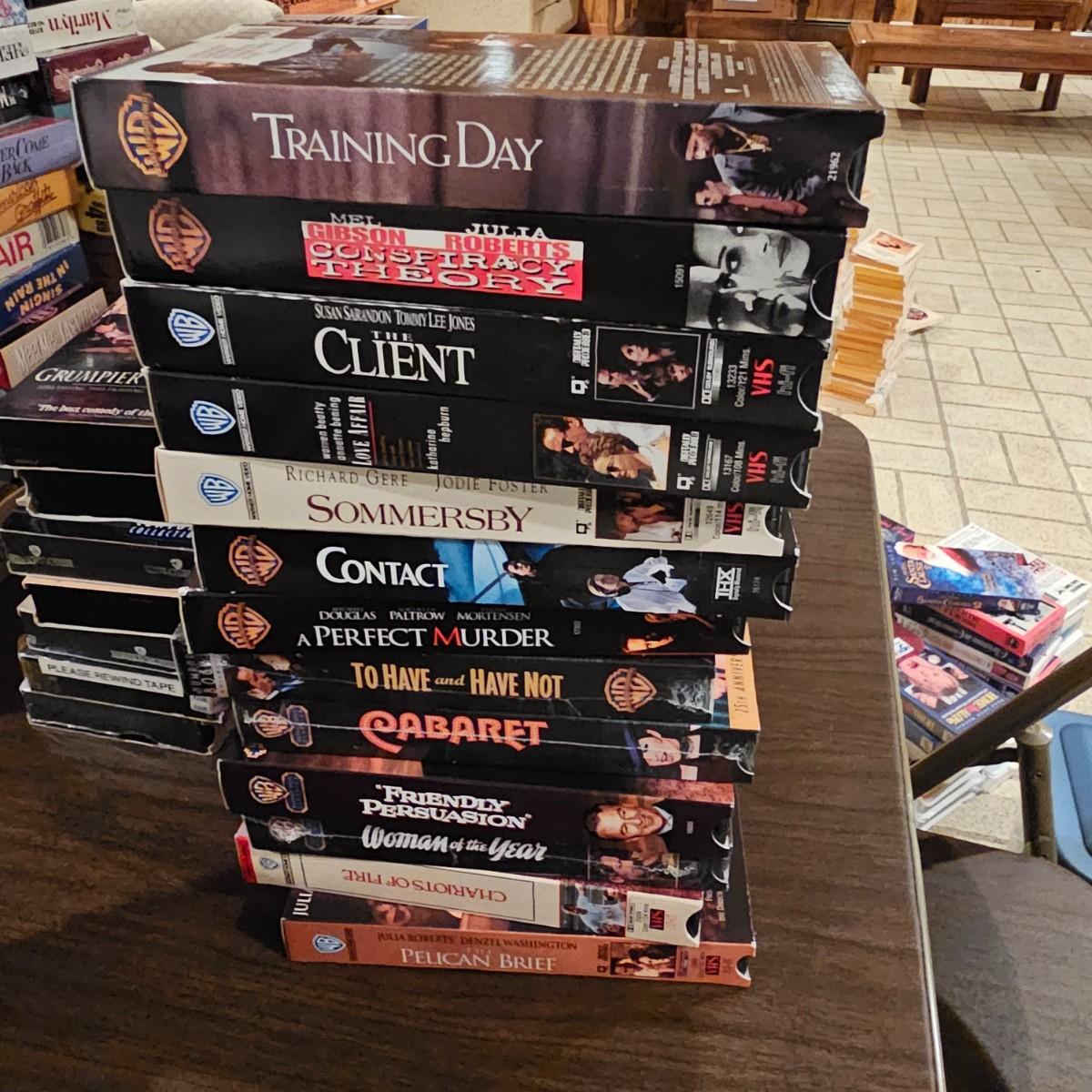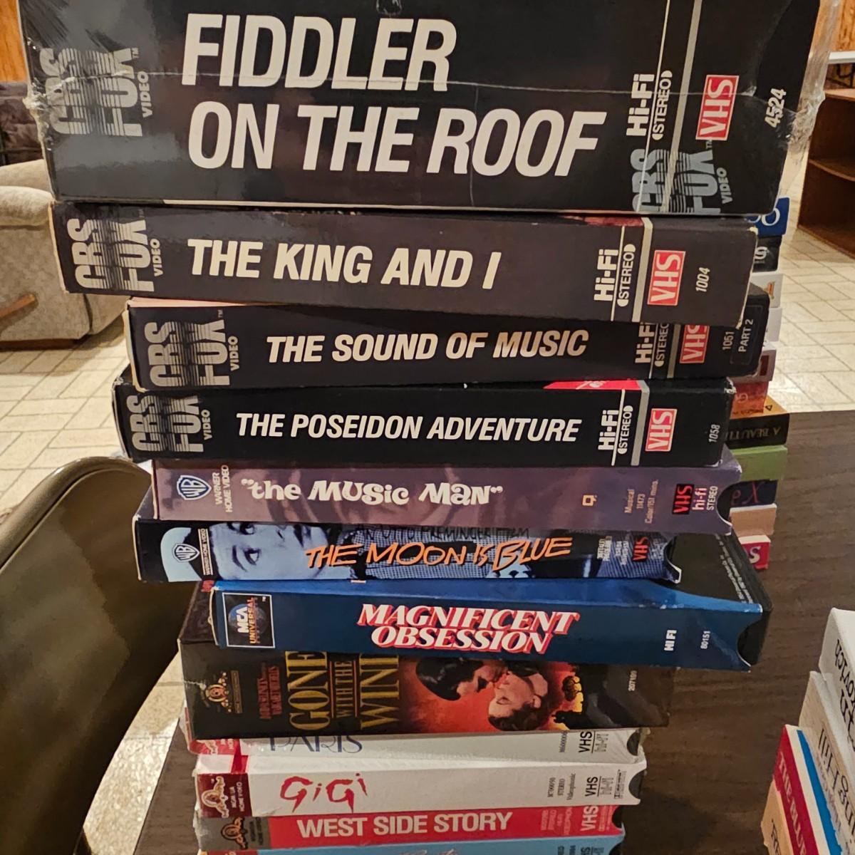 Videos, videos, videos! Over 375 VHS tapes, some still new in package. Westerns, comedy, suspense, holiday, classics and more. Many tapes are in original packages. Twelve boxes of fun and enjoyment for all. See photos for details. Local pickup only.