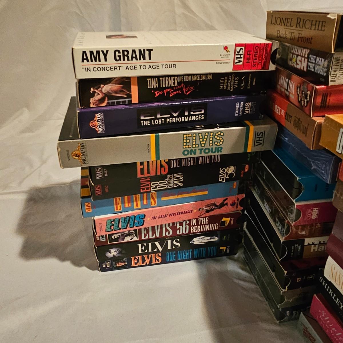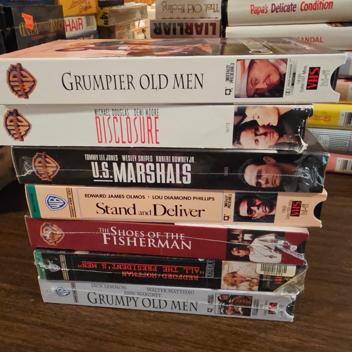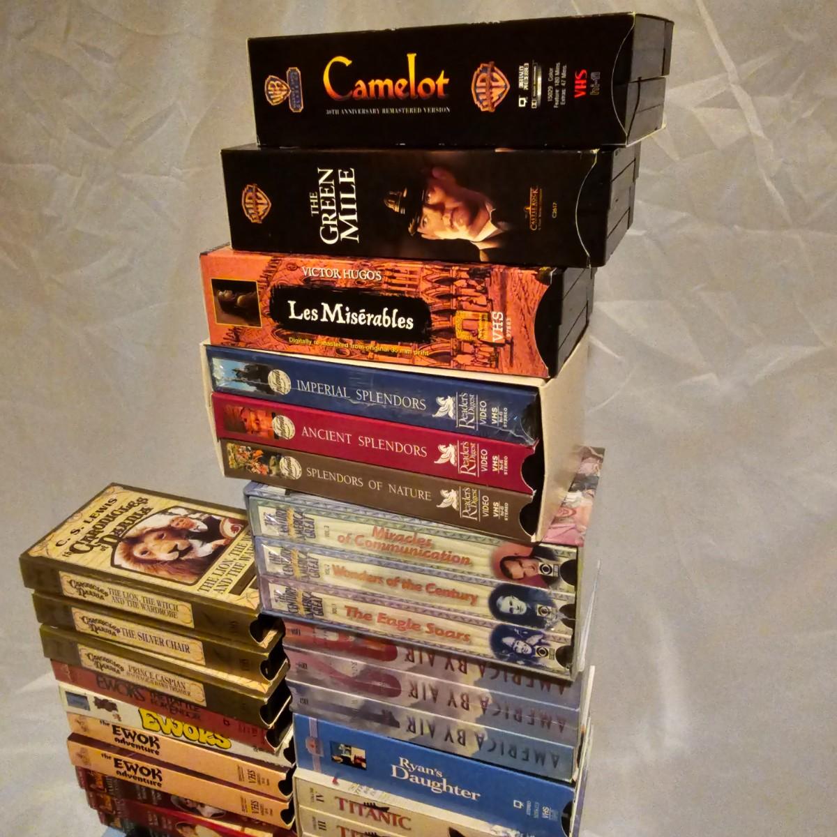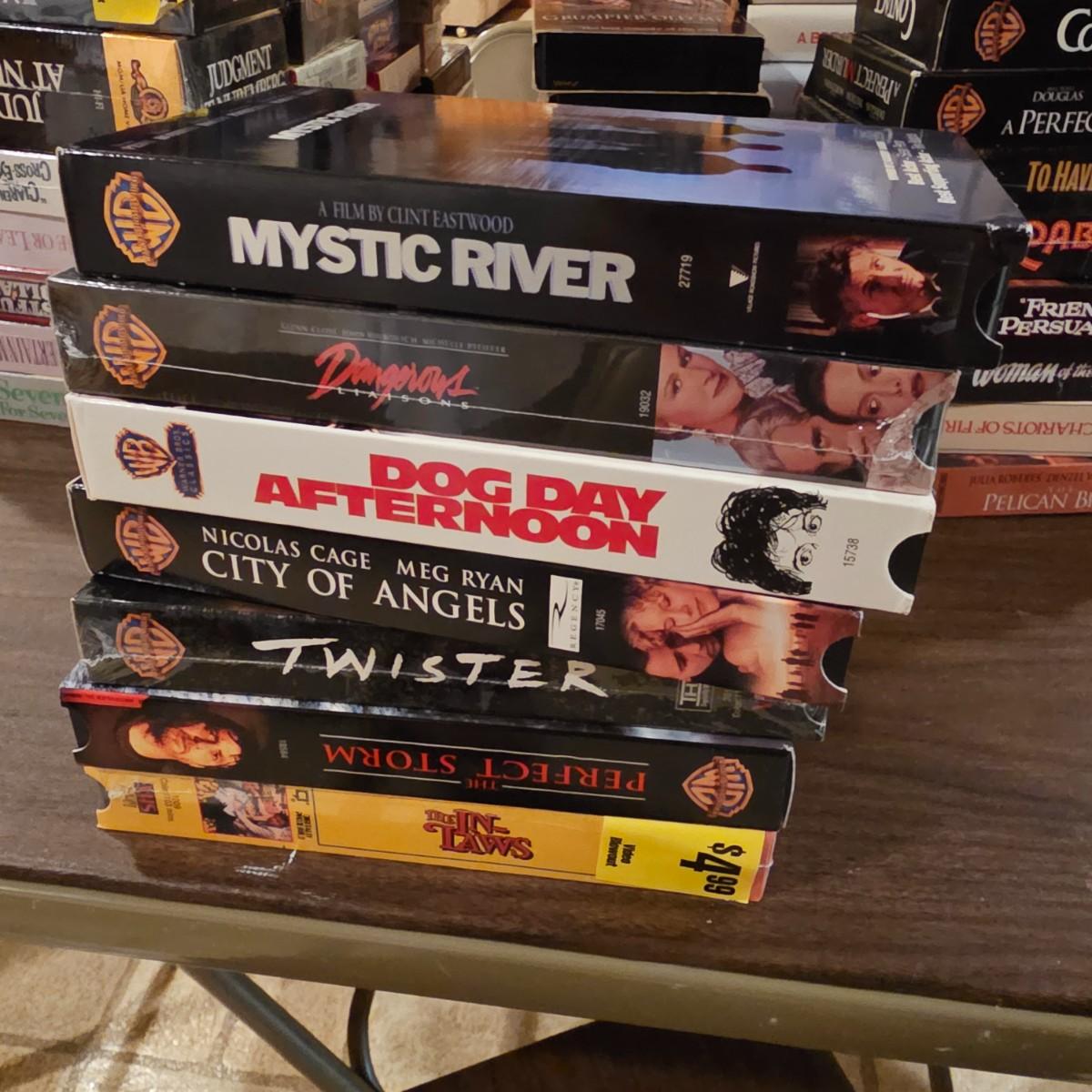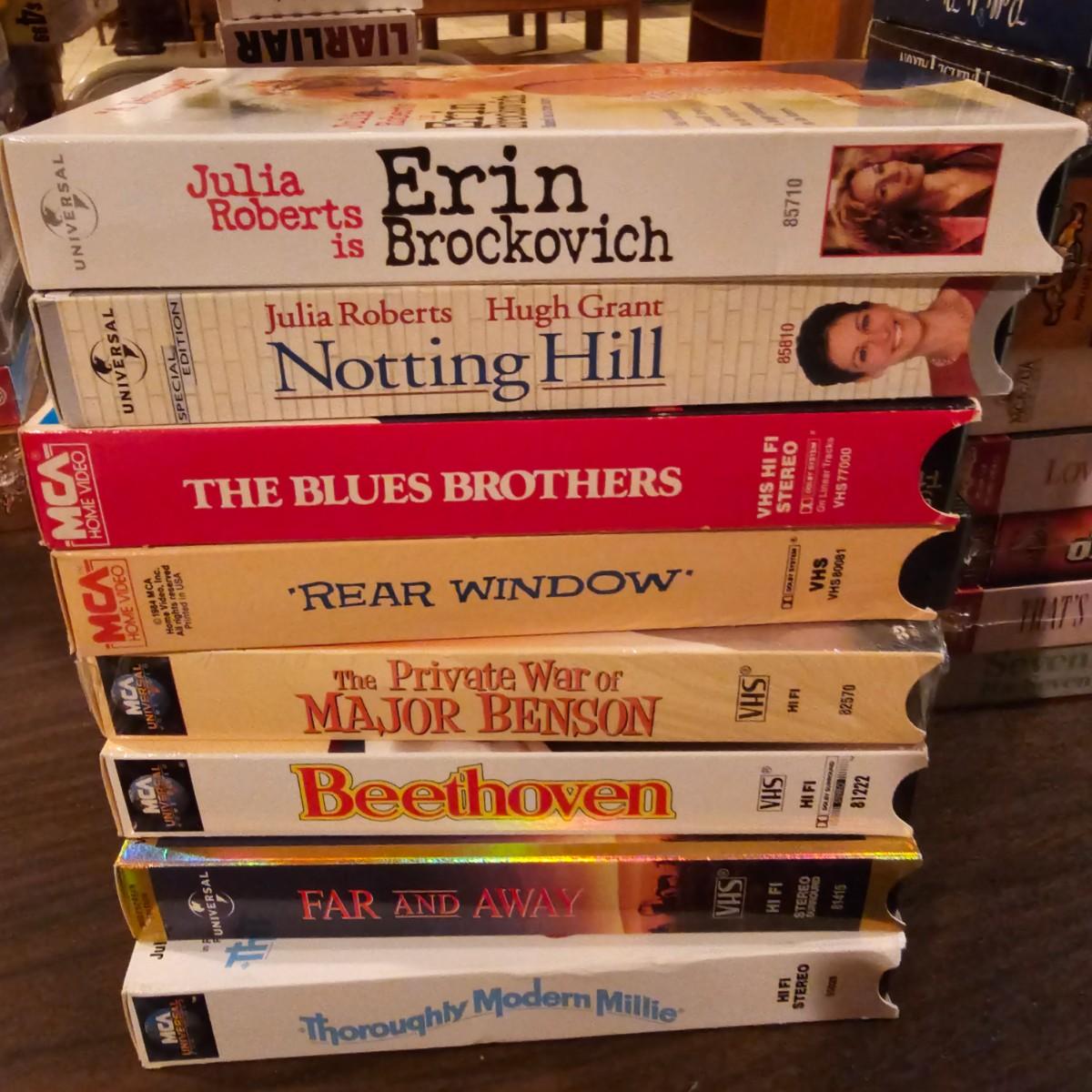Videos, videos, videos! Over 375 VHS tapes, some still new in package. Westerns, comedy, suspense, holiday, classics and more. Many tapes are in original packages. Twelve boxes of fun and enjoyment for all. See photos for details. Local pickup only.