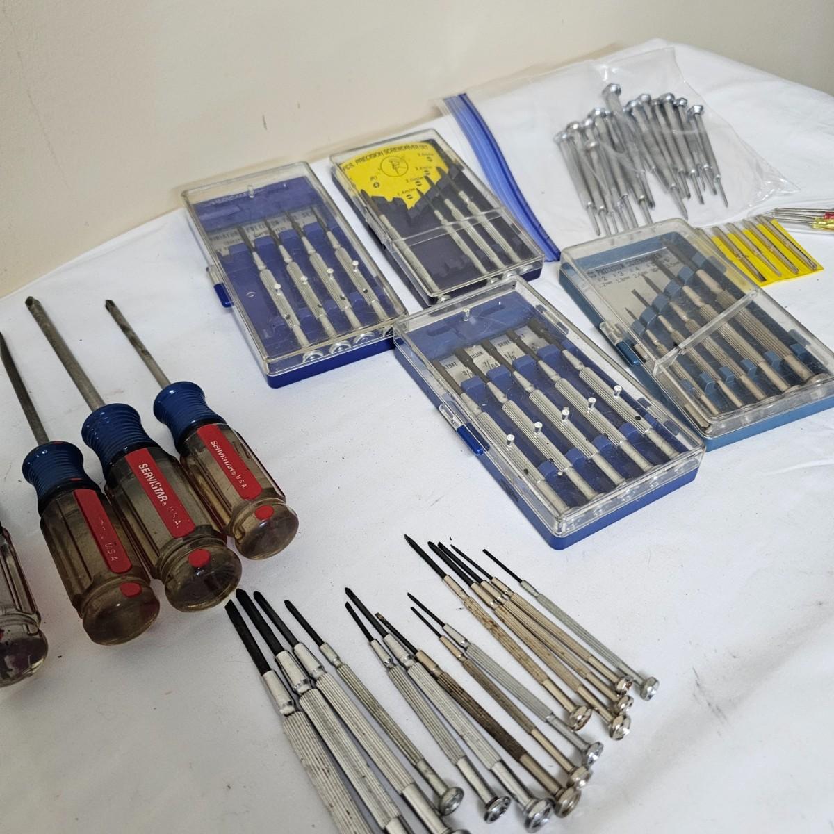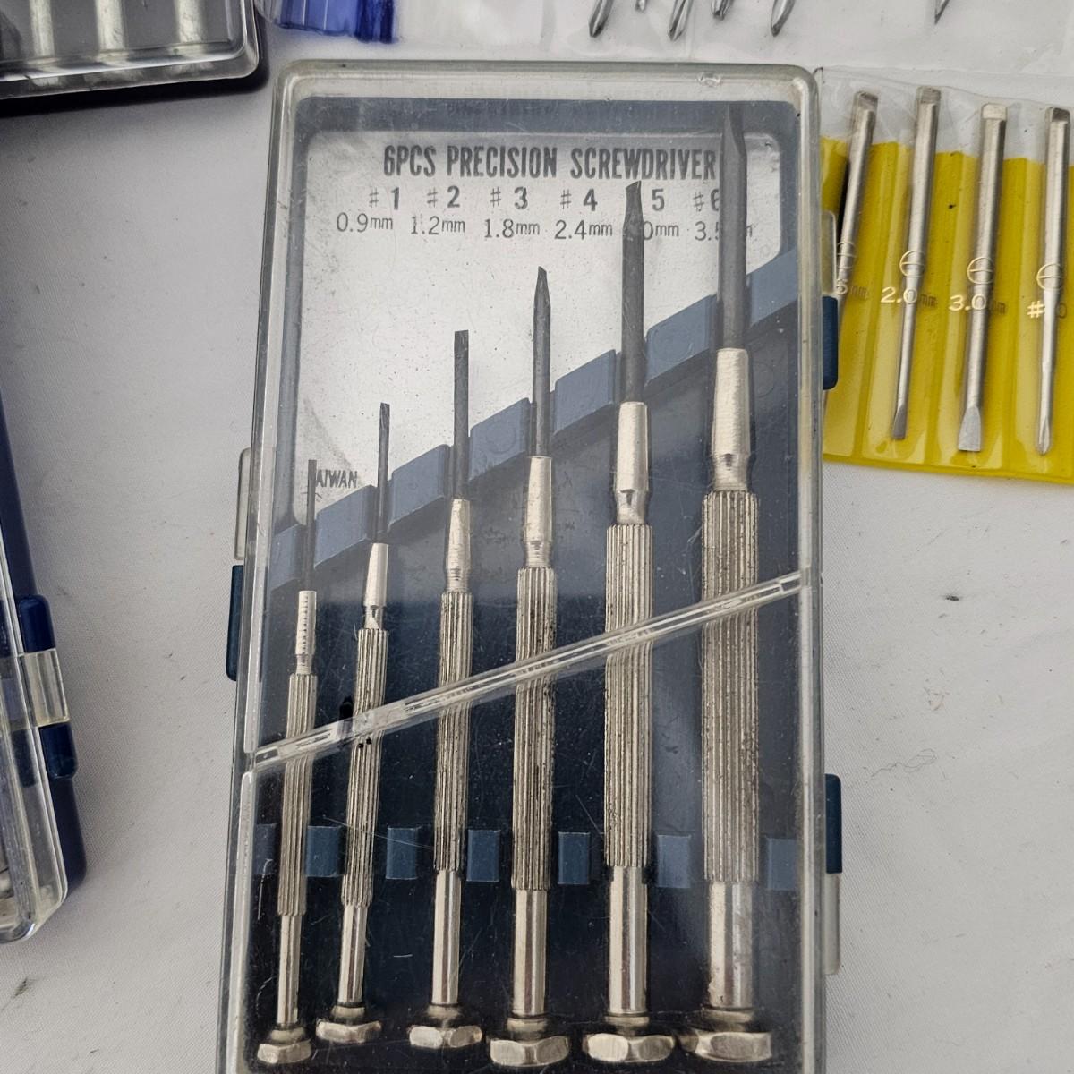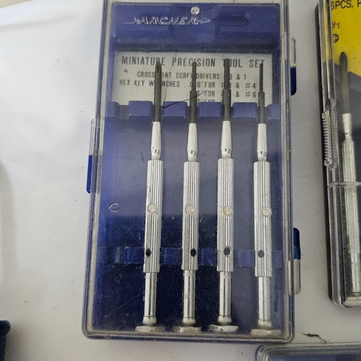 Phillips, common, Torx and more in this grouping. Items by Stanley, Torx, Archer and more. Four mini sets in plastic cases including a set of mini nut drivers. Several fingertip items for ease of use. See photos for details. Shipping available.