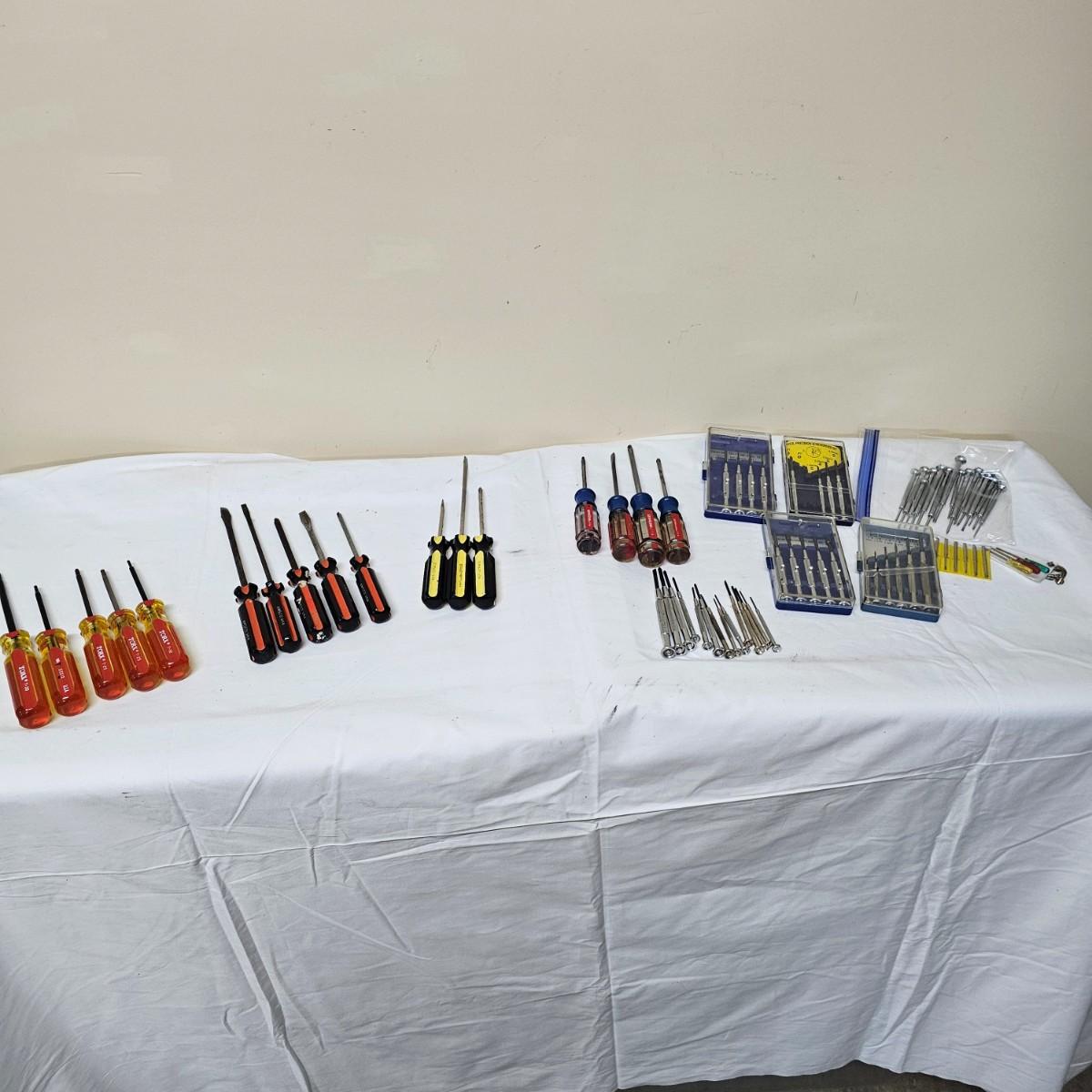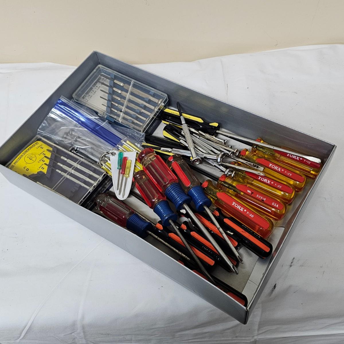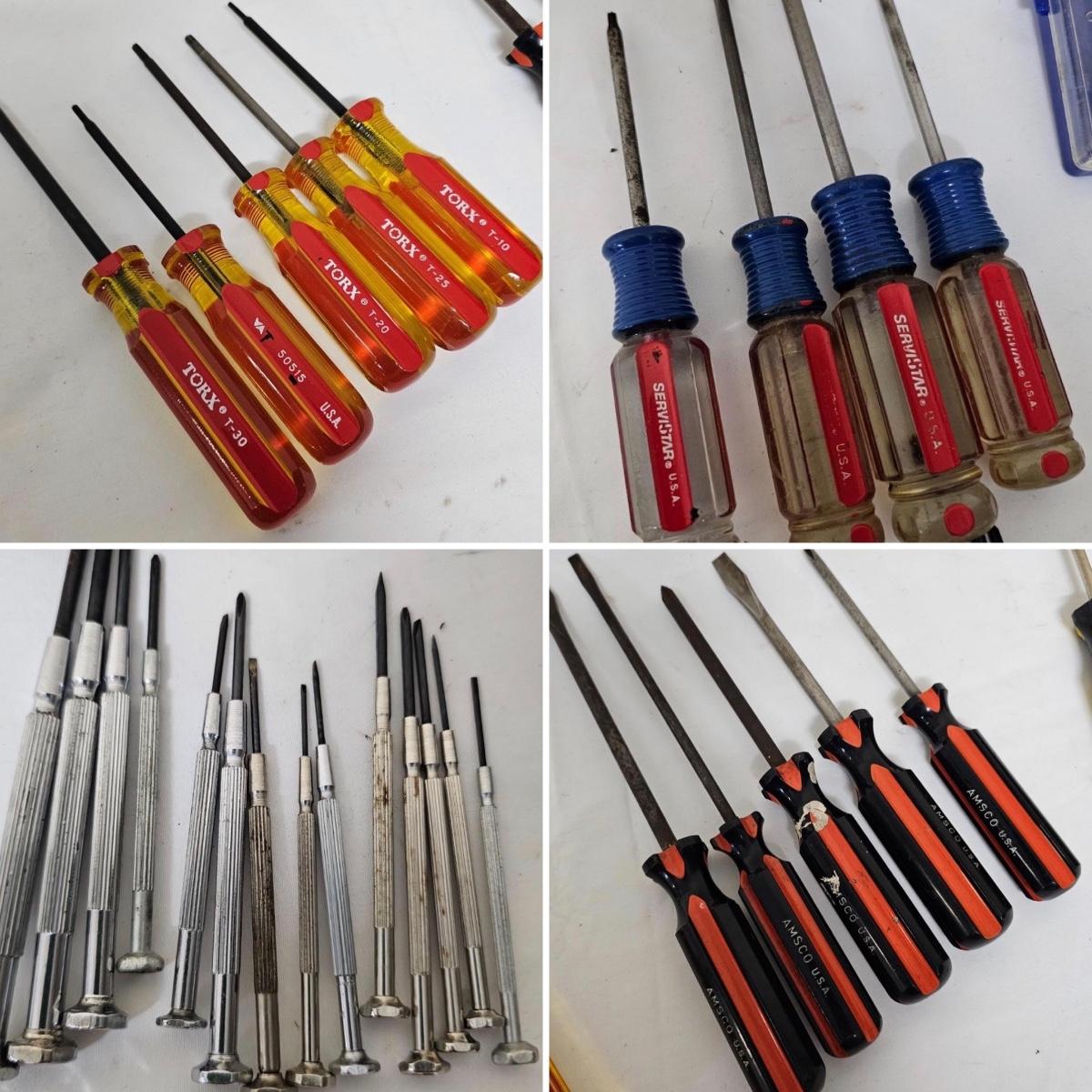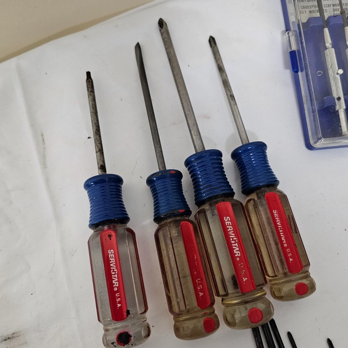 Phillips, common, Torx and more in this grouping. Items by Stanley, Torx, Archer and more. Four mini sets in plastic cases including a set of mini nut drivers. Several fingertip items for ease of use. See photos for details. Shipping available.