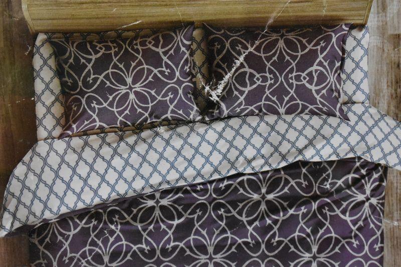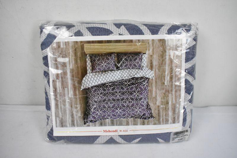 Mehendi 3 Piece Queen Bedding Set Duvet Cover & Pillowcases, Navy & White - New