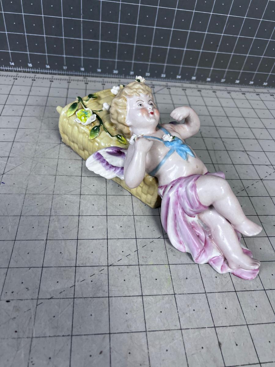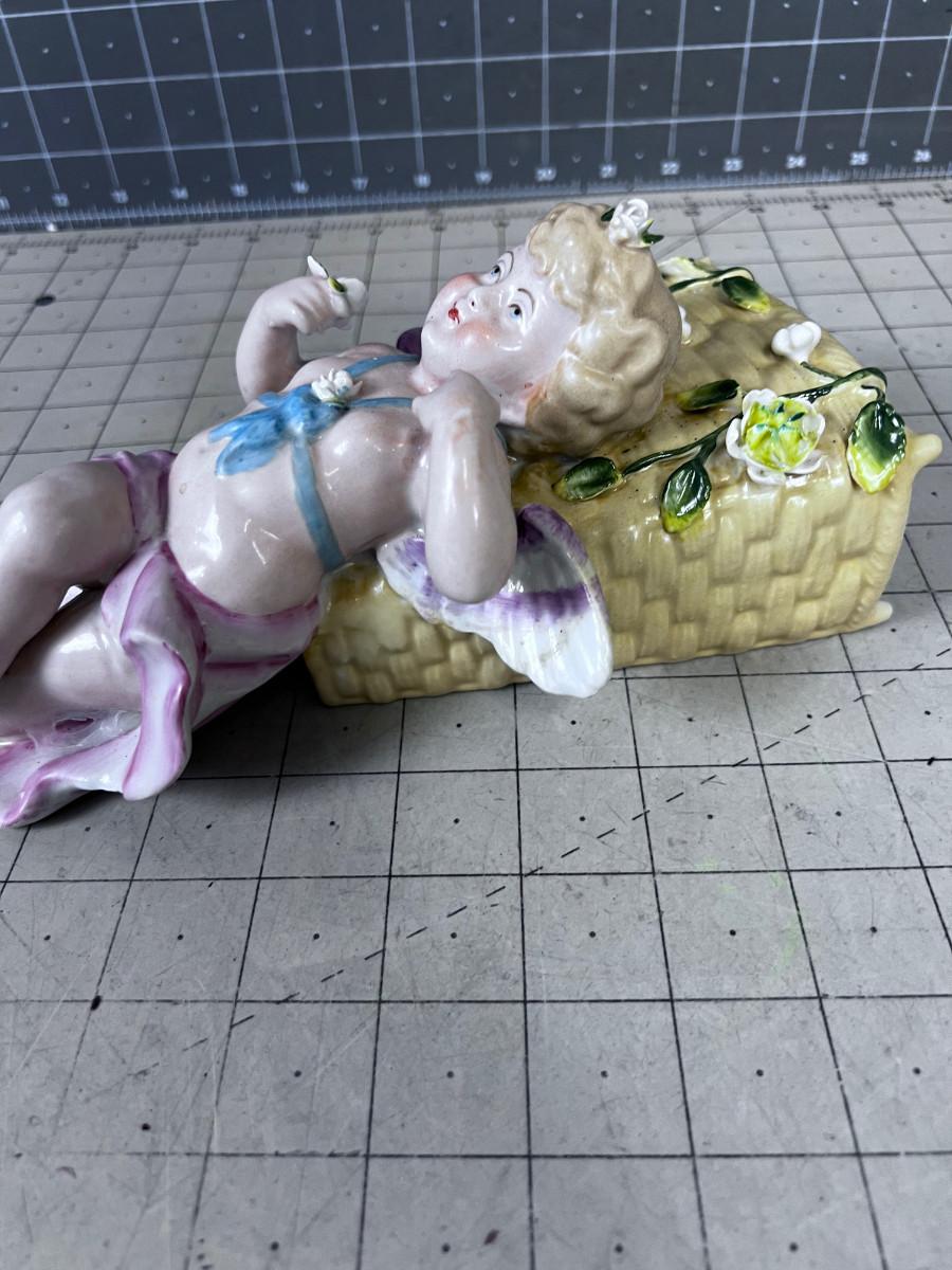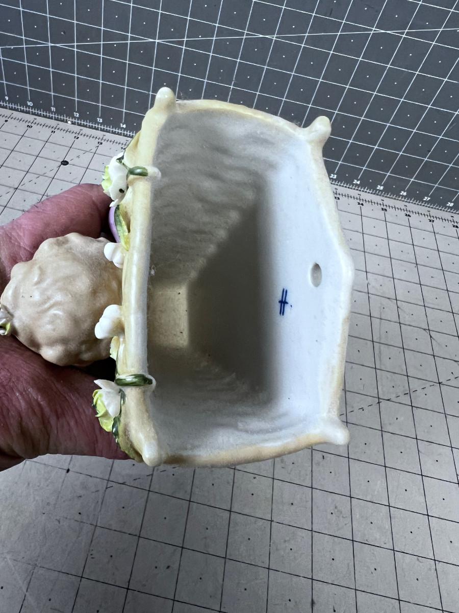 Good condition, 9" long, Meissen ink stamp in basket C. 1890