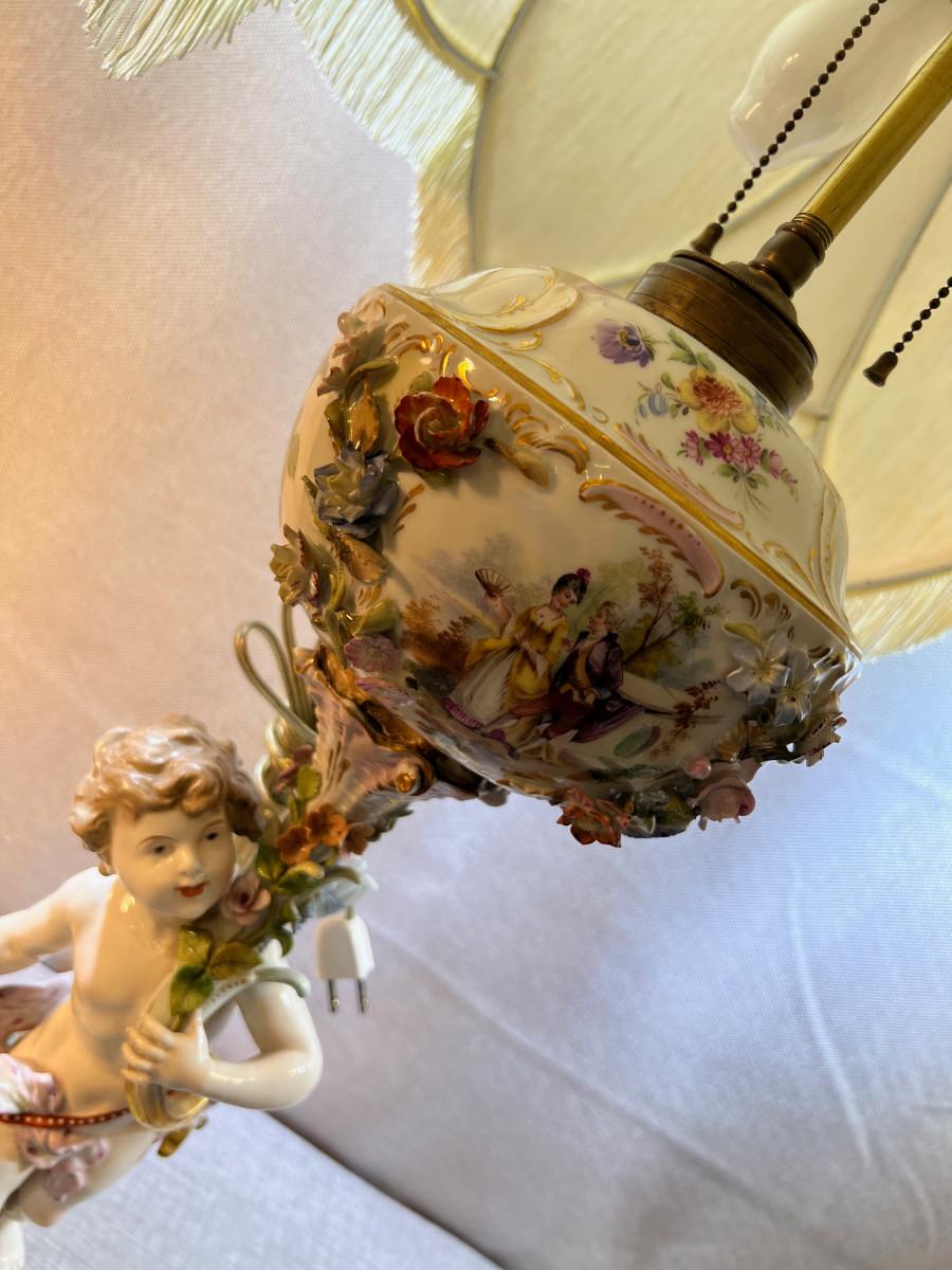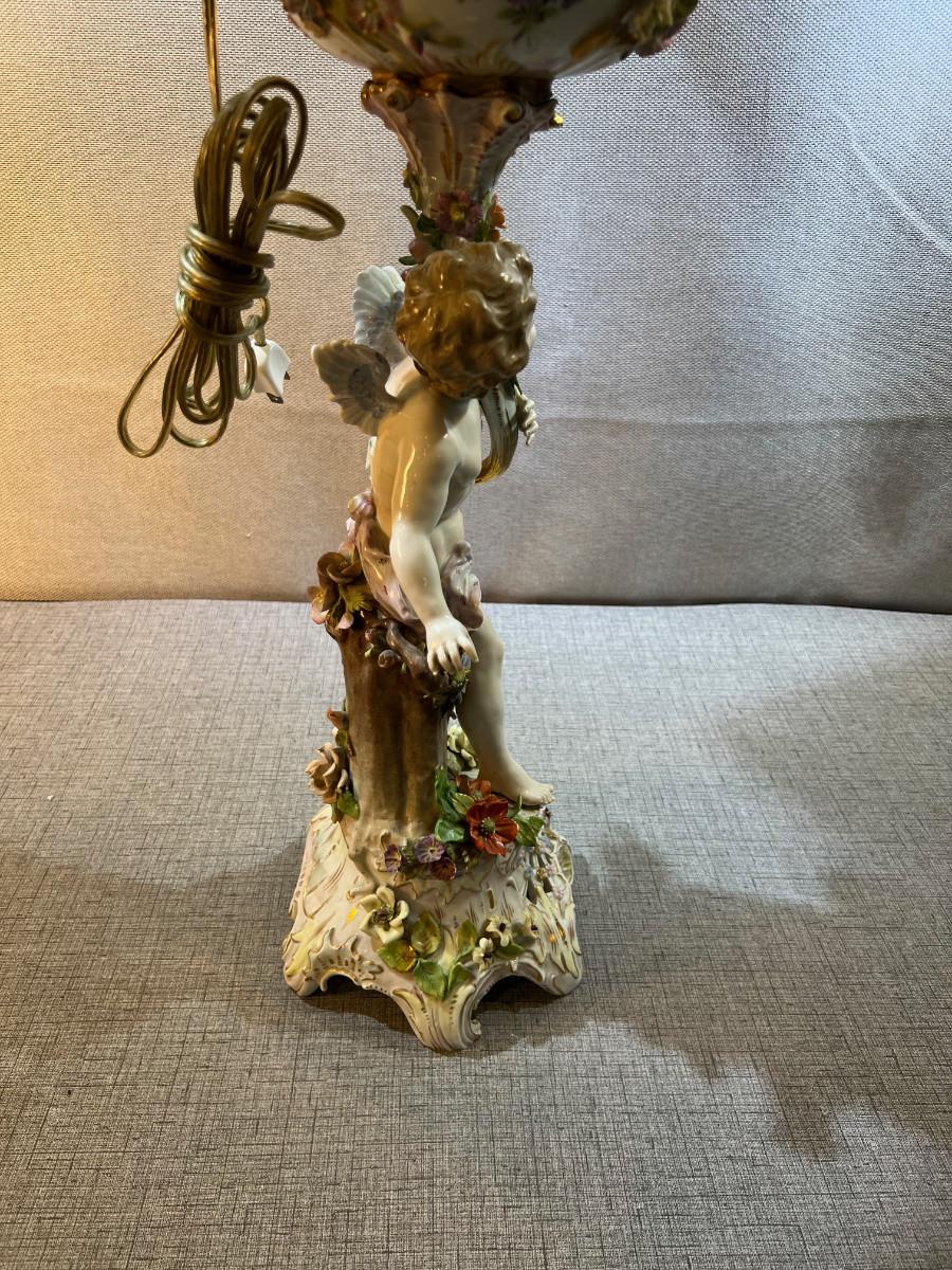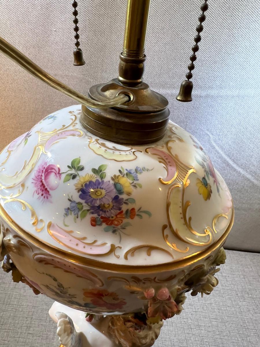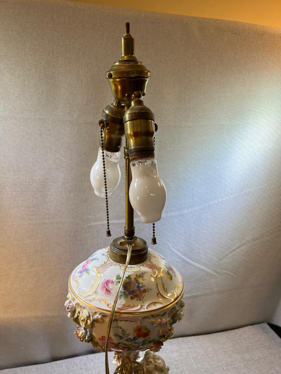 Good condition some small loss to a few of the small petals around base. Lamp has been rewired in the recent past. Measures an impressive 34" tall. If shipping is need lamp and shade will ship in separate boxes.