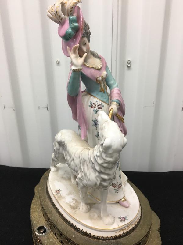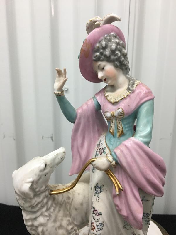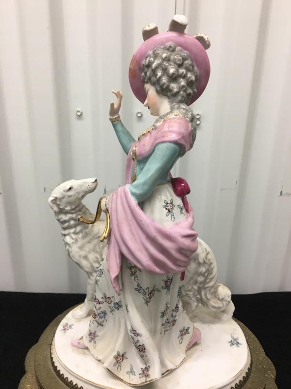 Meissen Style Fine Porcelain Lady and Dog 12” Figurine