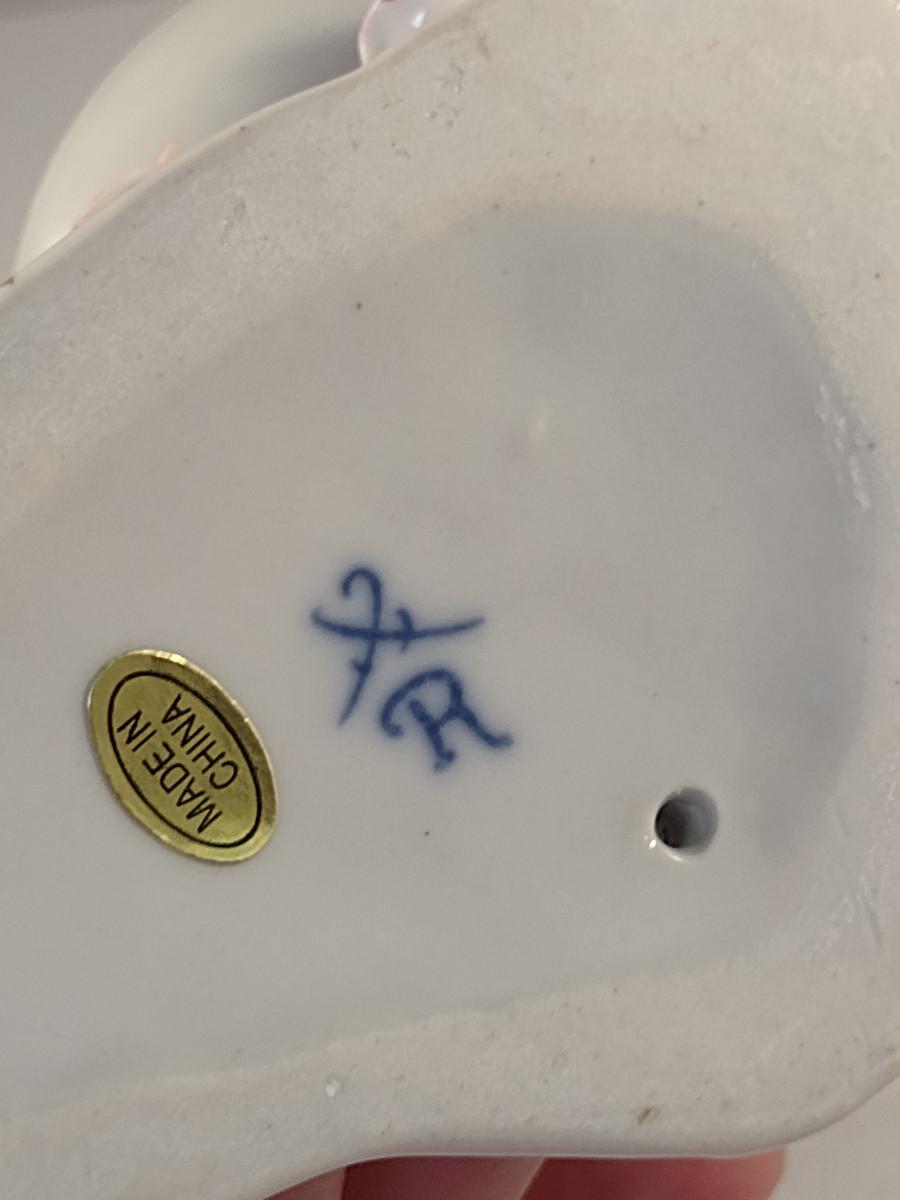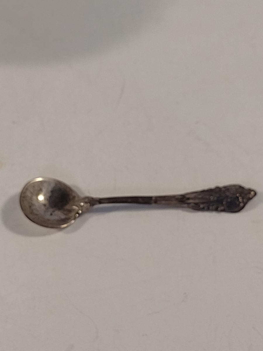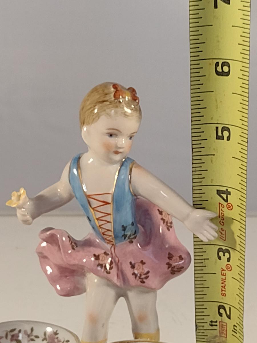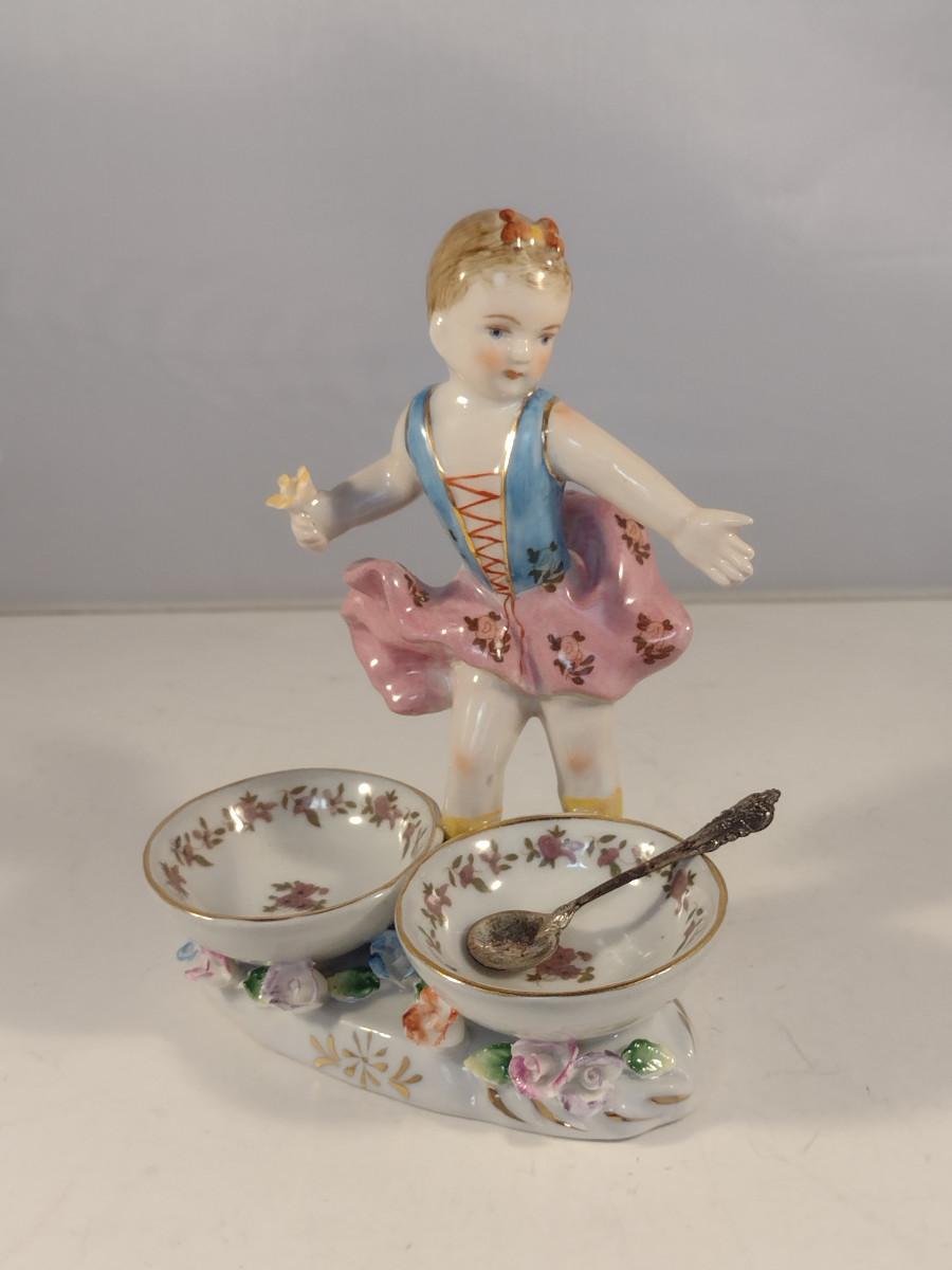 Meissen Style Porcelain Double Salt Cellar Girl with Sterling Silver Spoon- Approx 5 3/4" Tall