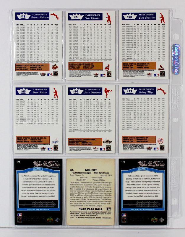 MEL OTT Brooks Robinson HACK WILSON Reggie Jackson HOF BASEBALL CARDS SET of 9 MINT