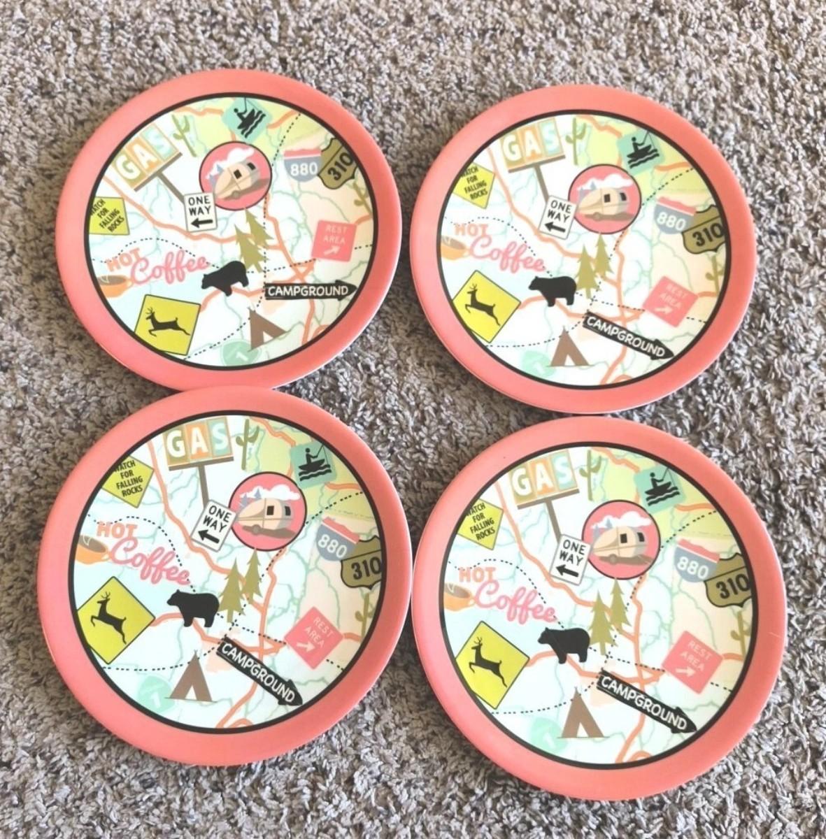 Vintage Retro camp melamine casual salad plates 9" RV camping picnic, set of 4