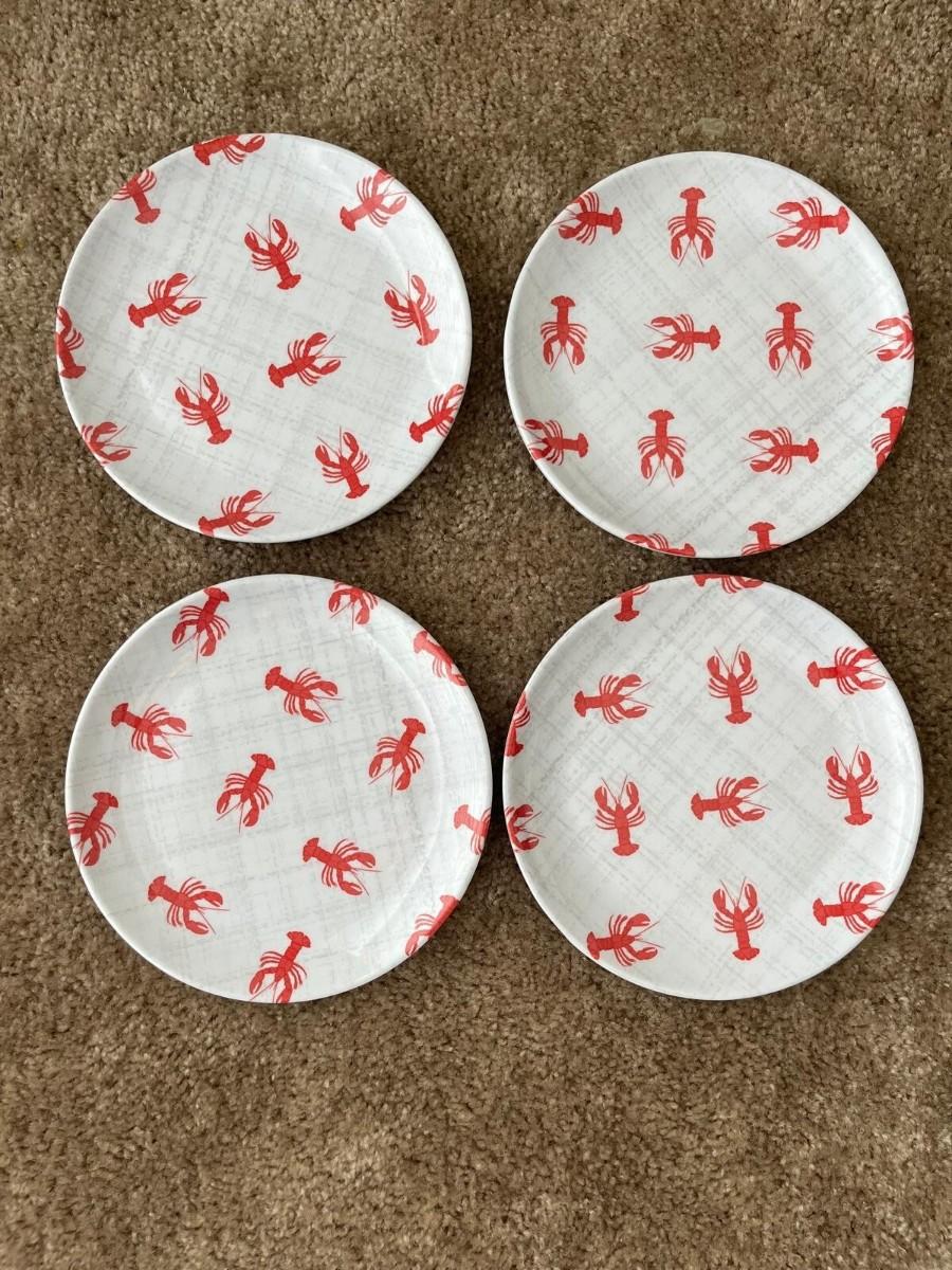 Melamine red lobster plates, 4