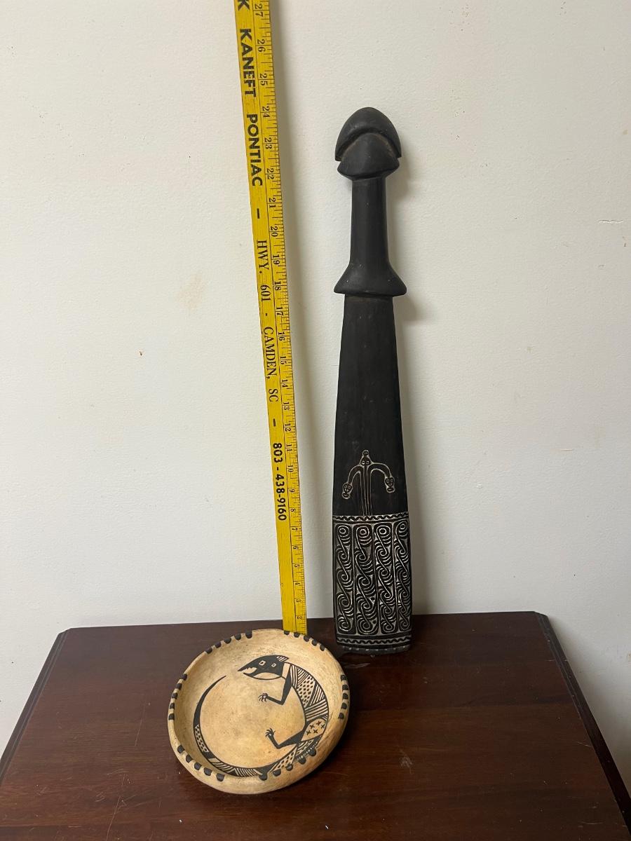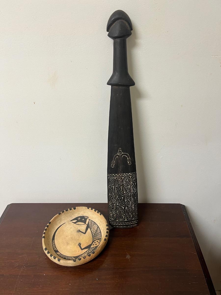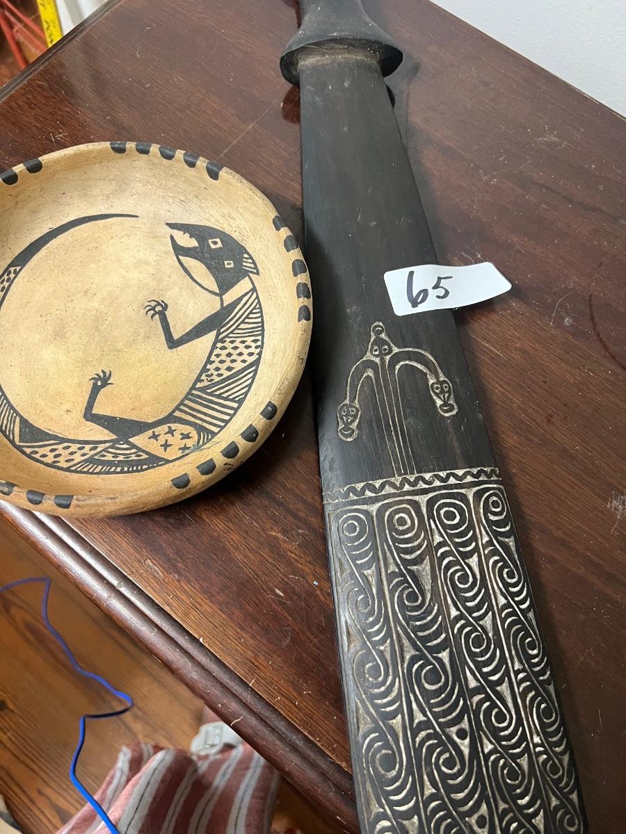melanesian war club and hopi pottery bowl lot, as pictured