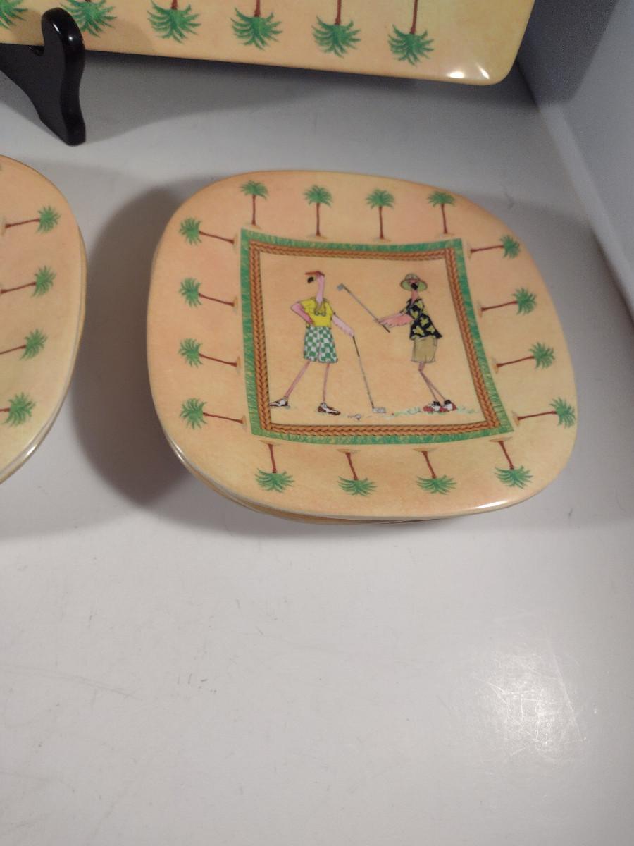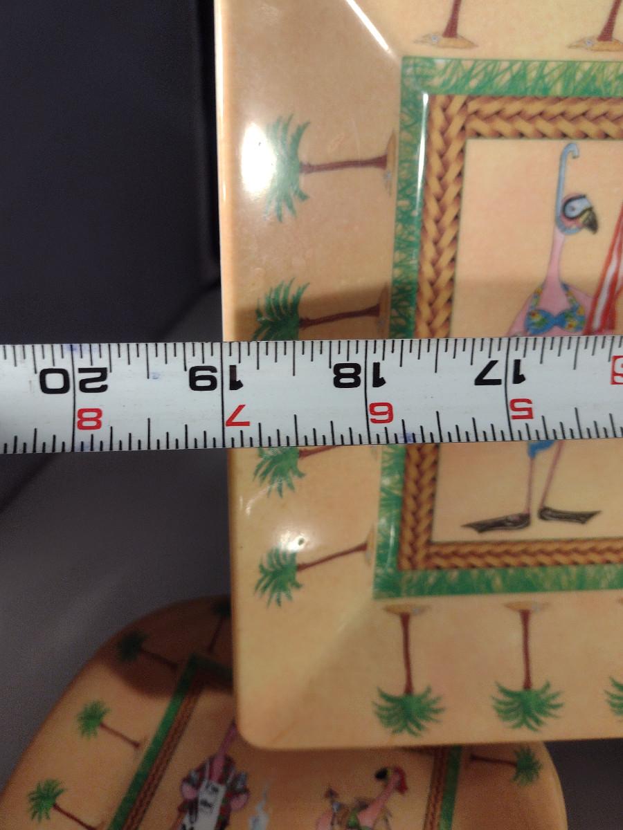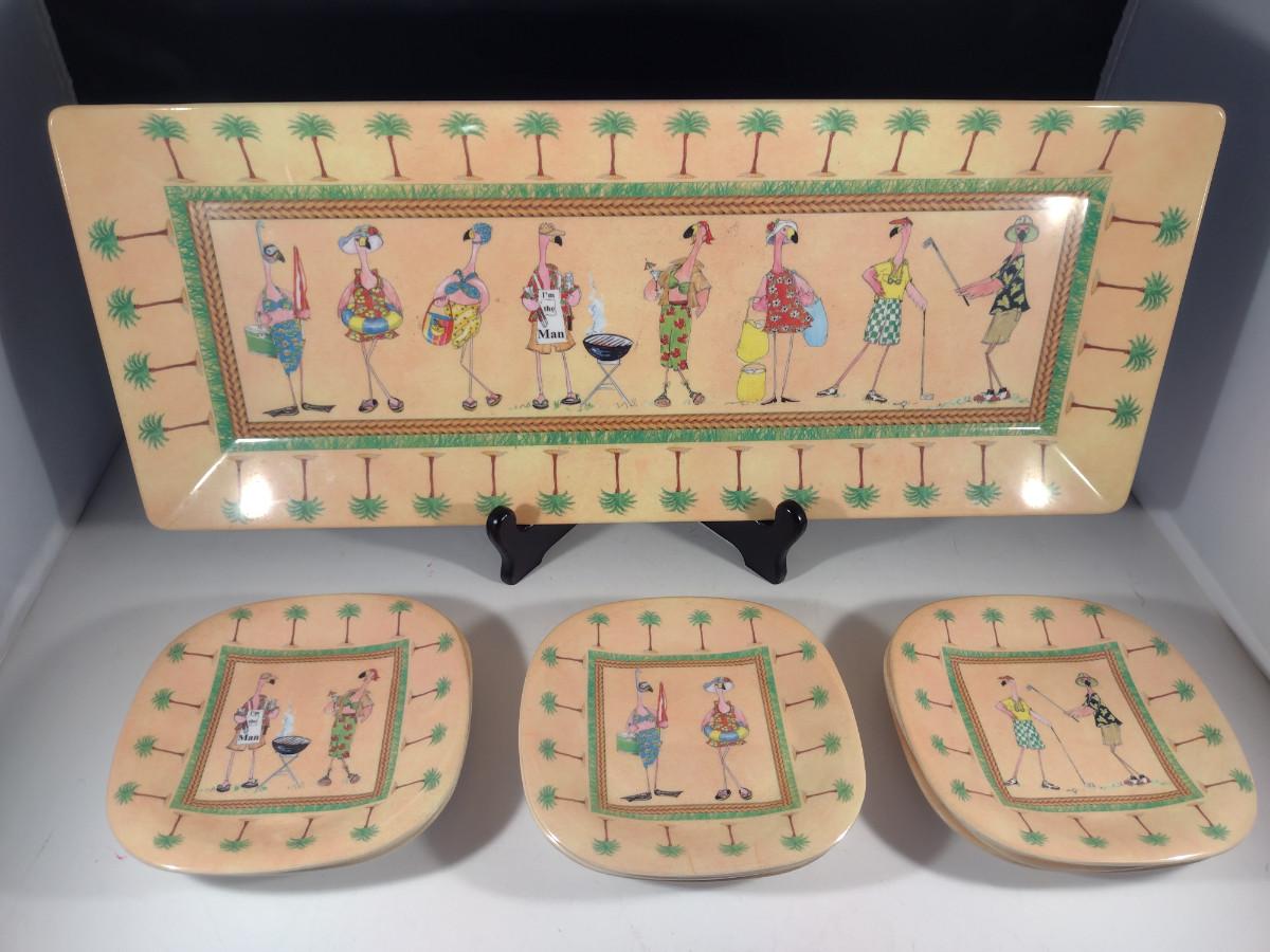 Melamine Appetizer Set with Flamingo Design- One Tray and Nine Small Plates. Small plates are three each of three designs.