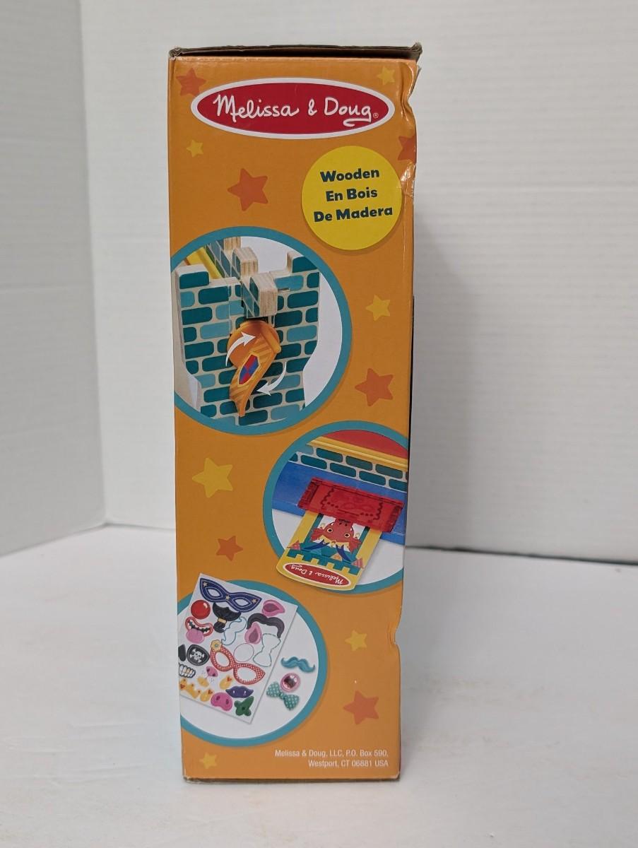 Get ready for silly fun with this Melissa & Doug "Fun at the Fair" Funhouse Mirror game. Includes a wooden double-sided mirror that distorts reflections, 21 reusable stickers, and a play card. Designed for 1–2 players and ages 3 and up. Twist the knob to ripple the mirror and make funny faces even funnier. Sealed box dated 2022.