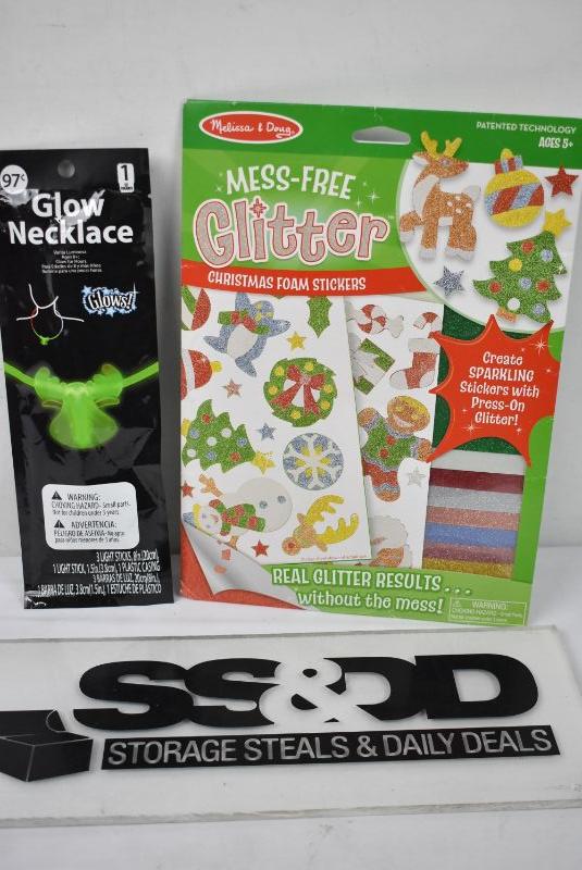Melissa & Doug Mess-Free Glitter Christmas Stickers AND Glow Necklace - New