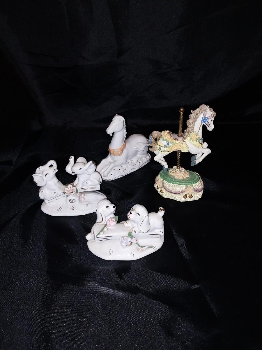 AVON TAPESTRY COLLECTION UNICORN-ELEPHANT AND PUPPY DECOR-CAROUSEL HORSE