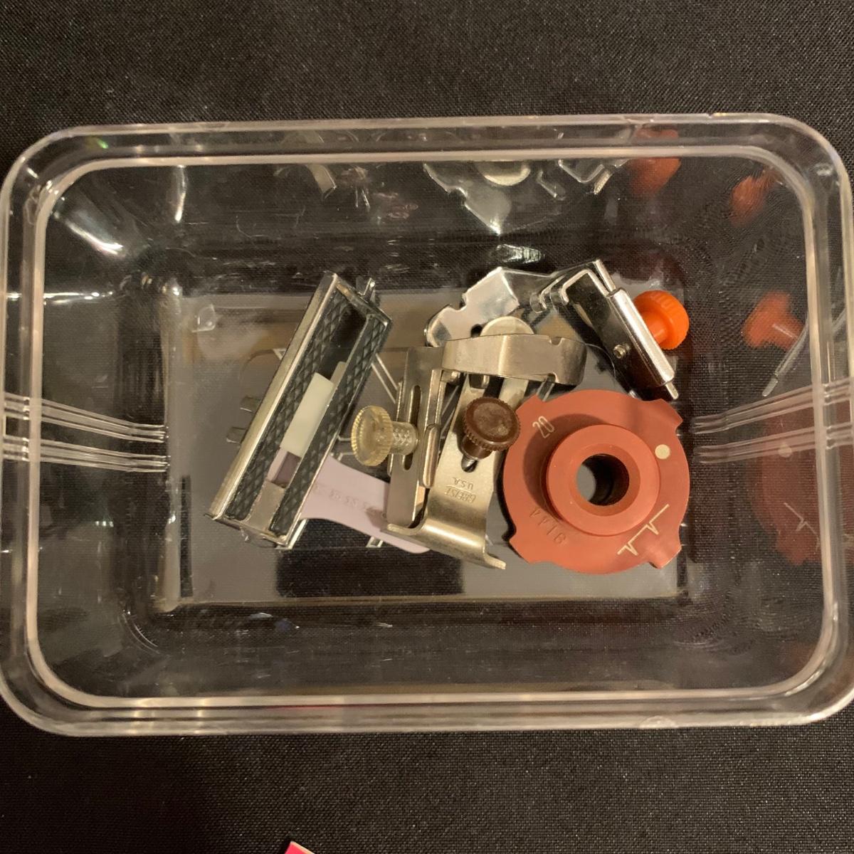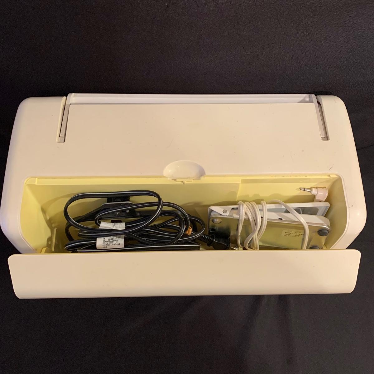 Janome Memory Craft 5000 sewing machine. Machine measures approximately, 18” x 9” x 12.5”H. Lot includes, original manual, power cord, and two small boxes of accessories. Machine powers on, but appears to have some kind of computer issue as the display does not seem to work and the needle does not move. Please see photos for more details.