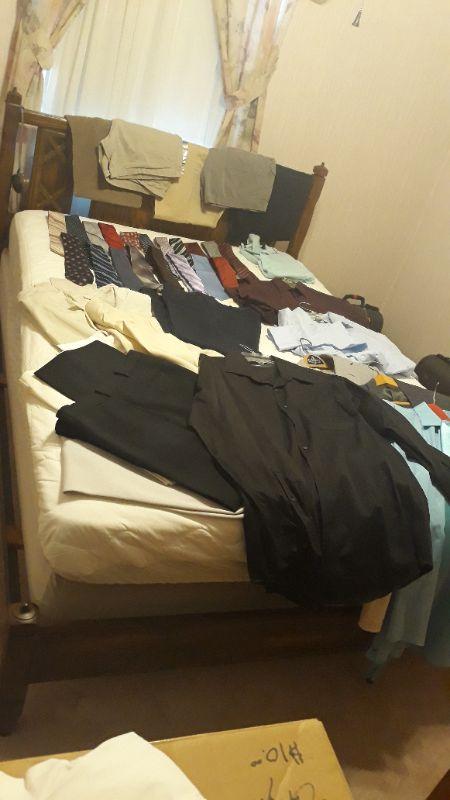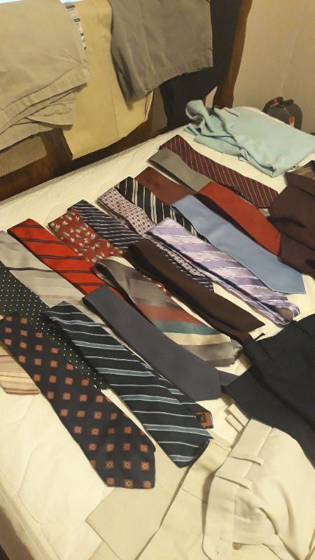 Suit, dress coat, 19 ties, dress shirts, shorts