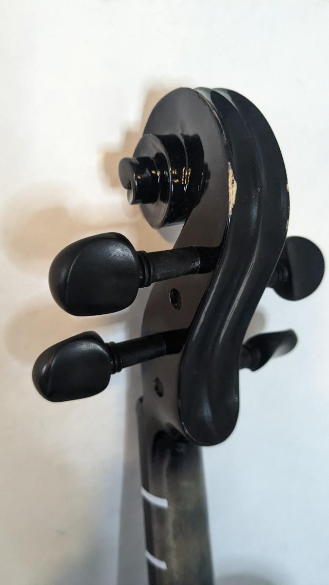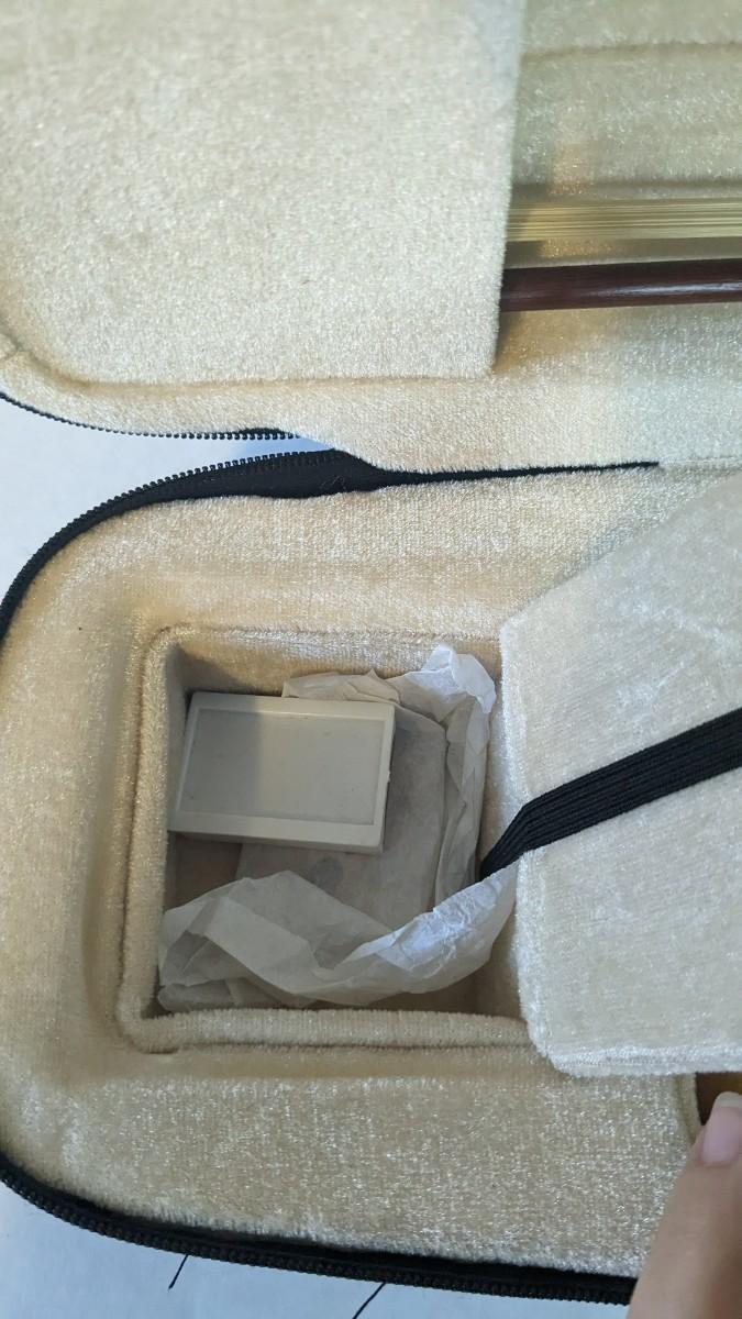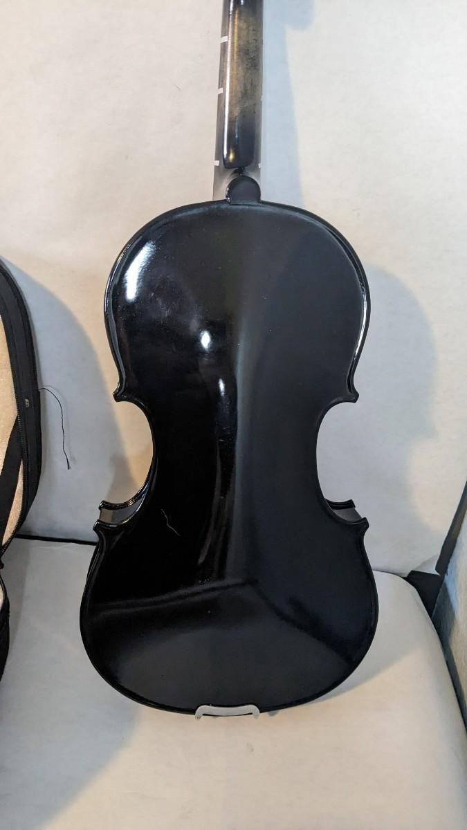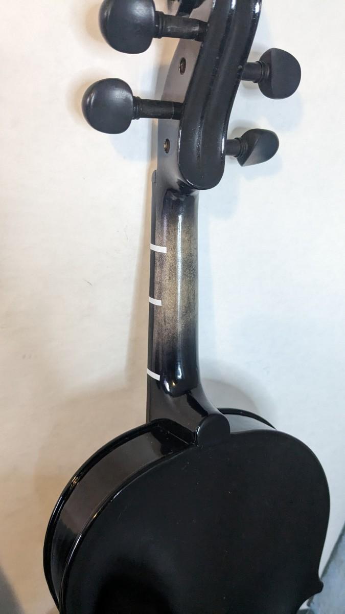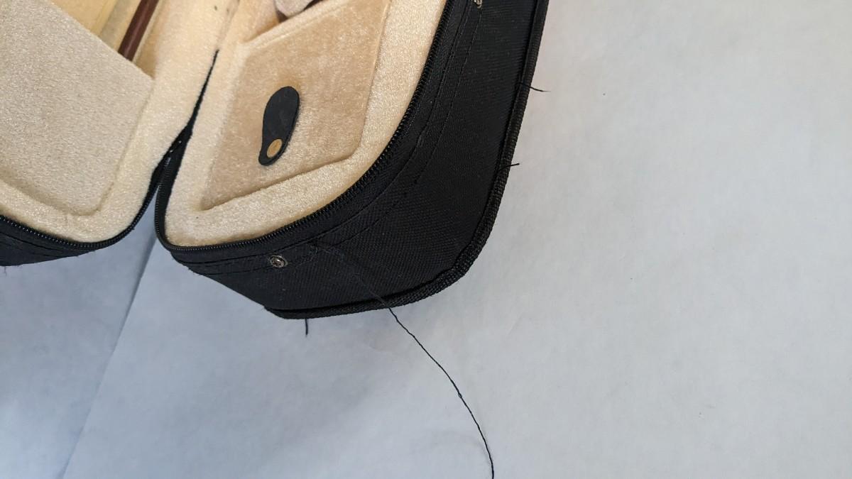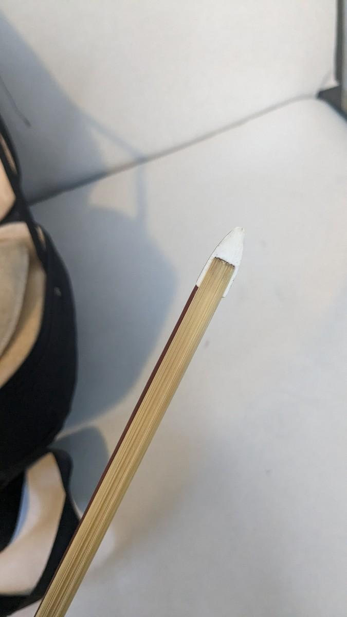 in great condition with minor wear noted on head and neck as seen in photos. Includes bow, case, and extras in zippered pocket. Note minor wear to nylon outside.