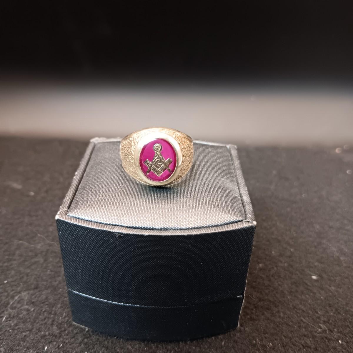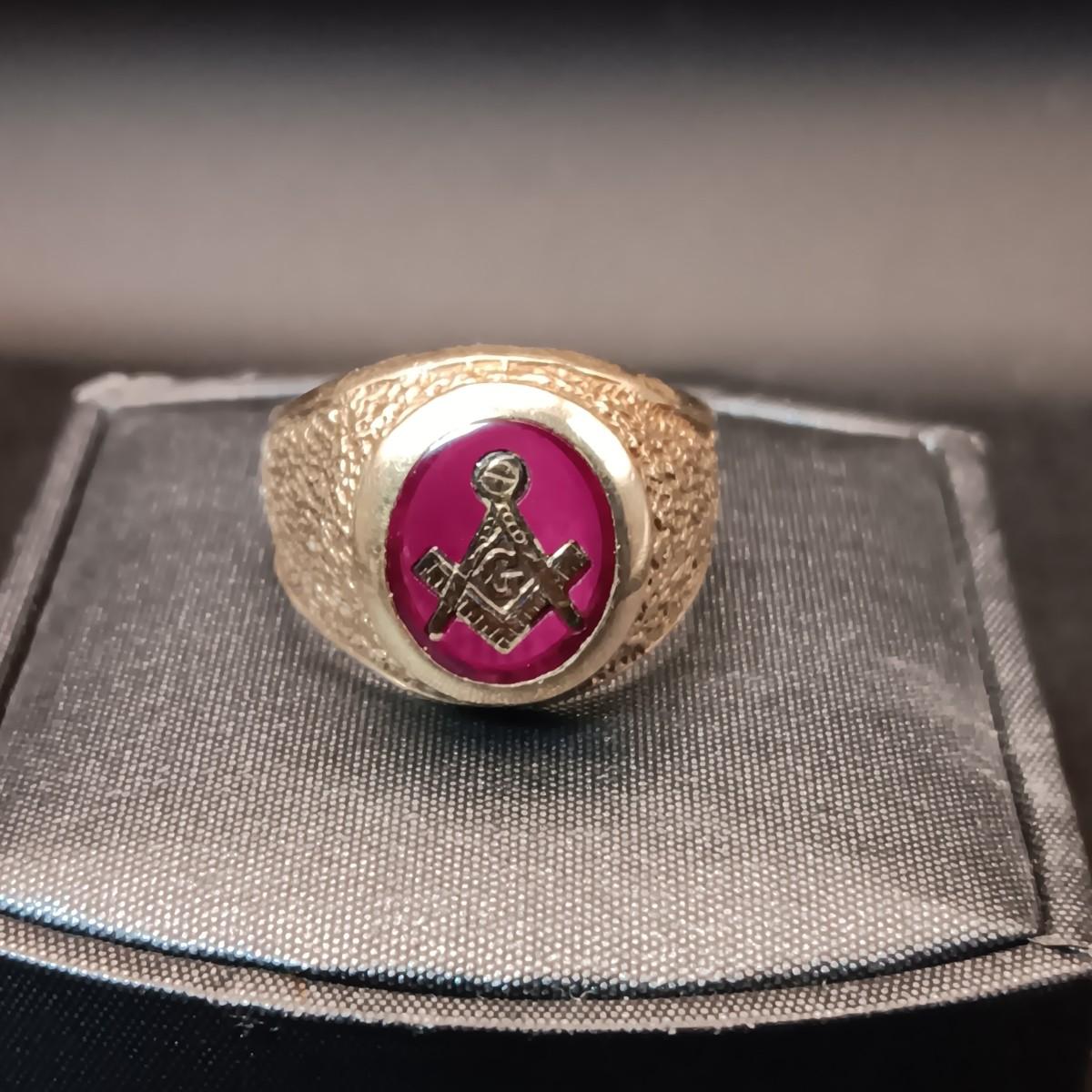 MEN'S 10K GOLD MASONIC RING 8.07g SIZE 8 1/2