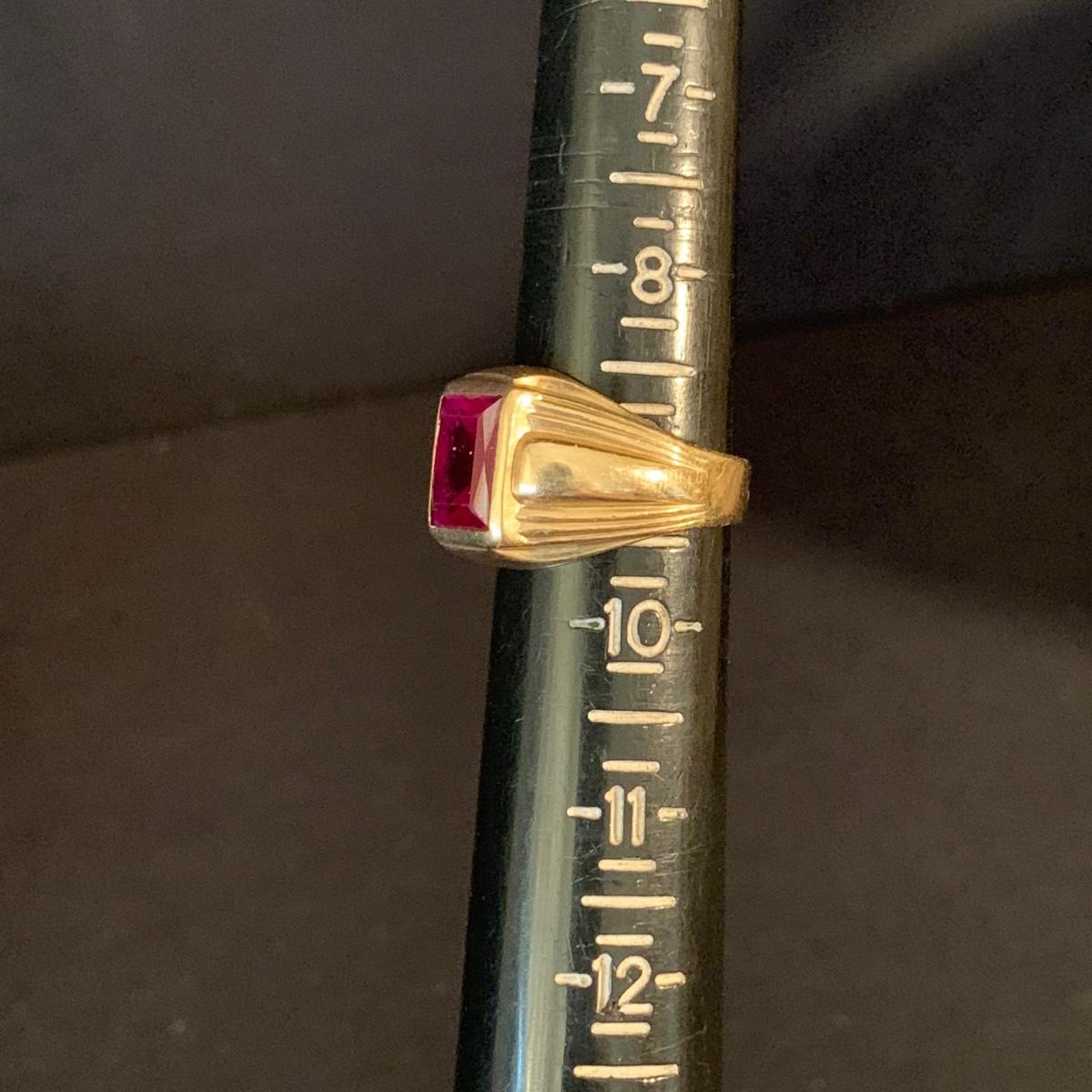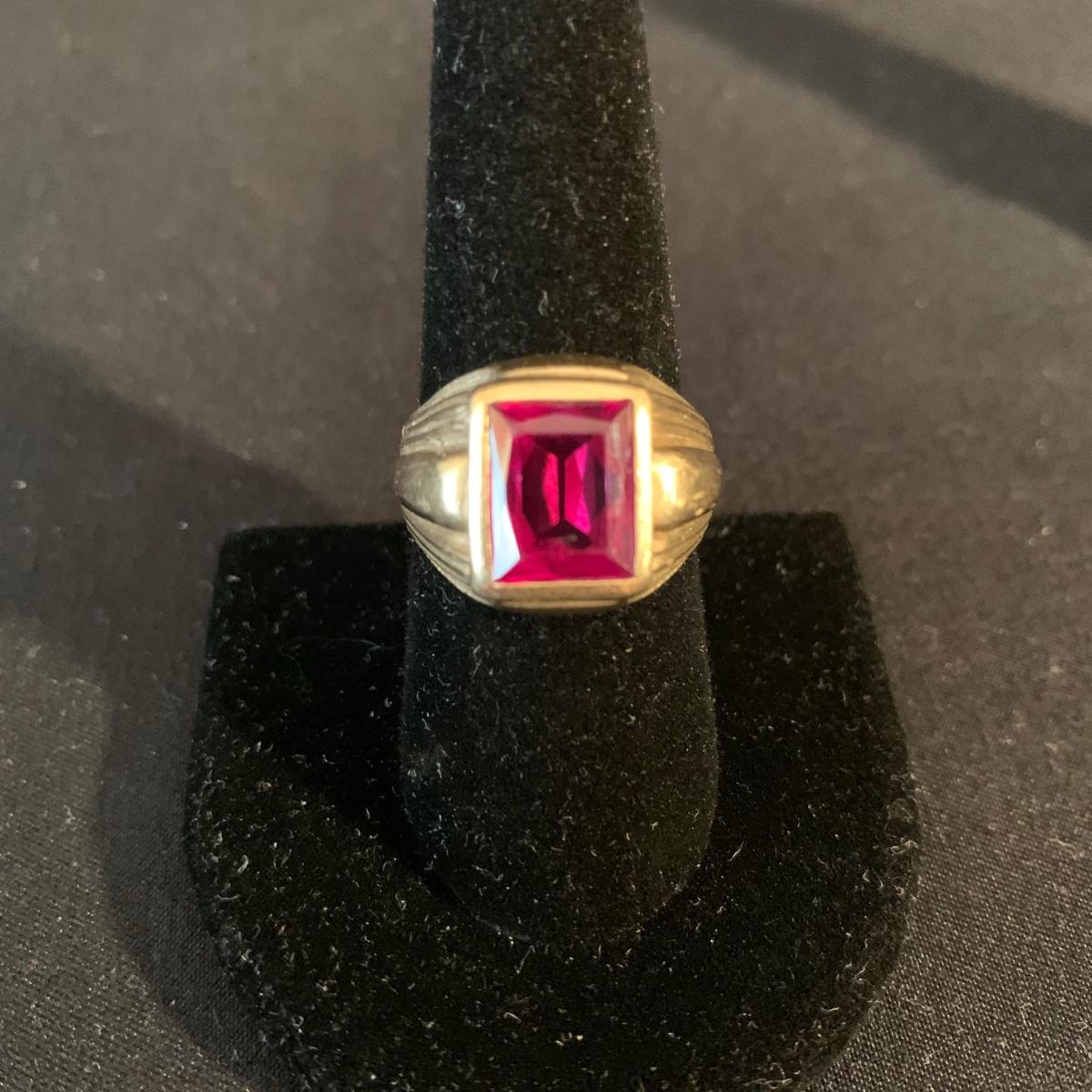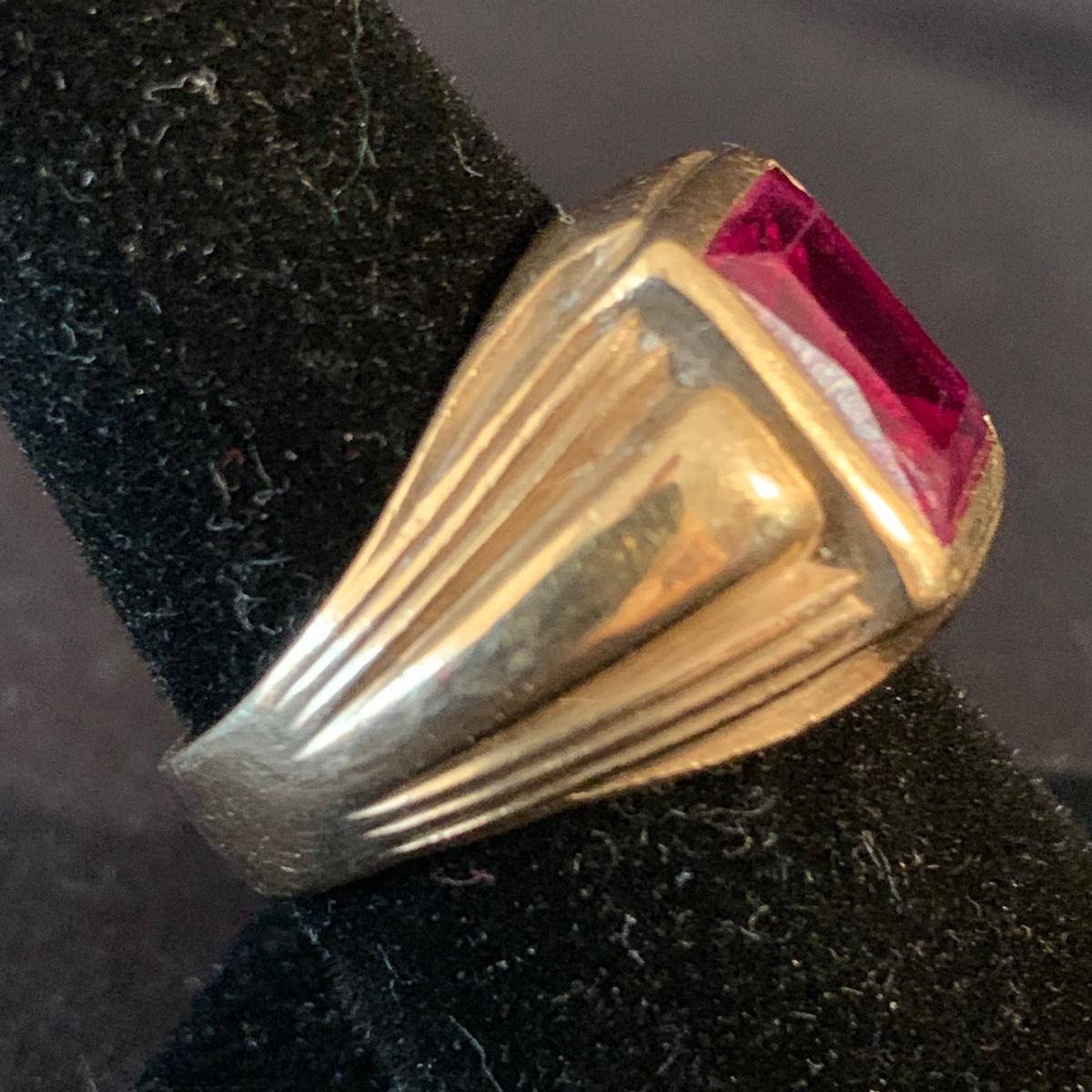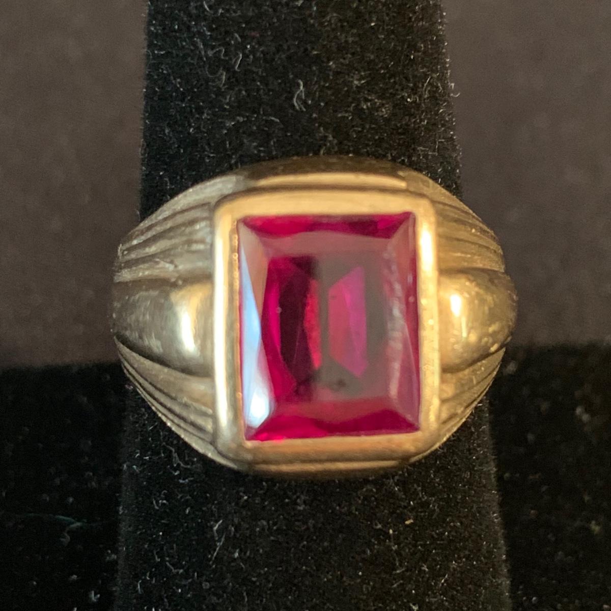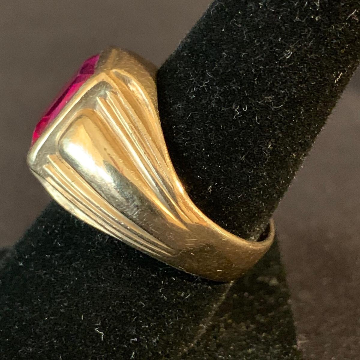 Men’s 10K Gold Ring w/ Red Gemstone & 14K Gold Band (MB-HS)
