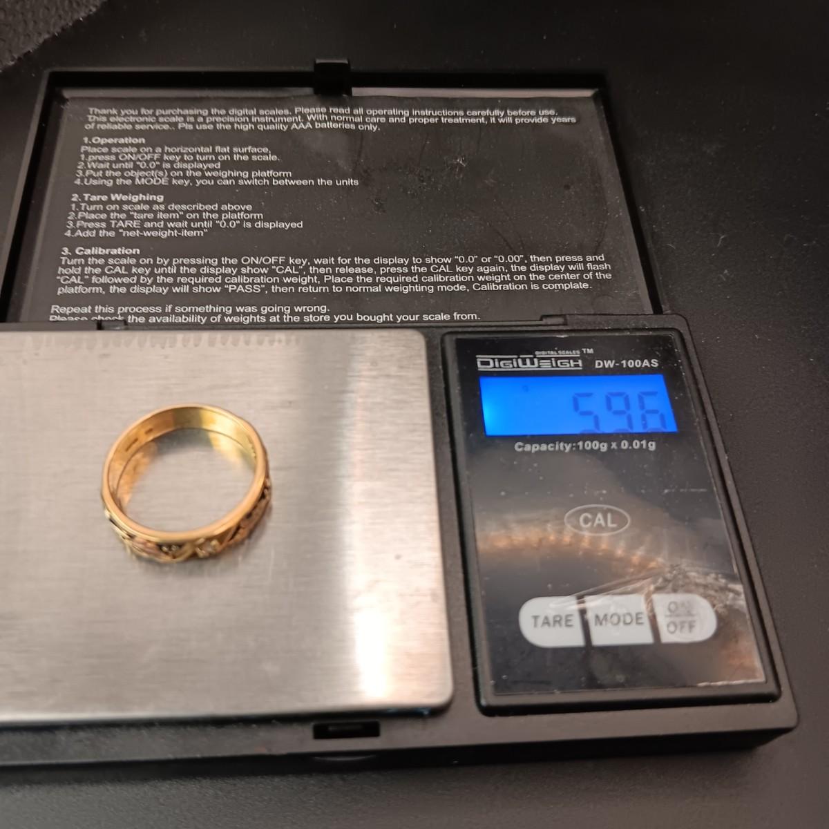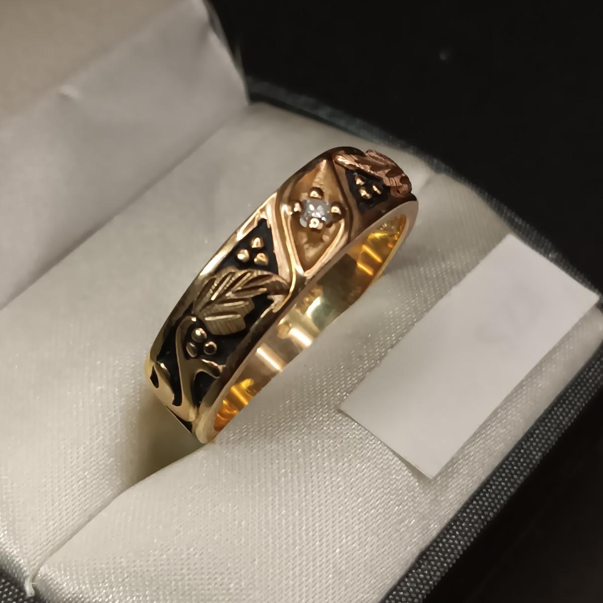 MEN'S 14K GOLD RING WITH A DIAMOND 5.96g SIZE 10 1/2