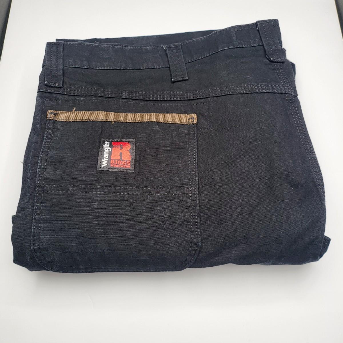 Men's Wrangler work pants. Stored in closet but never been worn. Wrangler work pants with lots of pockets and tool loop.