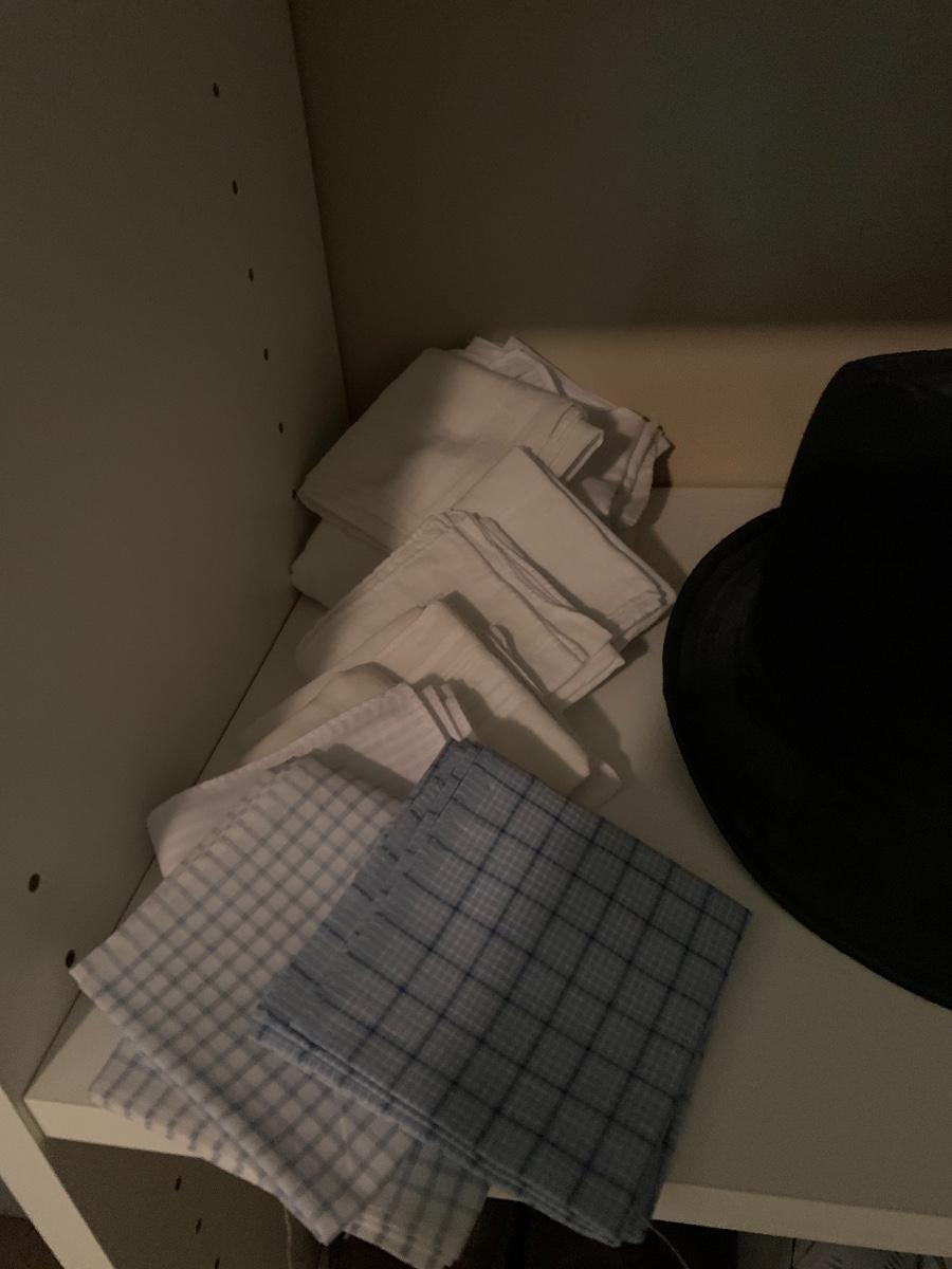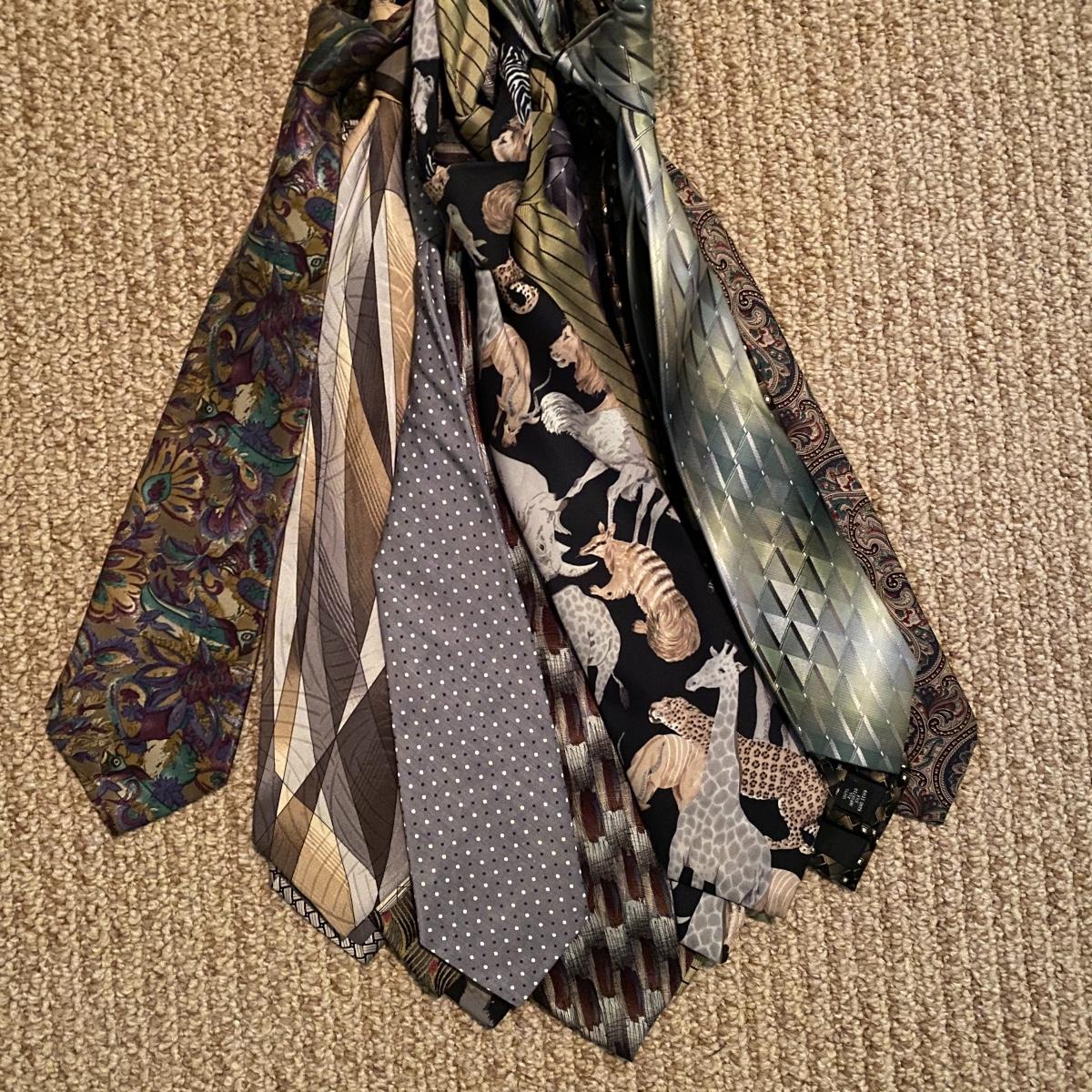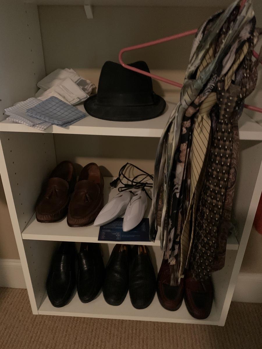 Men’s handkerchiefs, Fedora hat, mostly silk ties and all leather upper shoes (size 9.5) and Dr. Dry electric shoe dryers. shipping available.