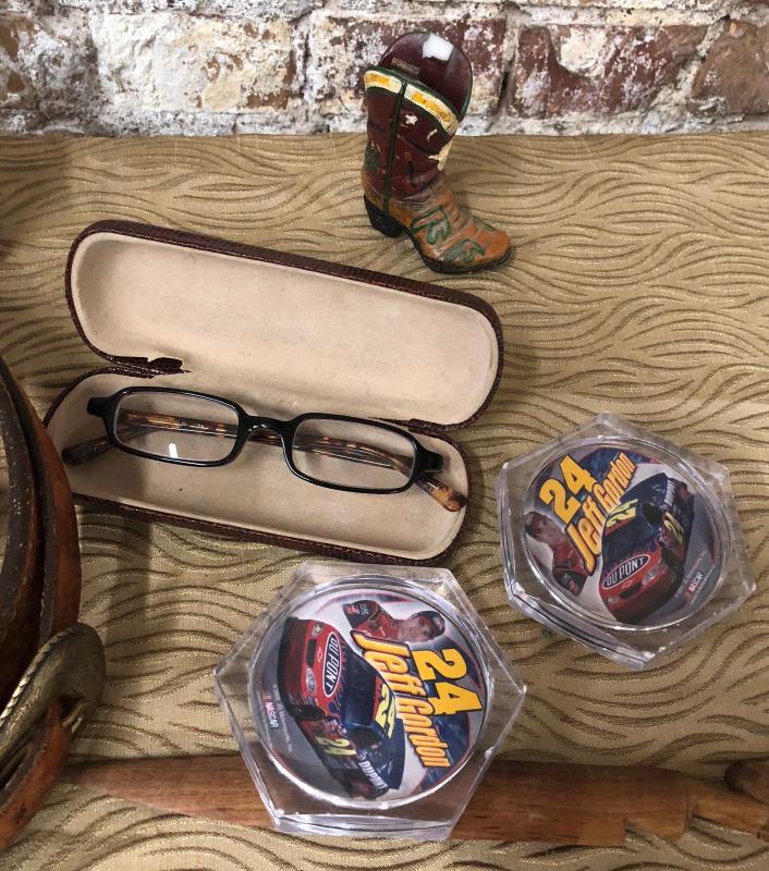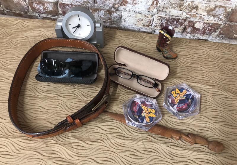 Here is a lot of male accessories..glasses..western belt...clock..NASCAR...
