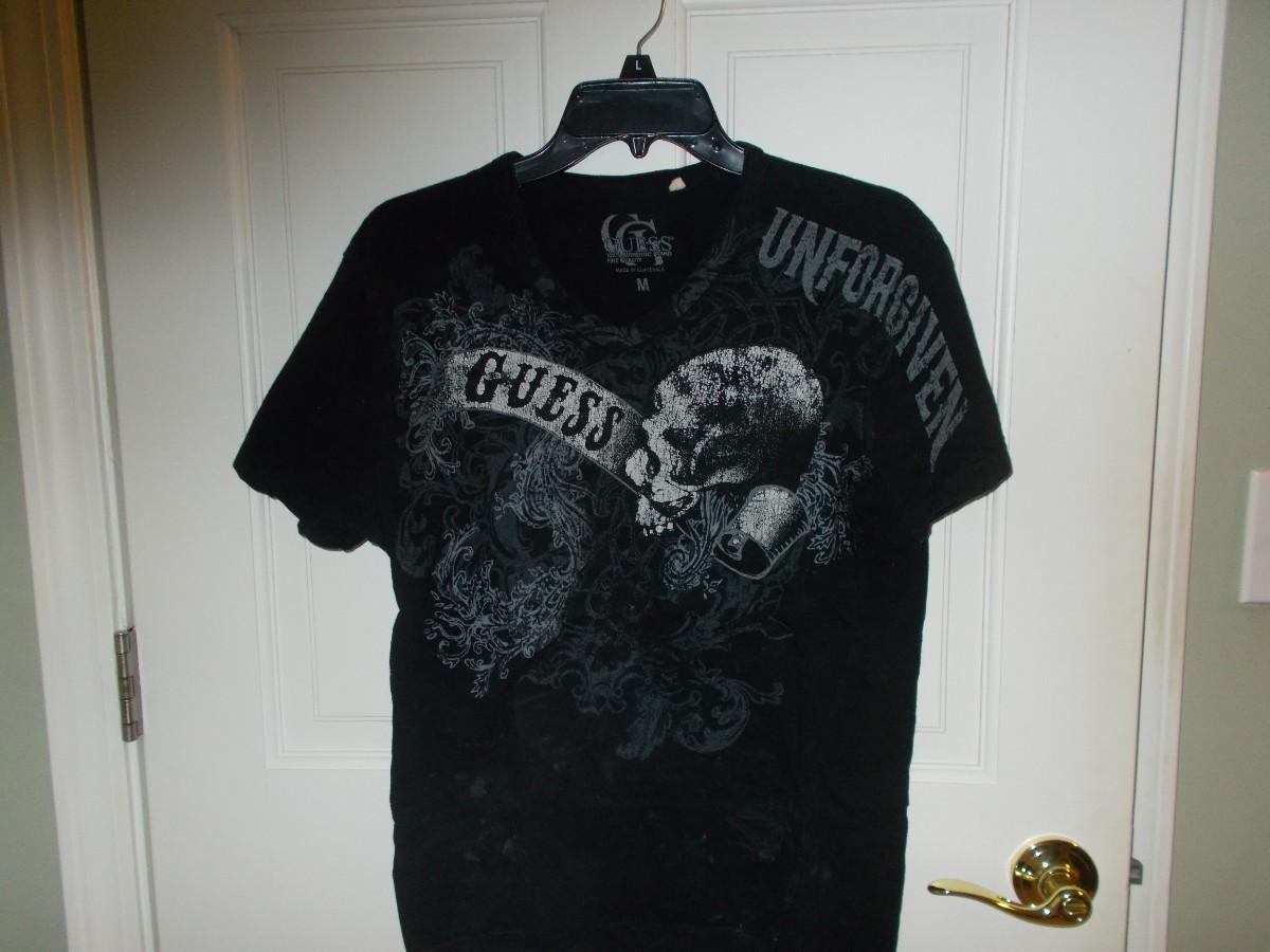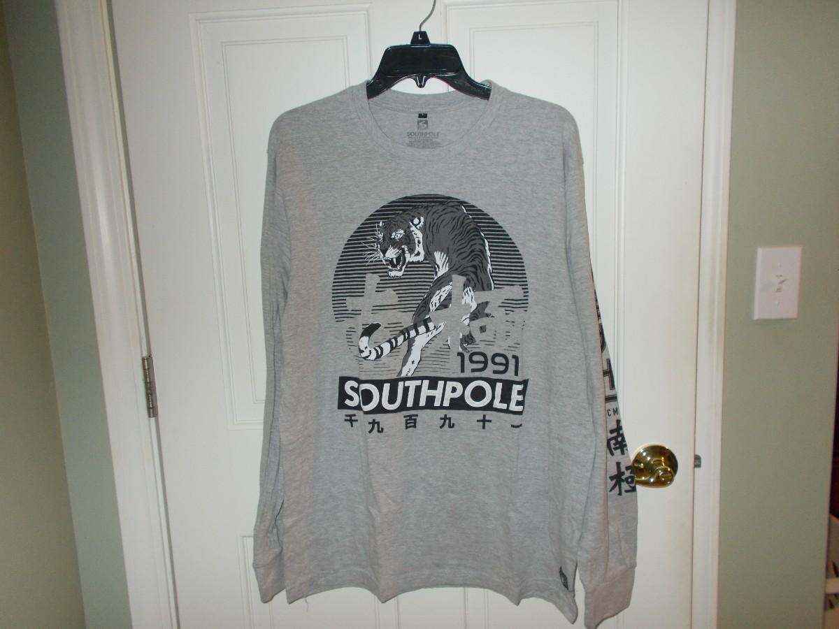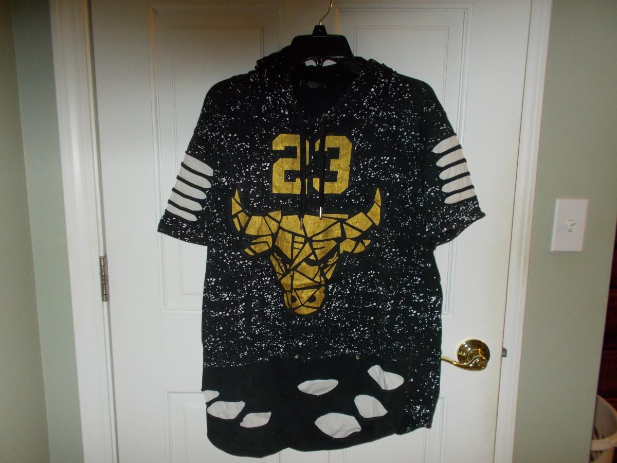The New York Knicks jacket is a size medium, the Guess T-shirt is size medium, the Southpole T-Shirt is size large, and the Bulls short sleeve hoodie is a size medium. They are all in excellent used condition.