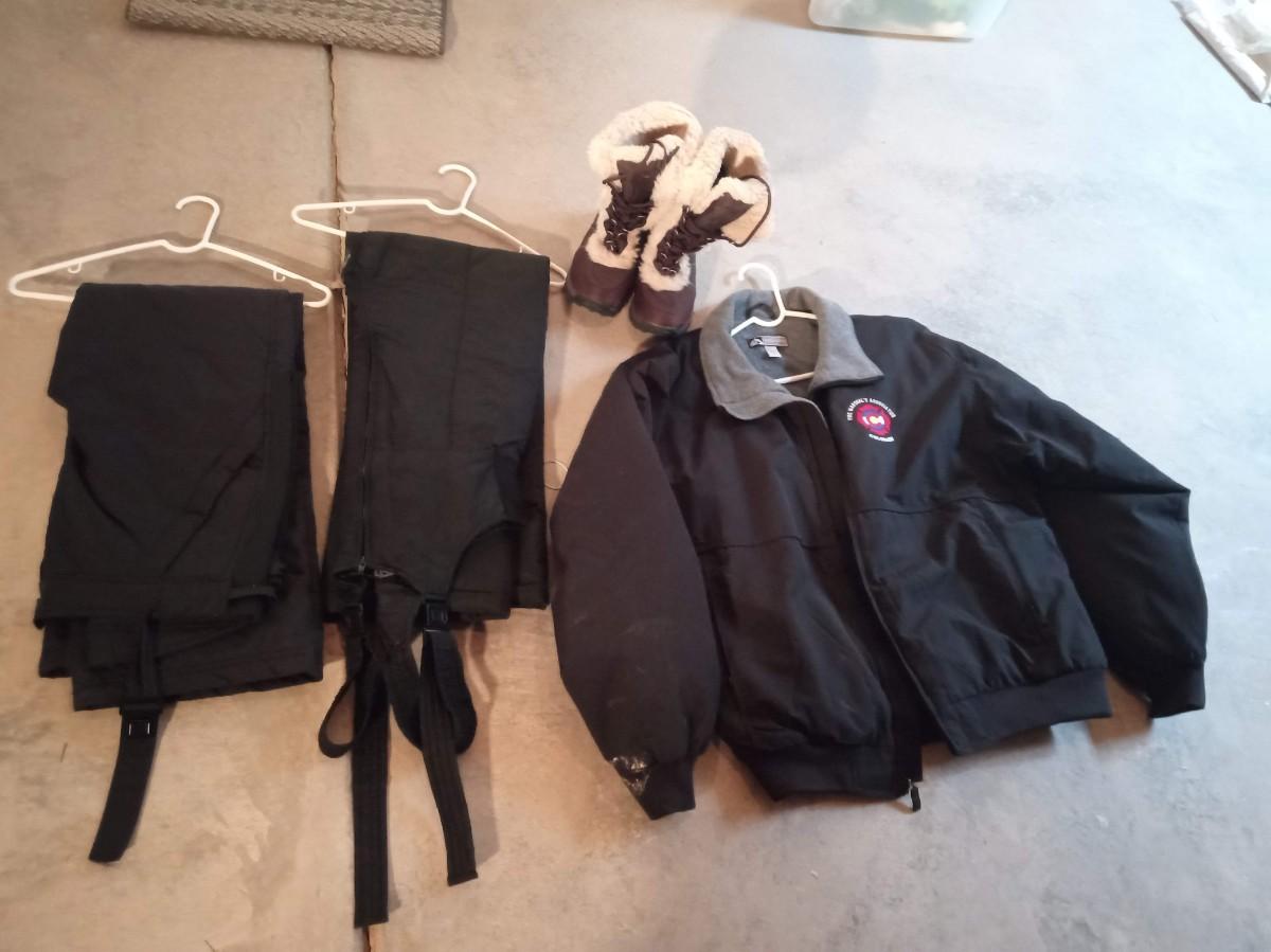 LADIES BIB SNOW PANTS MEDIUM, MEN'S SNOW PANTS LARGE,