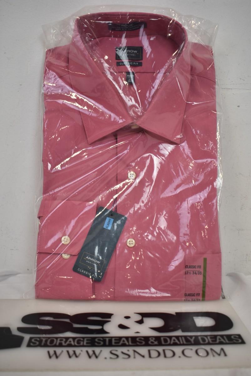 Mens Arrow Dress Shirt: Size 17 1/2, 34/35, Classic Fit, Guava Color - New