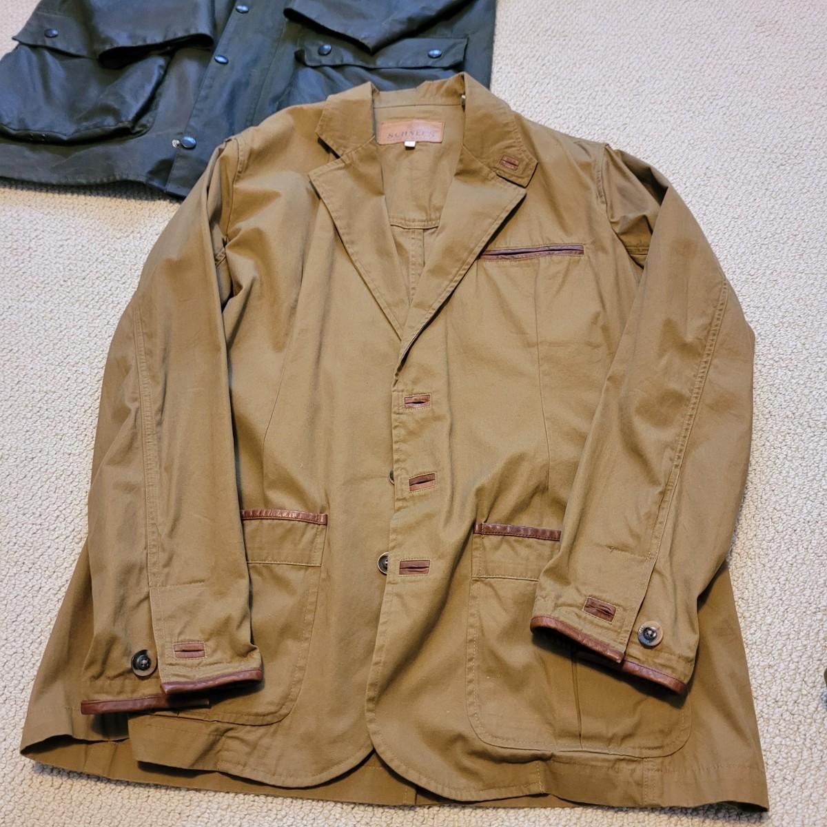 This lot of three men"™s jackets includes a waxed coating Barbour jacket, Schnee"™s size L barn jacket and YMC London size L cotton jacket. See photos for details. Shipping available.