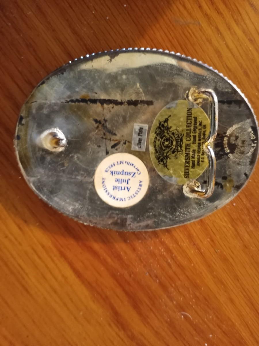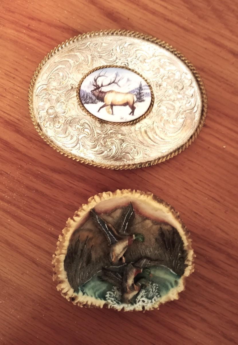 MENS SILVER SMITH COLLECTION BELT BUCKLE BY JULIE ZSUPNIK AND WOODEN GEESE BUCKLE