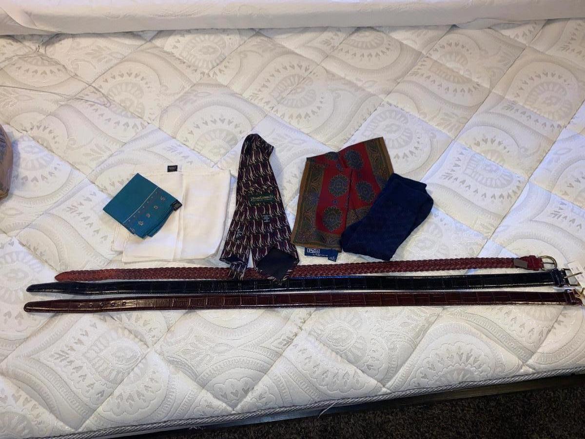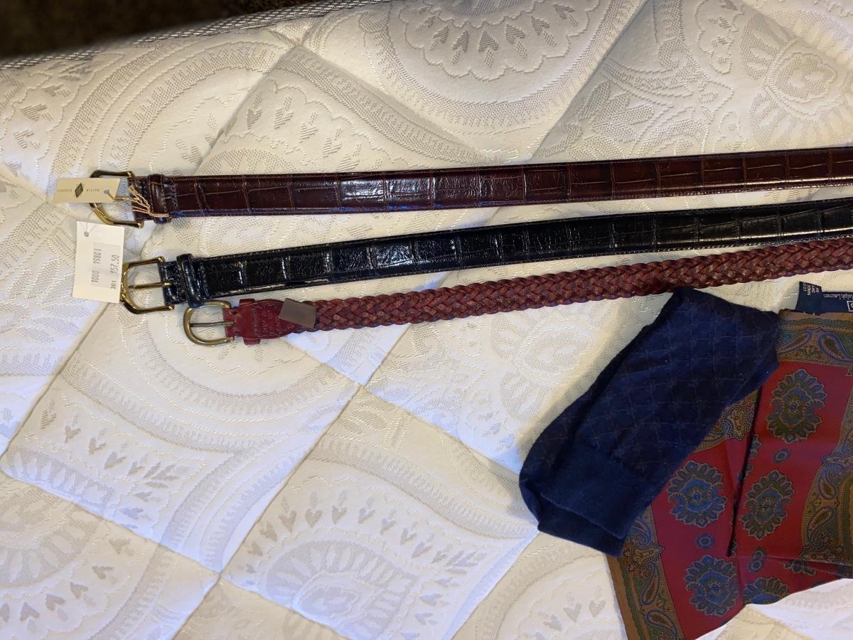 MEN’S LEATHER BELTS, TIE, SOCKS, AND HANDKERCHIEFS