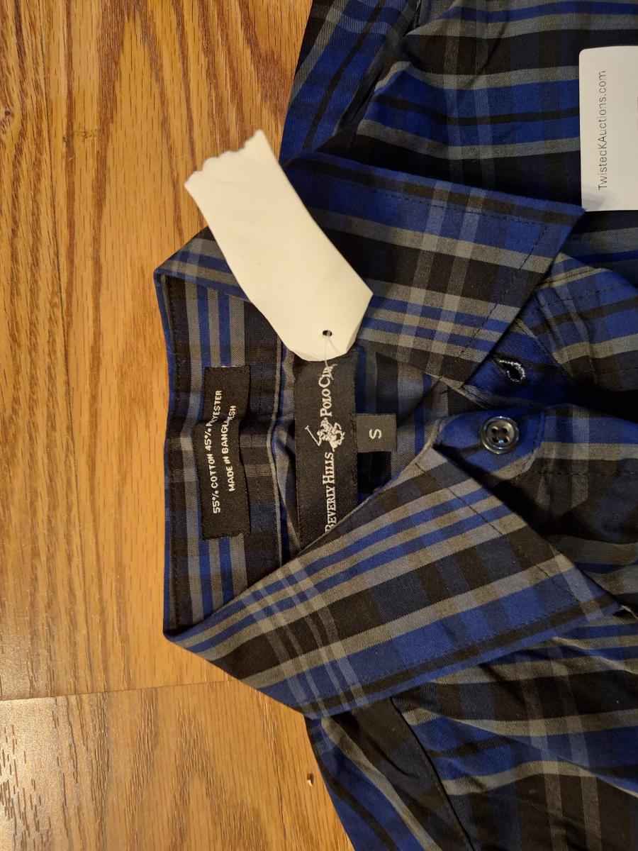Mens Beverly Hills Polo club long sleeve blue plaid shirt size S