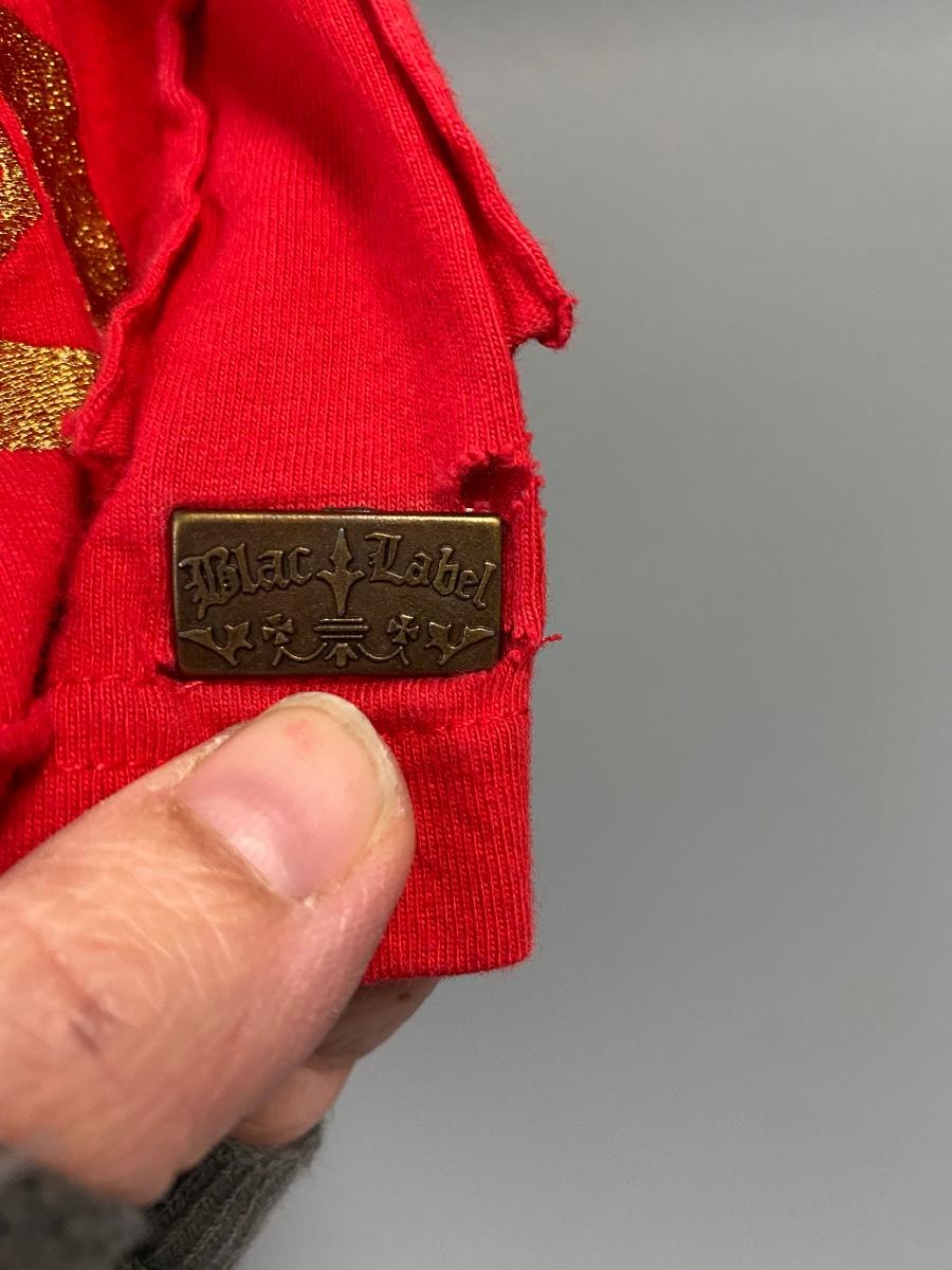 Men's Blac Label graphic t shirt. Red with gold. No size tag, probably a medium based on other clothing from estate. Good condition.