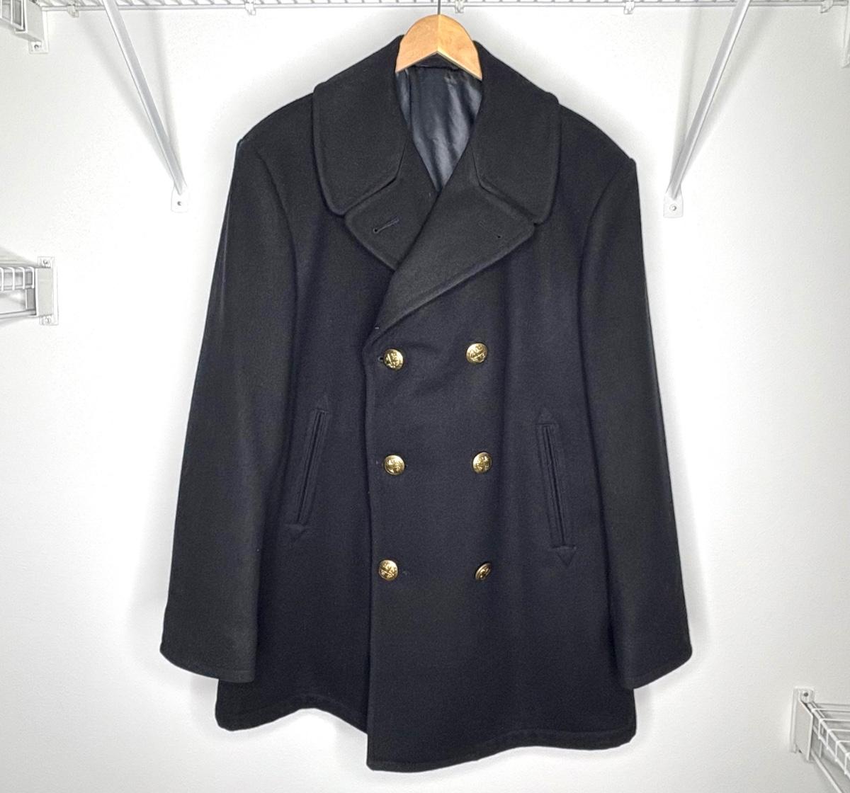 Men’s Vintage Black Wool Peacoat - Size Large