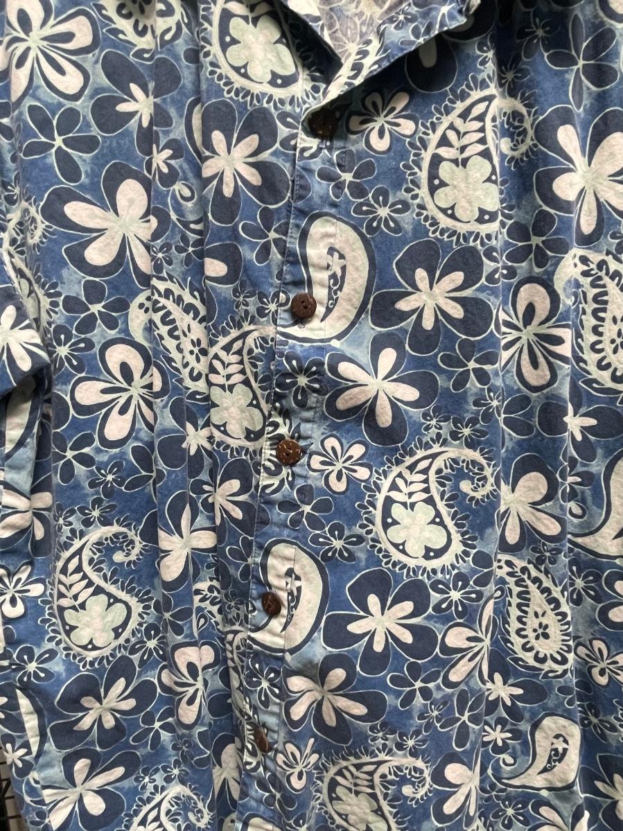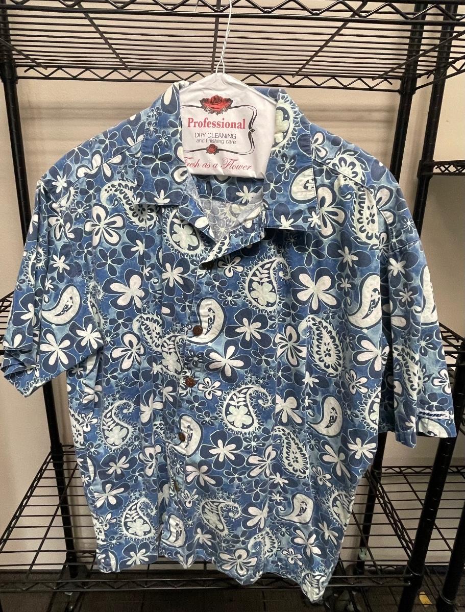 Men’s Blue and White Hawaiian Paisley Button Up Shirt