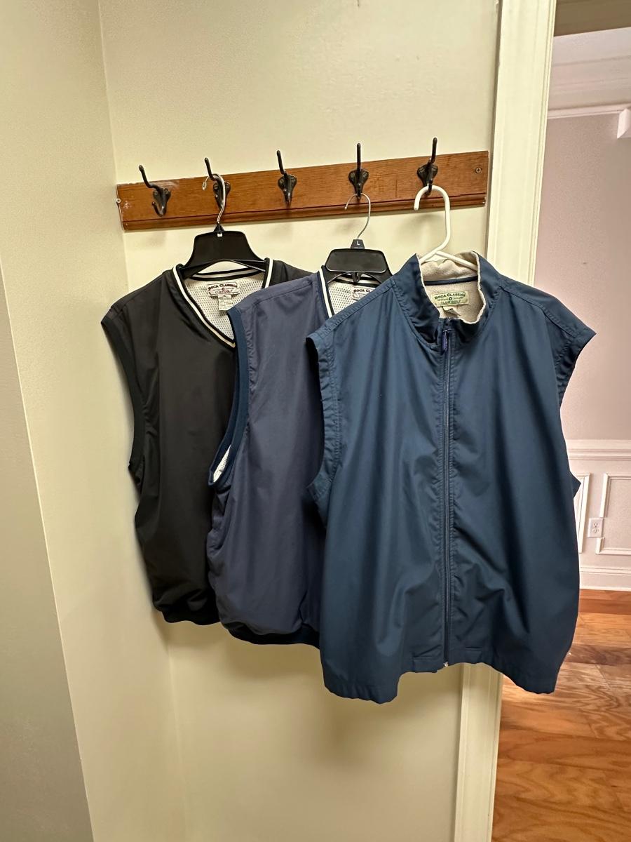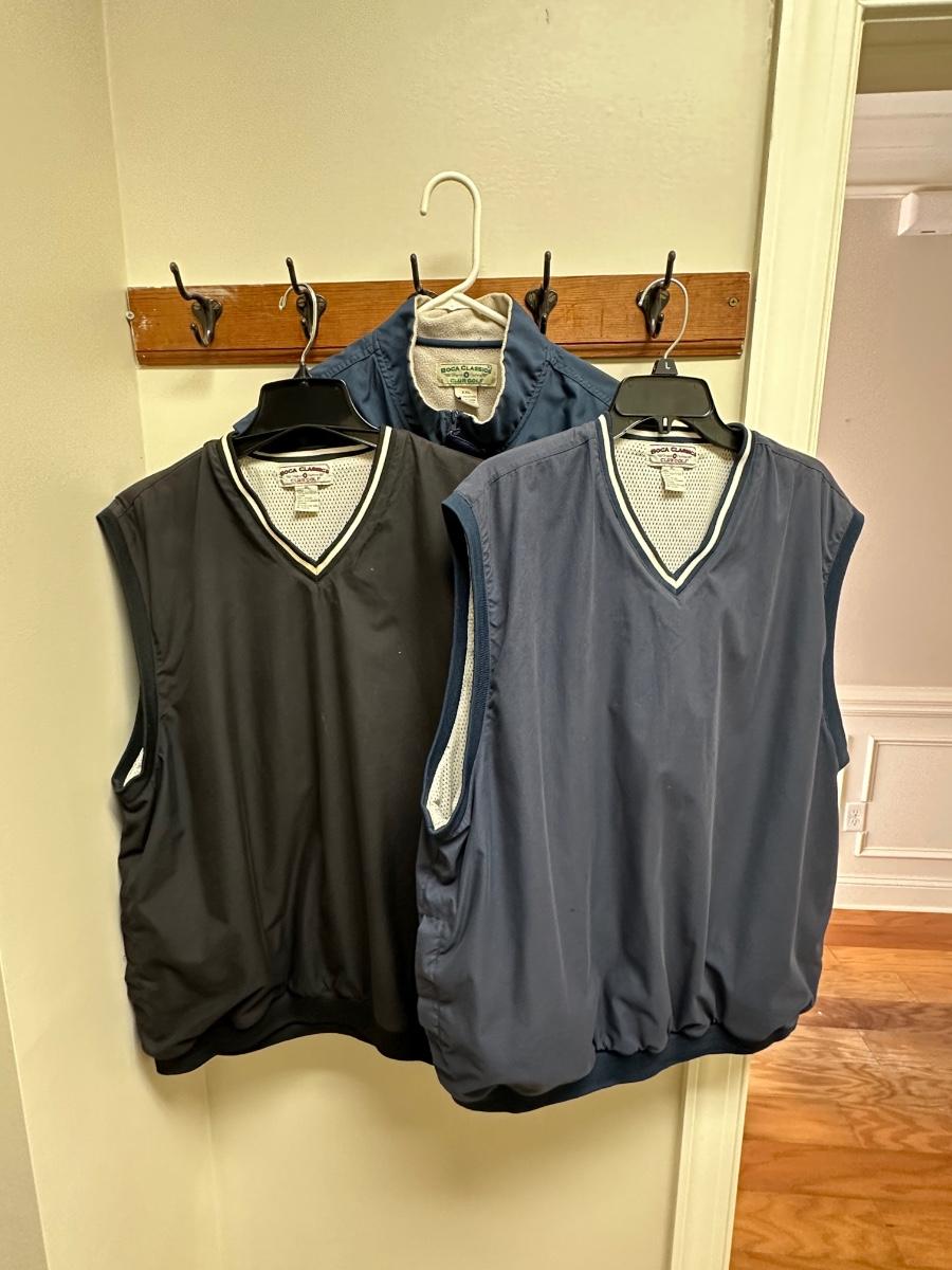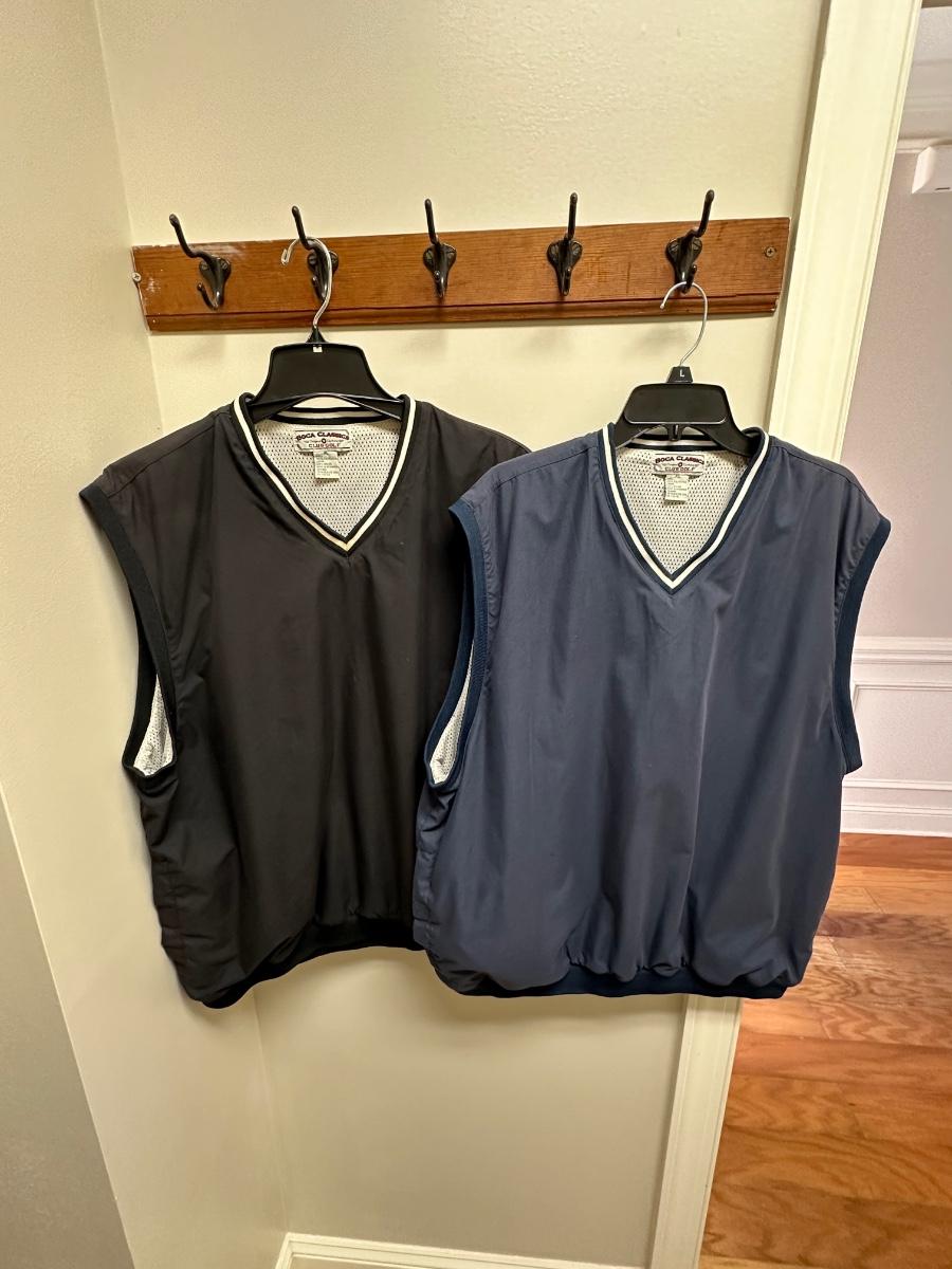 Classic vests for the course! The V necks do have slight discoloration (pictured) XL & XXL