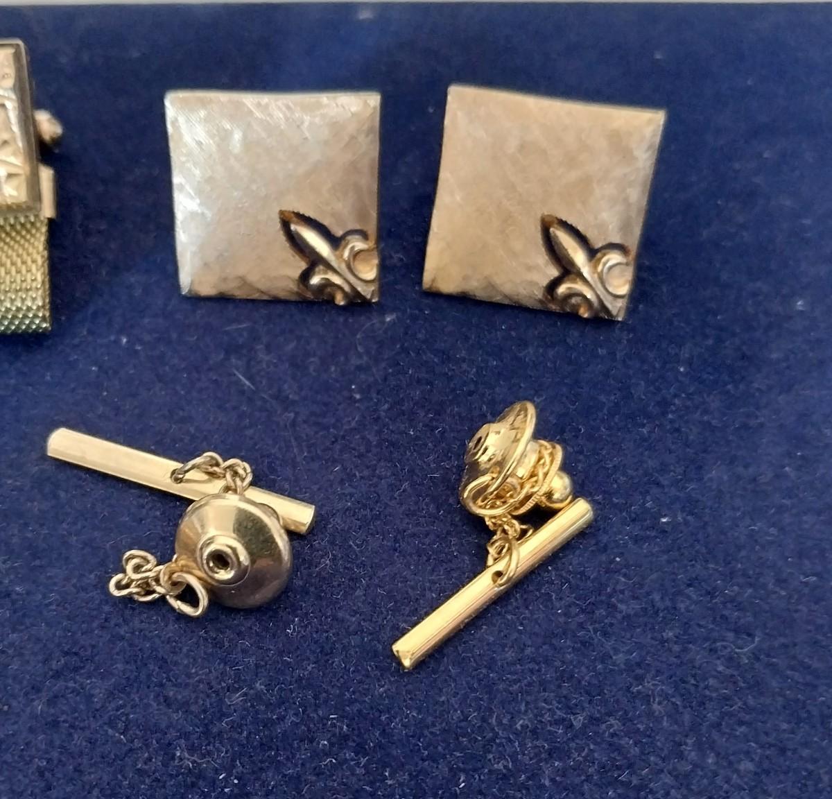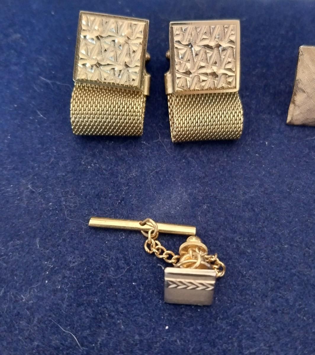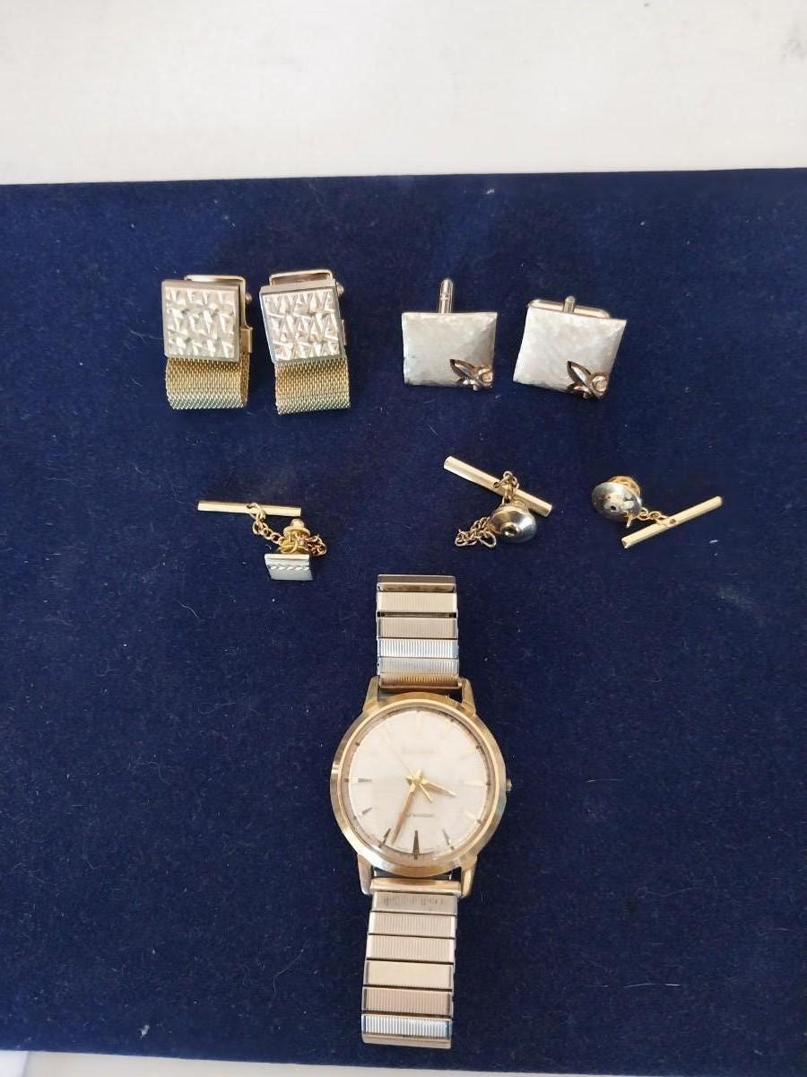 MENS BULOVA SELF WINDING WATCH AND CUFFLINGS-TIE TACKS
