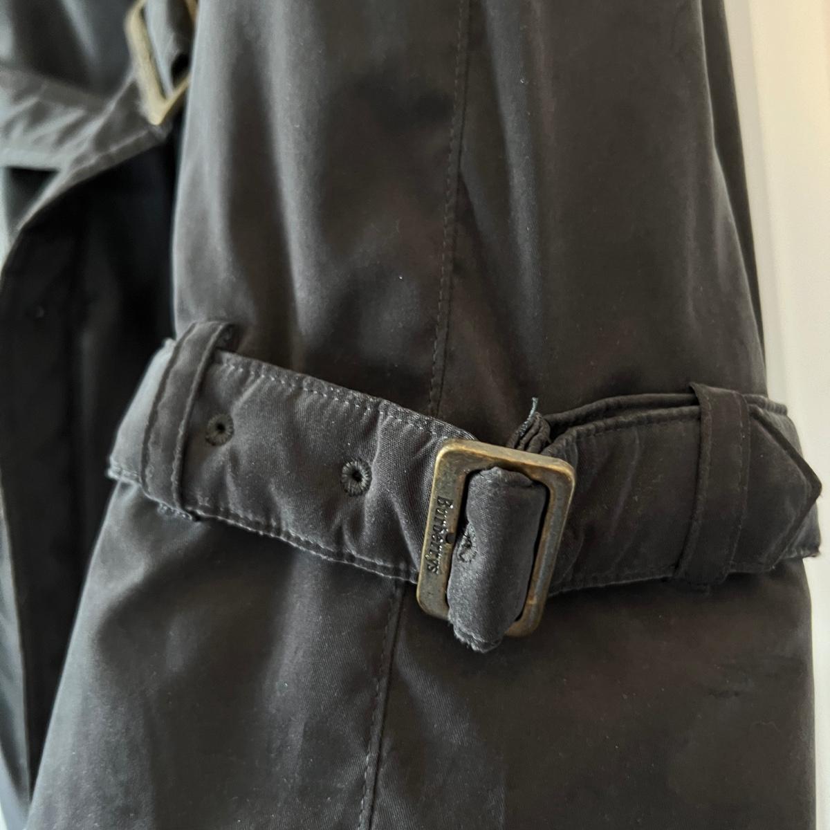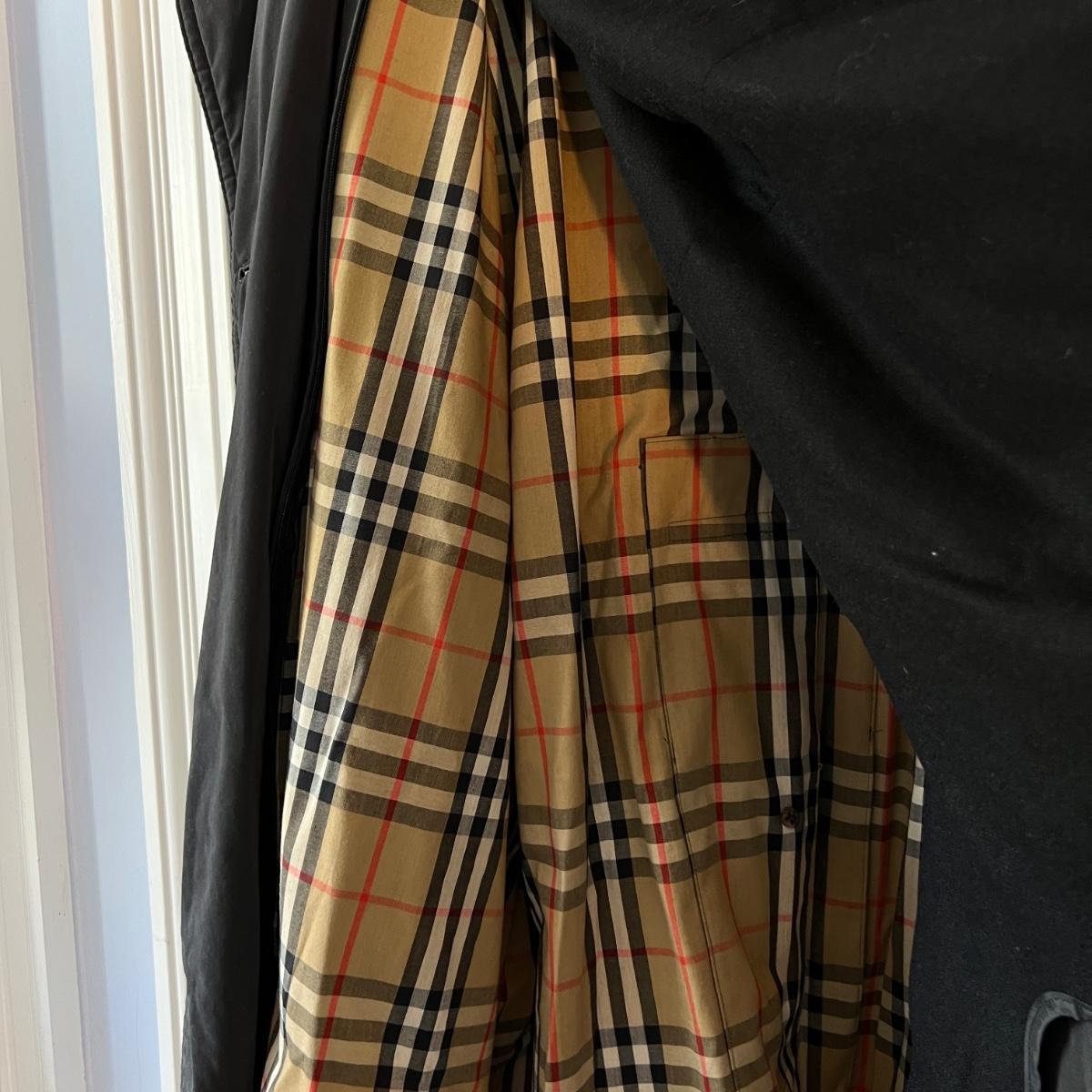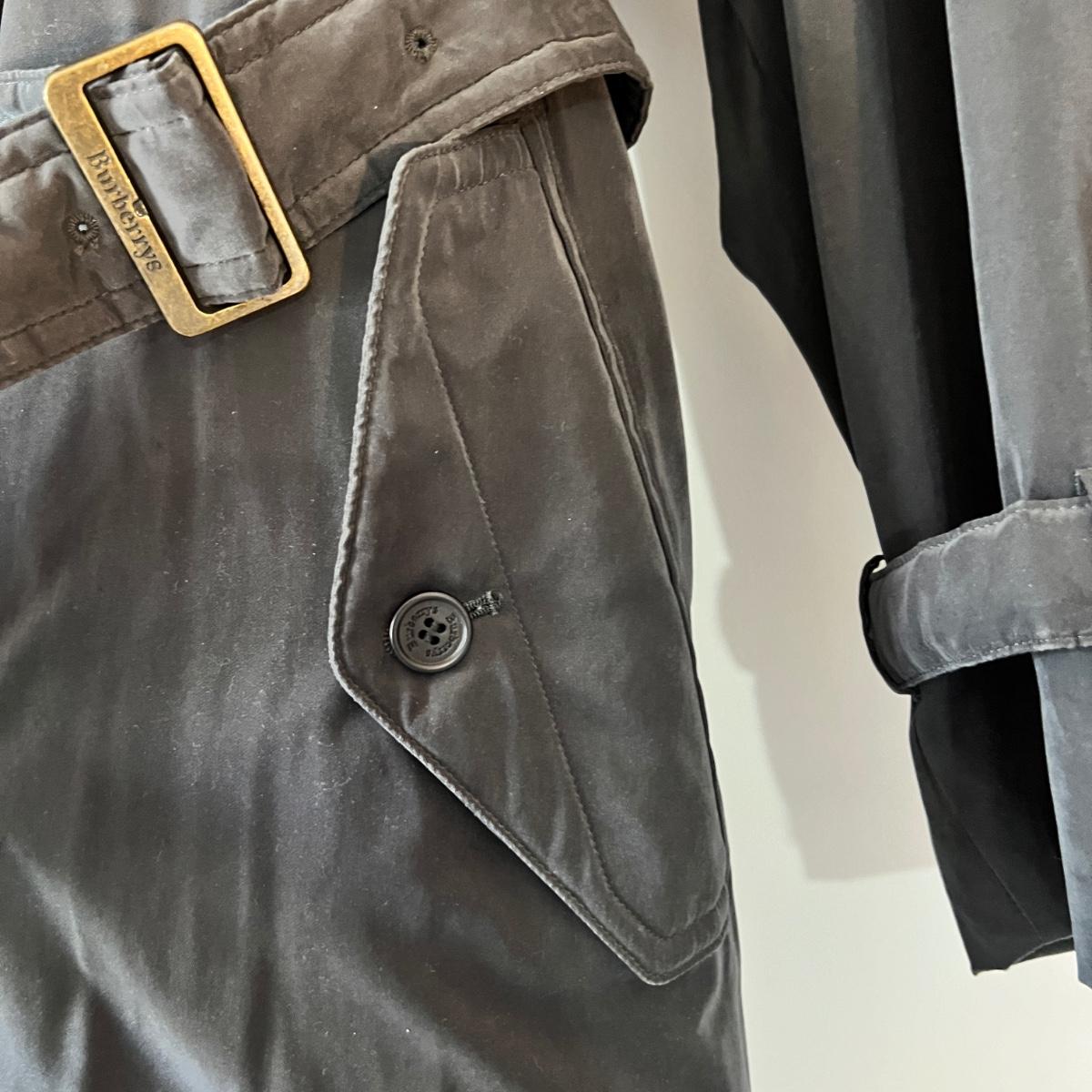 The iconic Burberry trench coat, Double-breasted button closure, Epaulettes, Belt, Side button pockets, Belted cuffs, Inside is Burberry Check cotton and has a warm zip out lining. In good used condition. Retails over $2k. This coat was just “re-proofed” (re water proofed) and properly cleaned by Burberry, a service they offer.