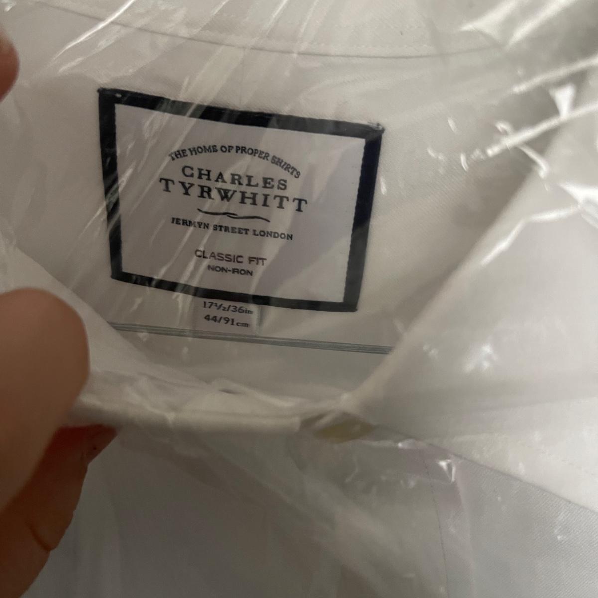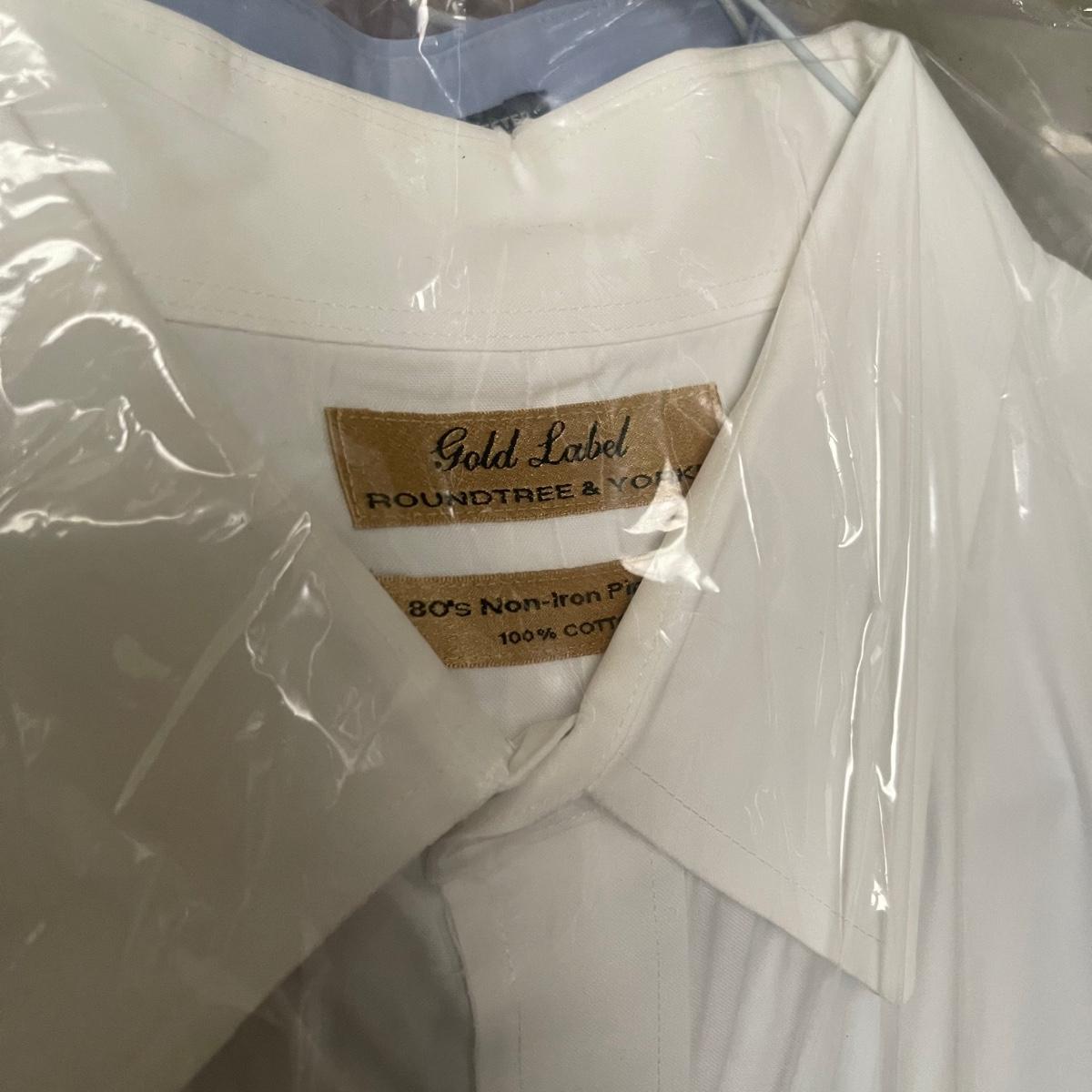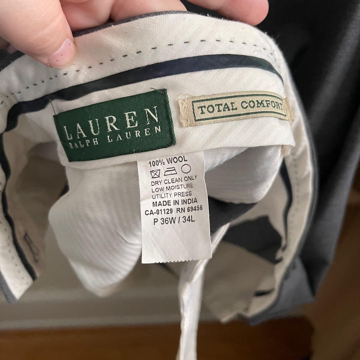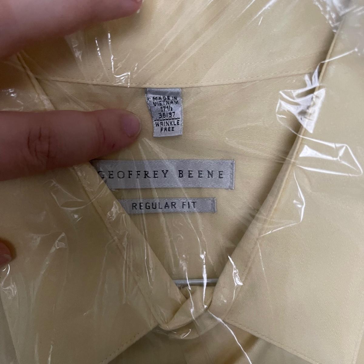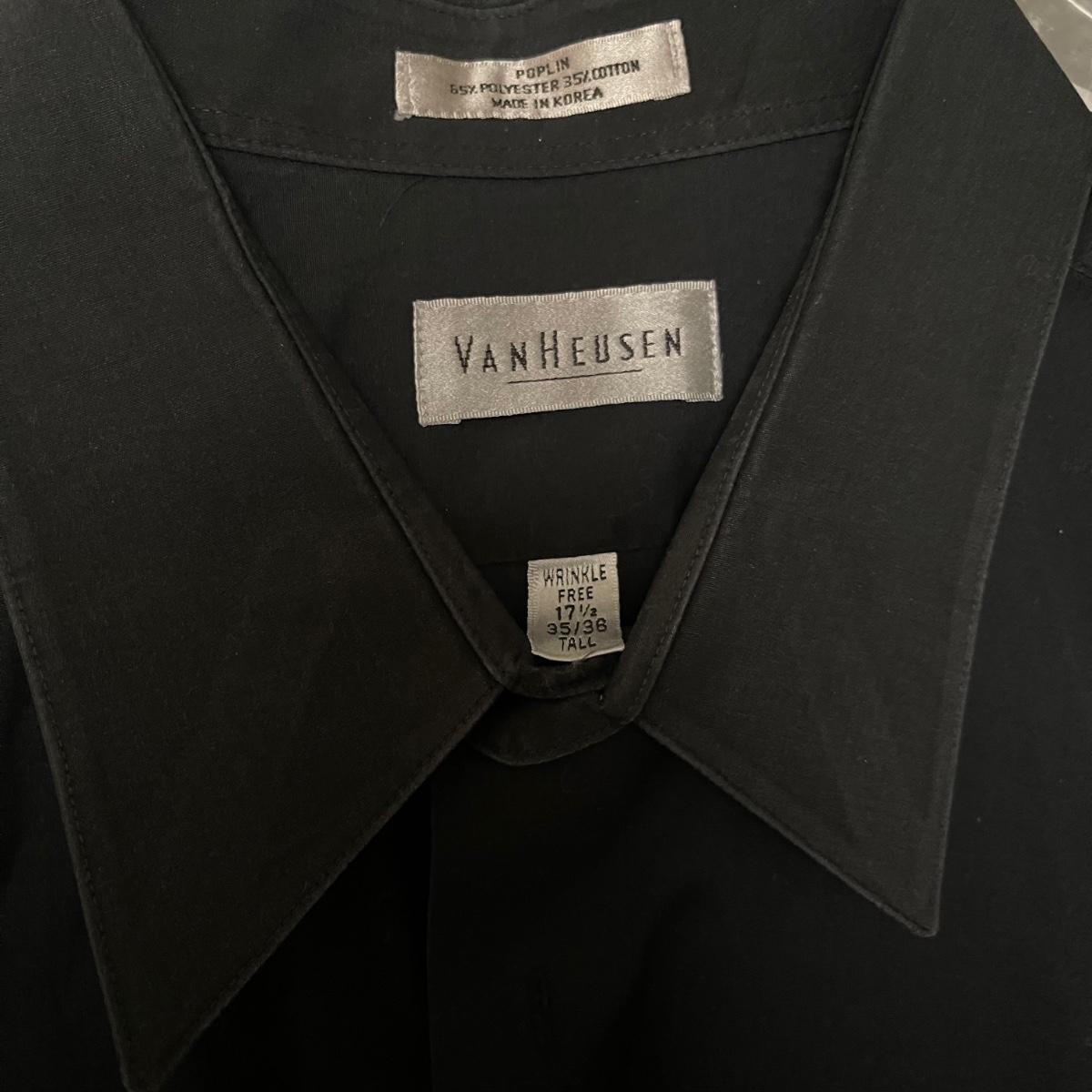 Collection of men’s button-down shirts and slacks of different brands. There are twelve shirts and four pairs of pants. Shirt sizes include XL and 17 - 17.5. All four pairs of pants are 36 x 34.