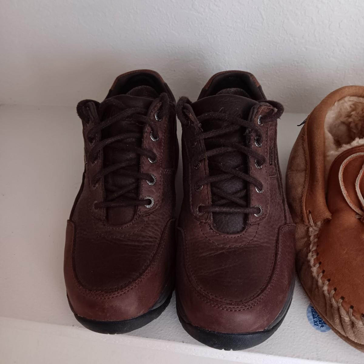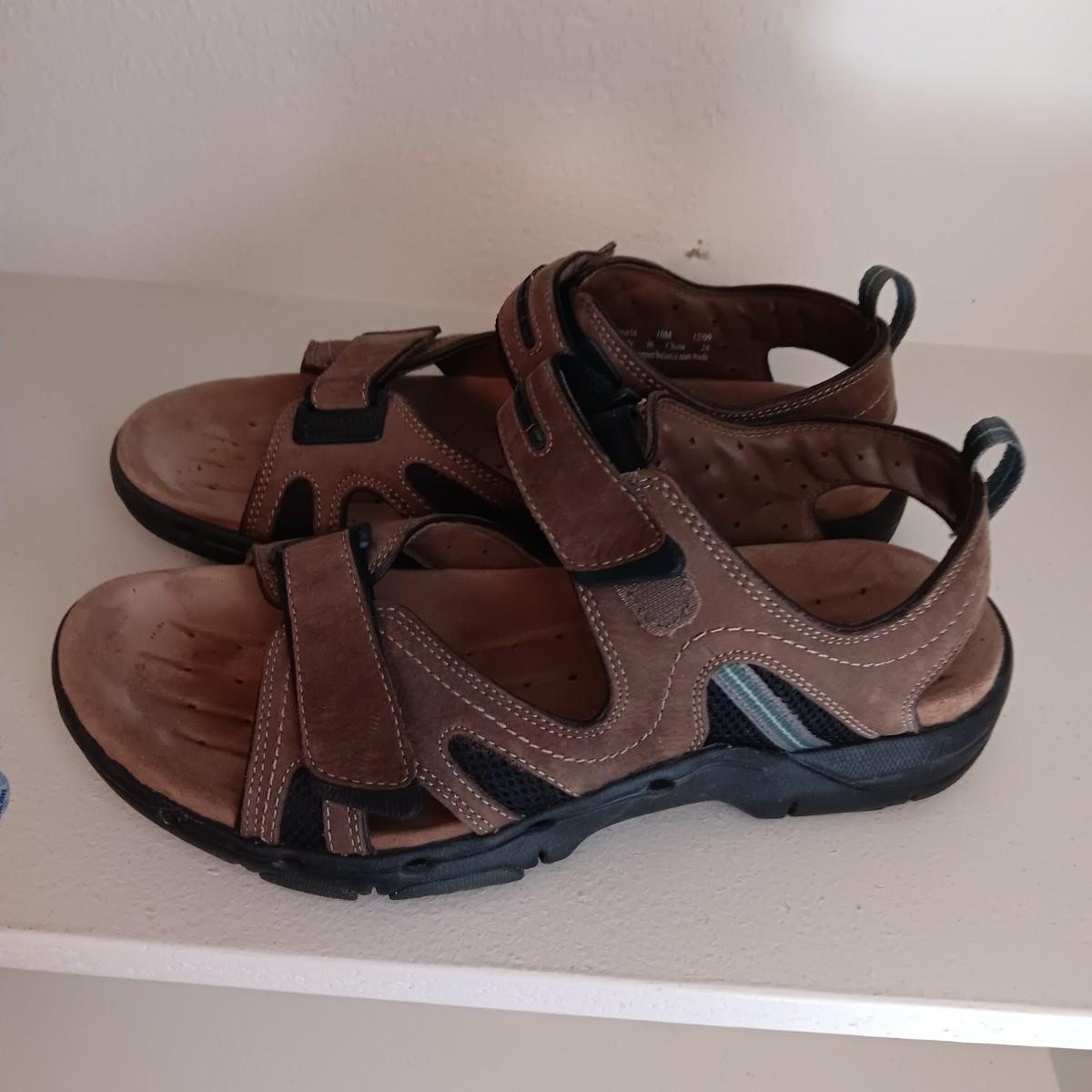 MEN'S CABELA SHOES, LEATHER SLIPPERS AND CLARKS SANDALS SIZE 10