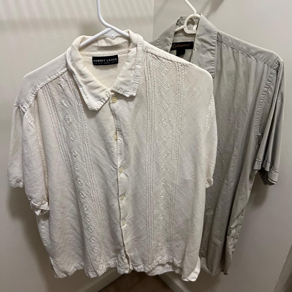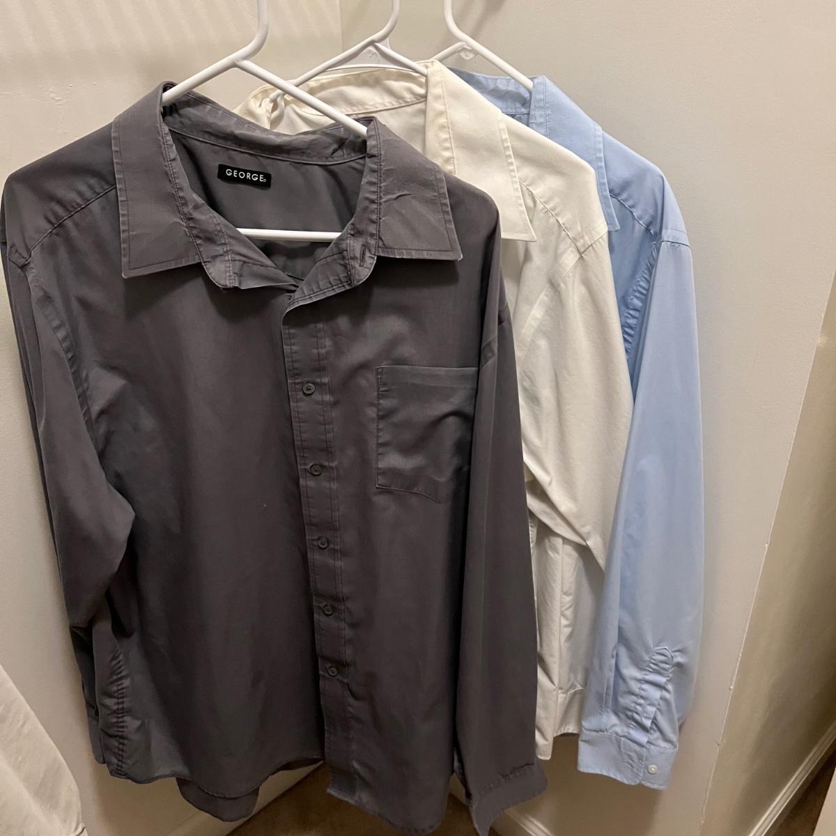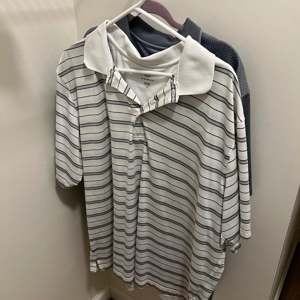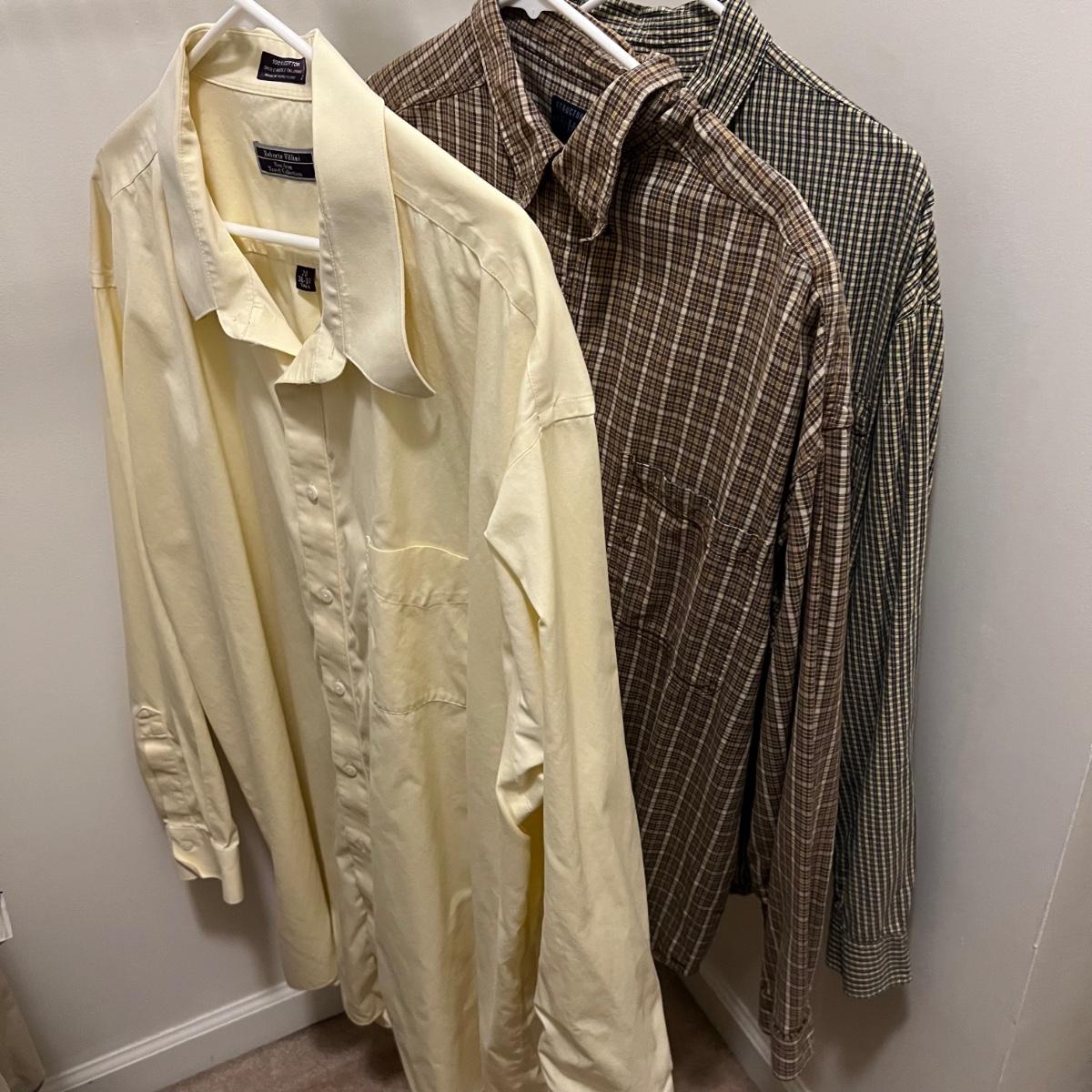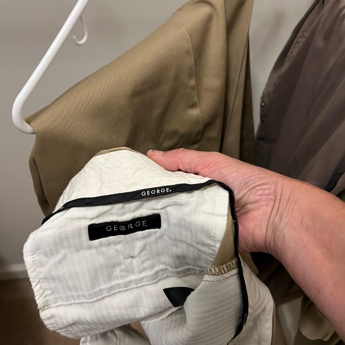 Four pairs of Khaki pants and approximately a dozen short plus long sleeved shirts are all in the size range of XL to XXL. See images for brands, sizes etc. the grey George long sleeve shirt has a small stain.