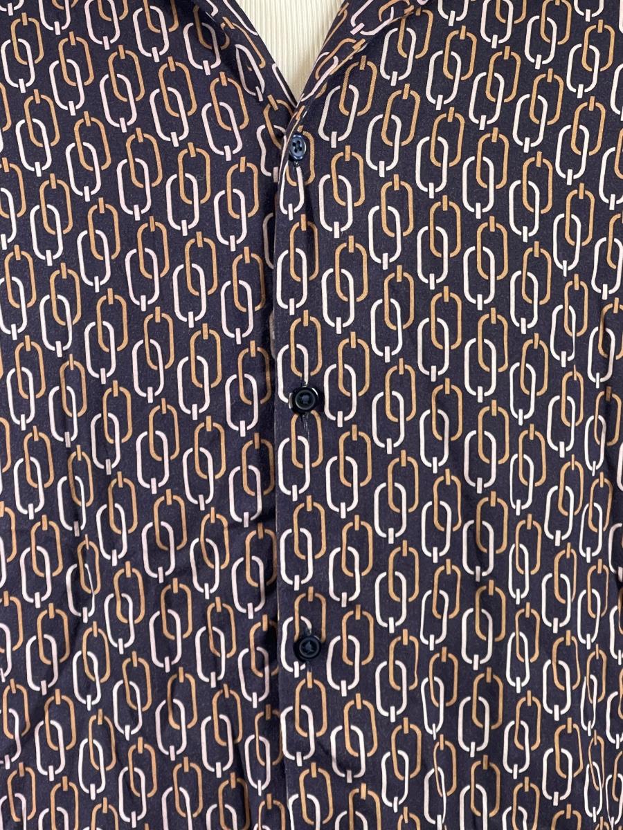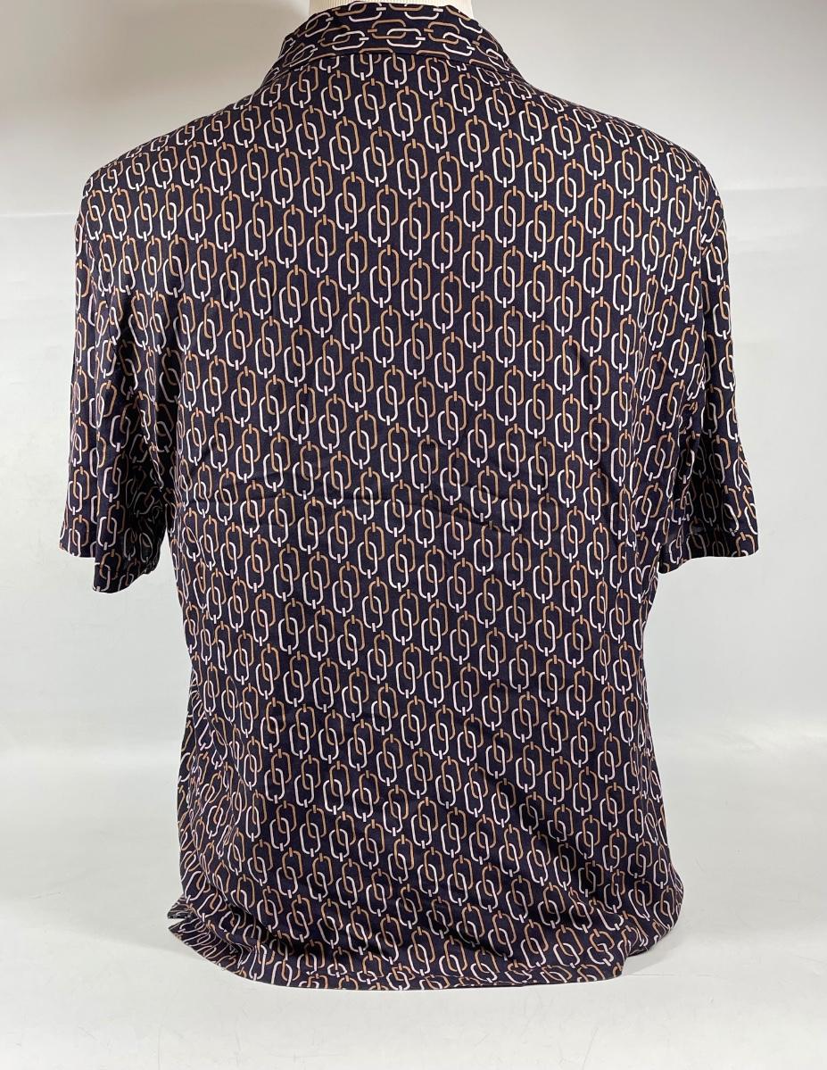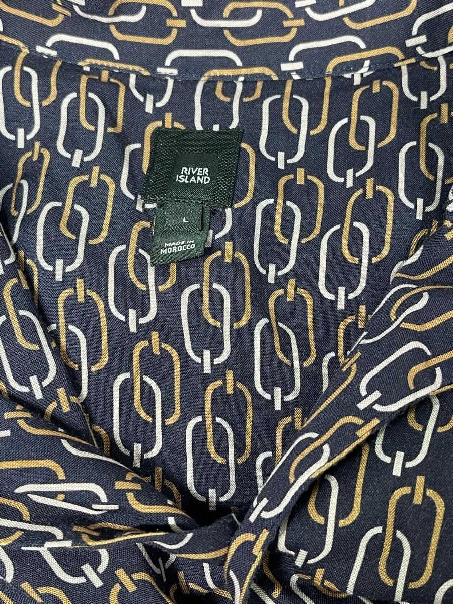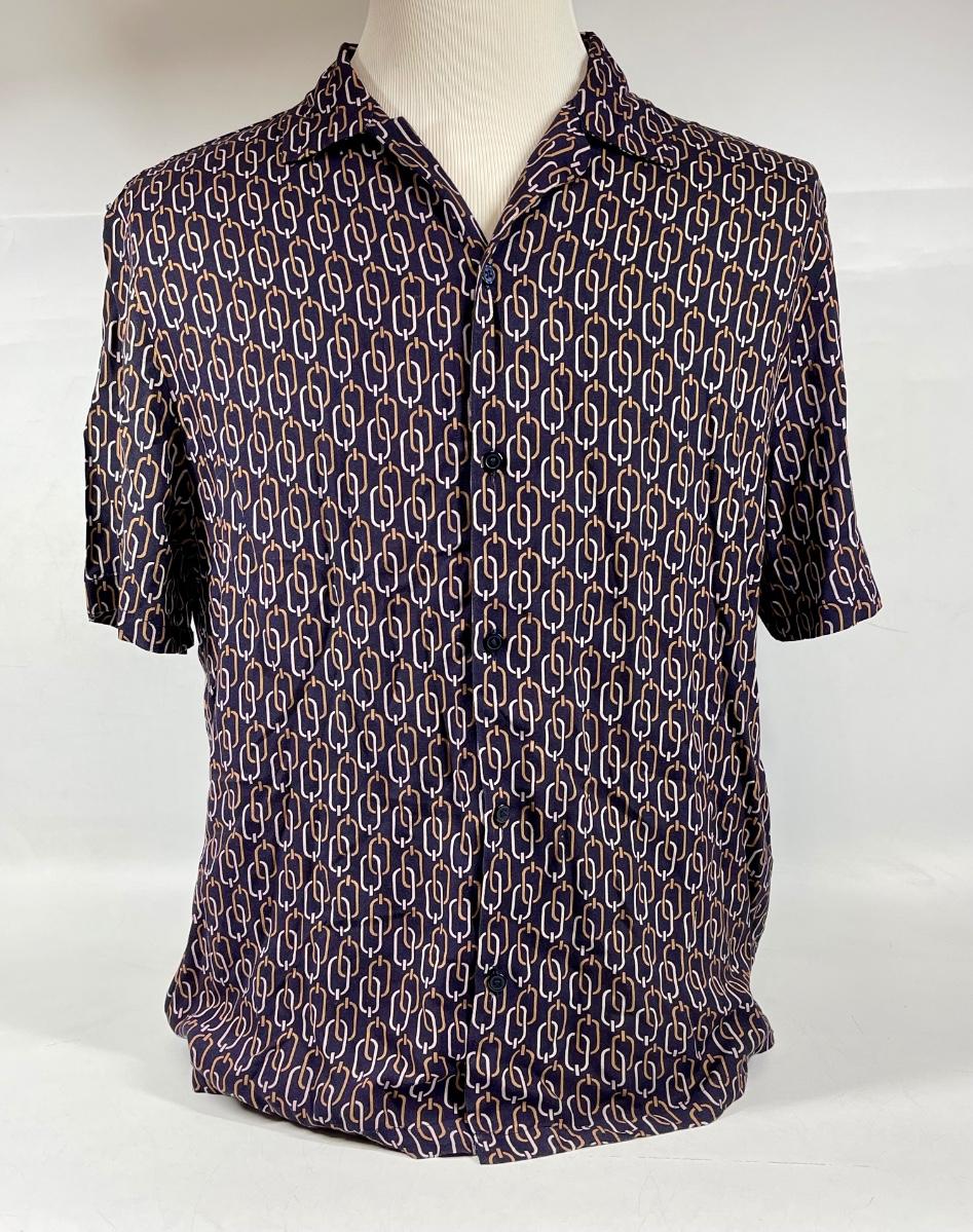Navy blue gold and silver. Short sleeve, button-down, size large L.