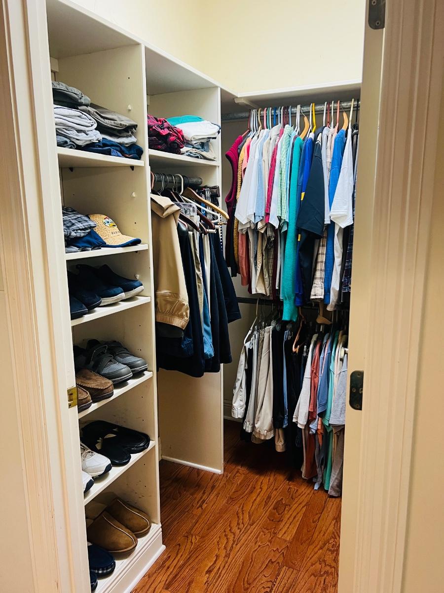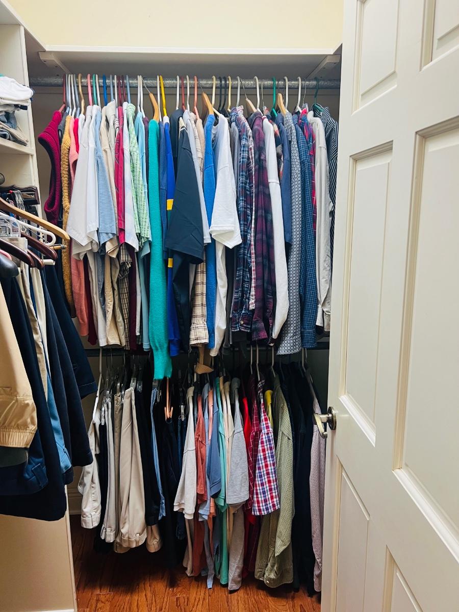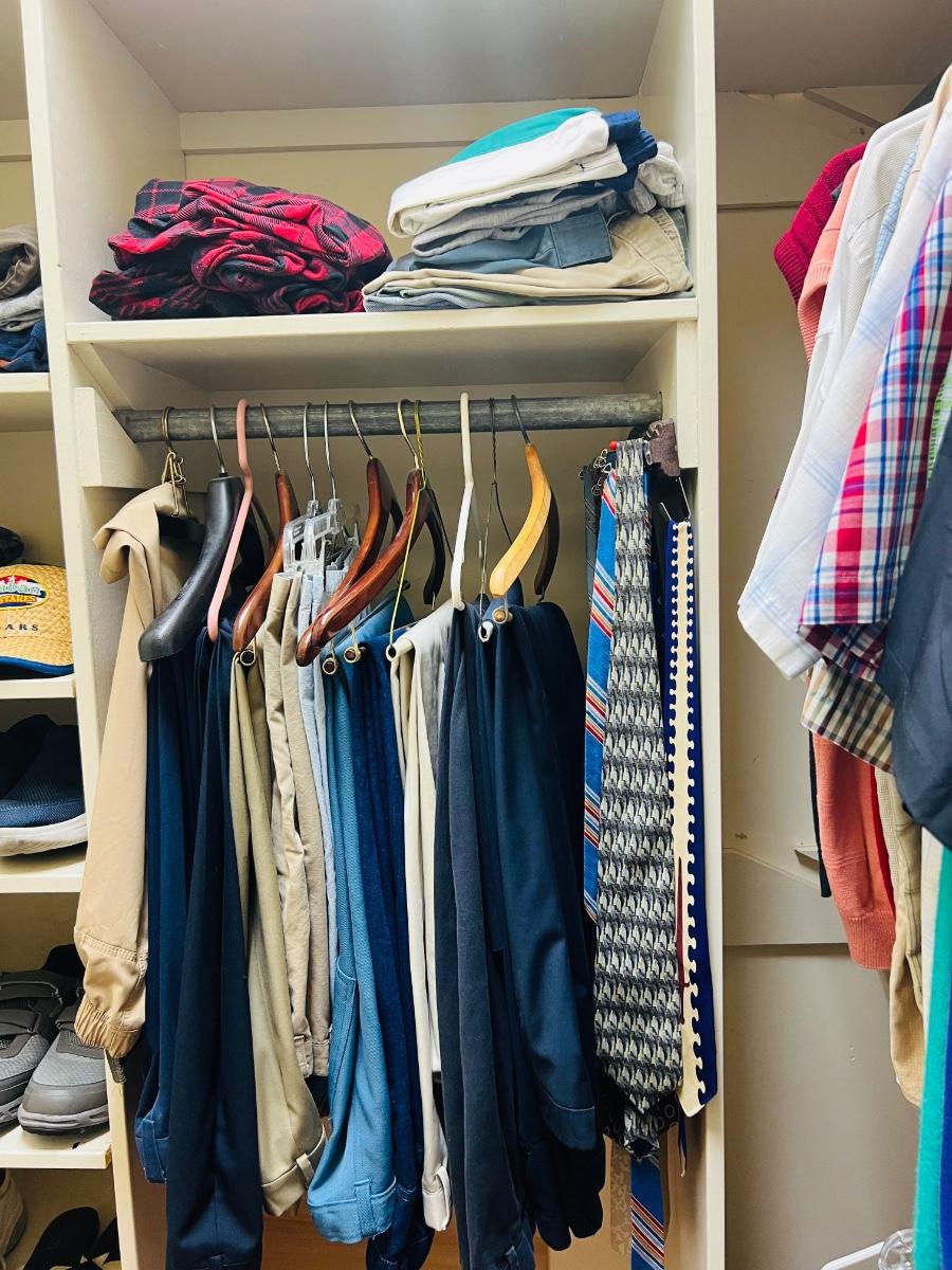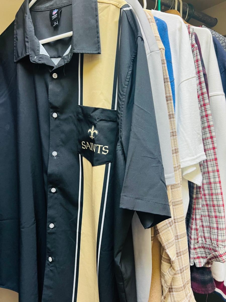 Mostly XL & 2X Clothing. Pants & shorts size 43 and shoes size 10 1/2. You are bidding on the entire closet contents.