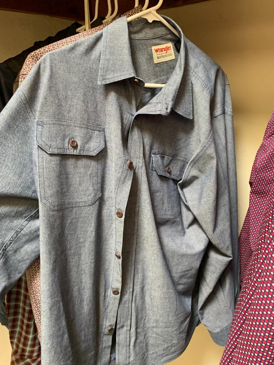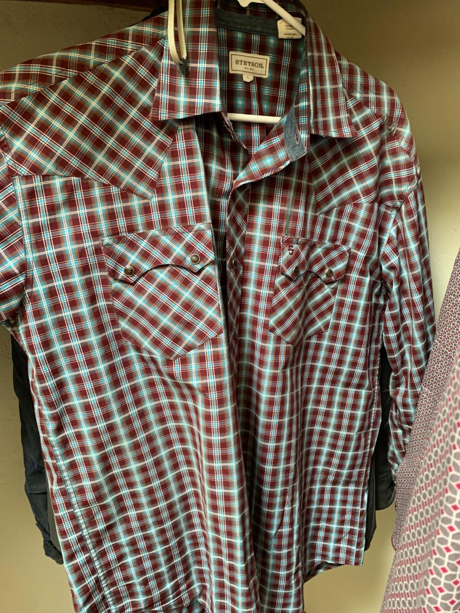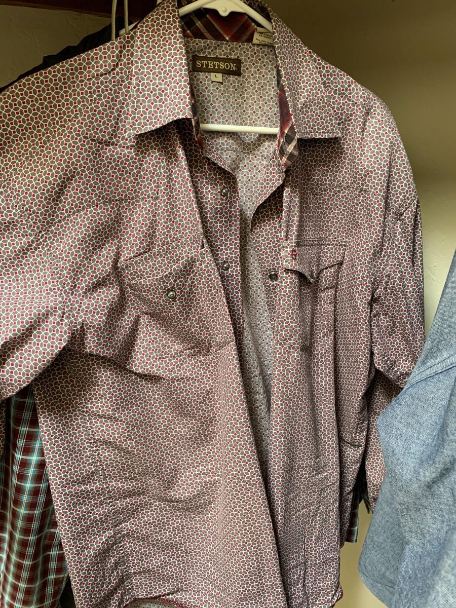 Men’s clothing lot including brands like Stetson, Wrangler, Old Navy, Cripple Creek and more! All Stetsons are in great condition, with most the rest being in good condition. All sizes L and XL